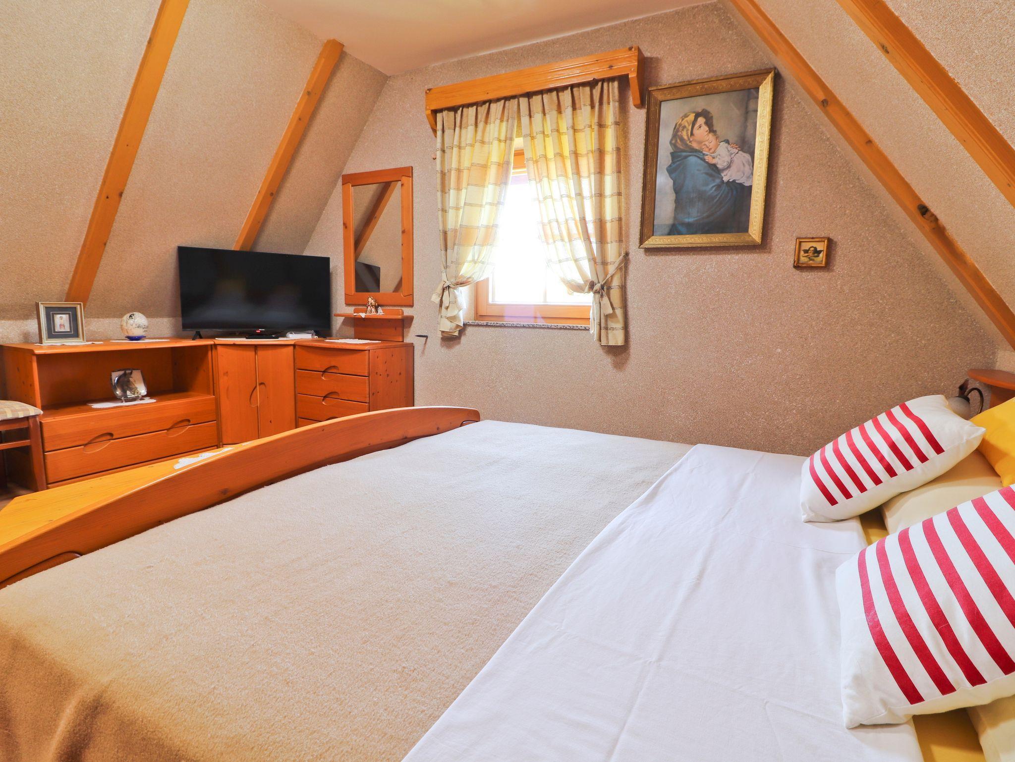 Haus bietet Platz für 7 Gäste. Die Betten sind in Schlafzimmern, die es 3 gibt, innerhalb einer Gesamtfläche von 97m2, angeordnet. Die Gäste haben eine eigene Terrasse zur Verfügung, auf der sie in warmen Sommernächten genießen können. Für vollen Genuss und Entspannung gibt es einen privaten Grill für Gäste dieser Unterkunft. Während ihres Aufenthalts können sich Gäste im privaten Schwimmbad entspannen. In der Unterkunftseinheit besteht die Möglichkeit des Mitbringens von Haustieren, und die Dienstleistung ist im Preis der Unterkunft enthalten. IM PREIS INBEGRIFFEN: Kurtaxe, Endreinigung, Klimatisierung, Pool, Parkplatz, Internet, Haustiere, Fahrrad, Kinderbett, Bügeleisen, Bügelbrett, Föhn. VERBINDLICHE ZUSÄTZLICHE KOSTEN: Aufzahlung für Kurzaufenthalte (prozentualer Zuschlag pro Nächtigungsanzahl: 30% - 1, 20% - 2, 10% - 3). Die Verfügbarkeit zusätzlicher Dienstleistungen in Ihrem reservierten Termin und die Preise derselben (falls nicht aufgeführt) müssen im Voraus überprüft werden. Zusätzliche Dienstleistungen die in der Zahlungsaufforderung nicht aufgeführt sind werden direkt beim Vermieter bezahlt, angenommen der Gast nutzt auch diese.