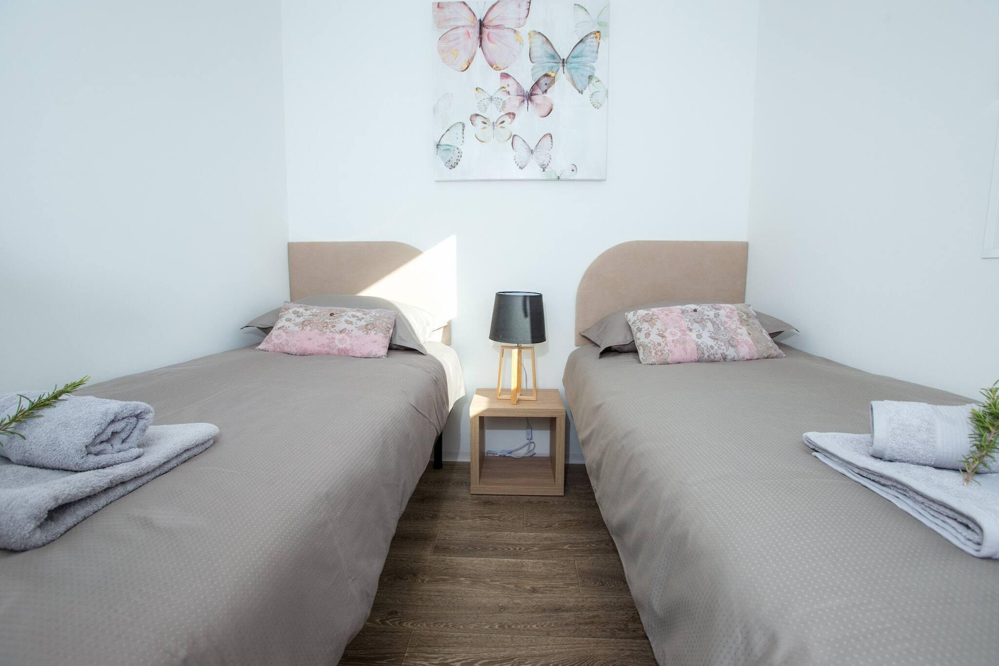 Open kitchen(electric kettle, toaster, coffee machine, microwave, dishwasher, fridge, freezer, dishes and cutlery), Living/diningroom(single sofa bed, TV(satellite), dining table), bedroom(single bed, single bed), bedroom(double bed), bathroom(shower, washbasin, toilet), bathroom(shower, washbasin, toilet), toilet(toilet), Internet access, Garden Furniture , grill, shower(outside), washing machine, balcony, air conditioning, terrace, garden, sun loungers, BBQ, parking, swimming pool(private), high chair, hairdryer