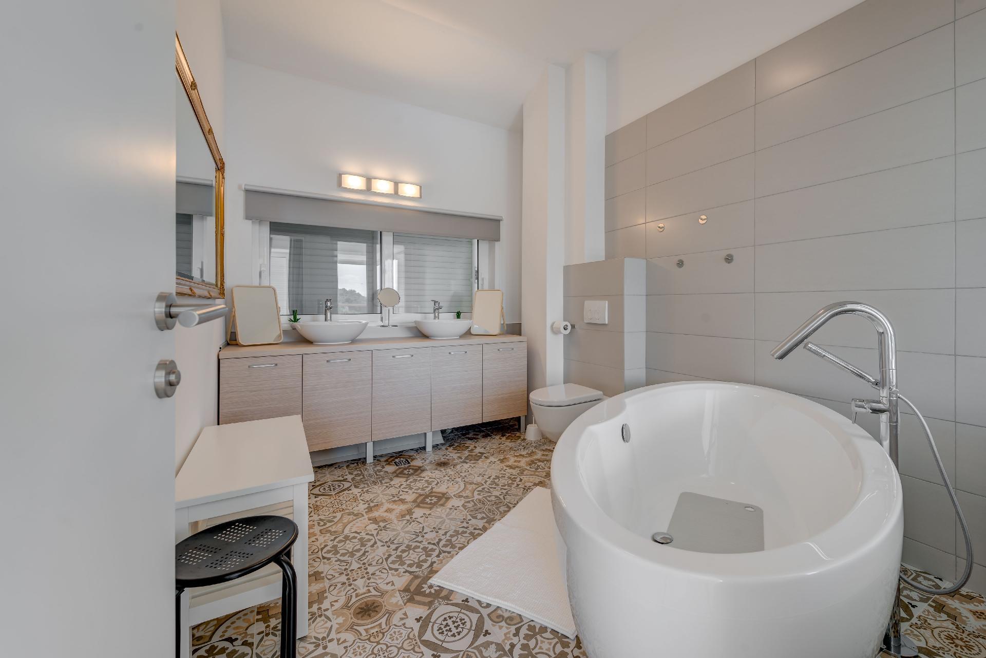The house features 4 beautifully decorated bedrooms and 3 bathrooms, designed to offer comfort and luxury. The living room is a cozy space with a fireplace, perfect for those cooler evenings. The property is fully air-conditioned and equipped with modern amenities, including a TV, WiFi, dishwasher, microwave, kettle and coffee machine for your convenience. The house also provides a washing machine, iron and hairdryer, ensuring all your needs are catered for.