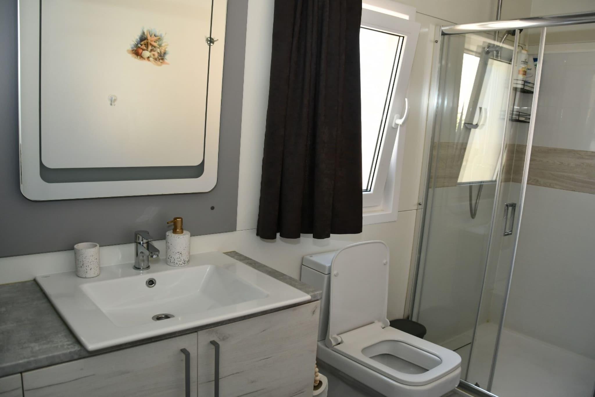 Mobile Homes Allegro & Azzuro is located in Drage, a village in Zadar County, Croatia. Drage is known for its beautiful coastline and proximity to the Adriatic Sea. Note : Pets are allowed with notice. Private parking, reservation is not required. Wi-Fi is available throughout the property. BBQ grill facilities at your disposal. Mobile Home With Terrace And Sea View (Azzuro) can accommodate six guests. This mobile home with terrace and sea view (Azzuro) is fitted with 2 bedrooms which includes double bed / single bed and with living room as well as private bathroom with toilet and shower. Thanks to its excellent location, everything you'll need for your vacation is just a short walk away from the property. Restaurants, grocery store / supermarket can be found within 200 m from the property. Beach is only 100 m from the property. Zadar airport is 40 km away from the property.