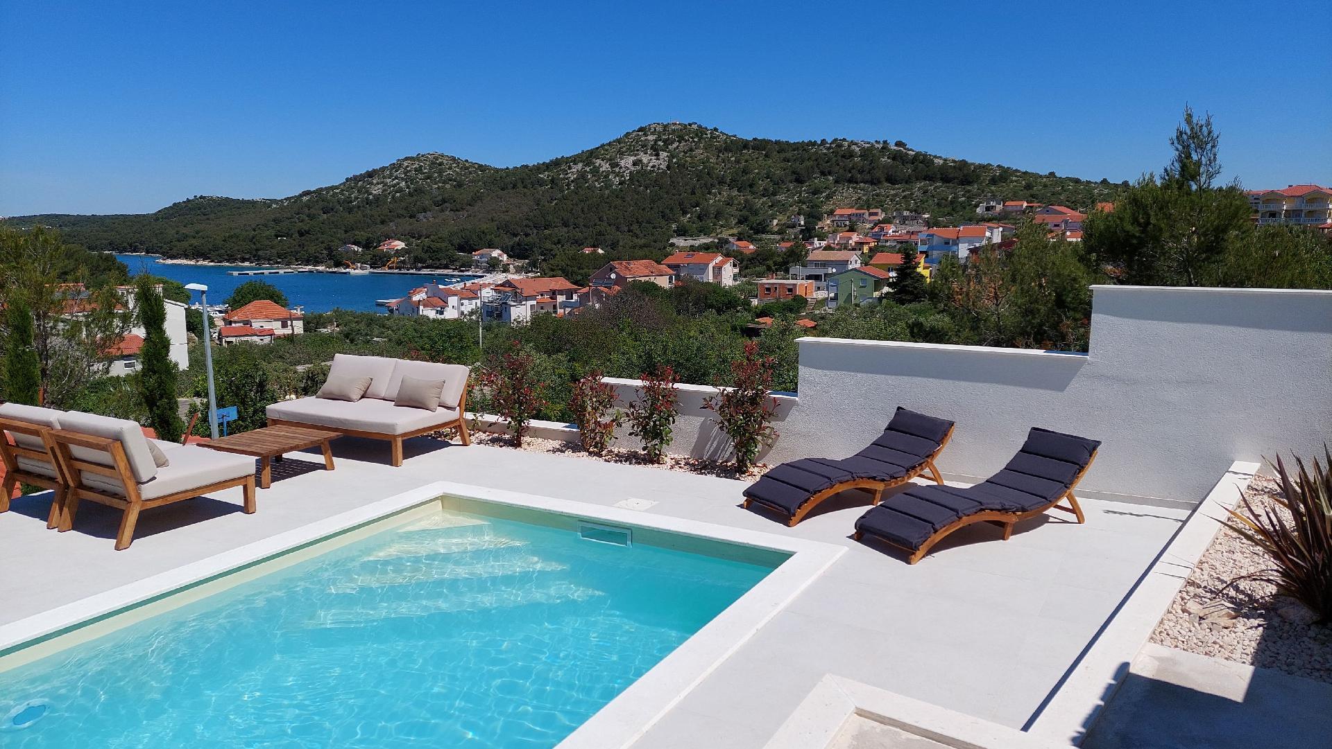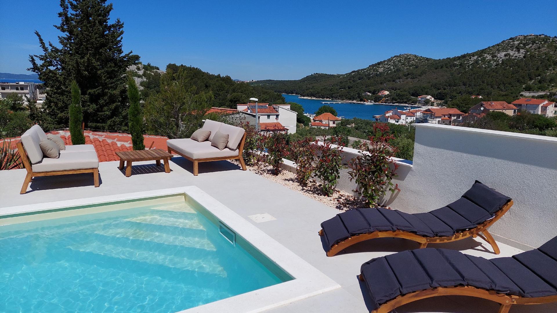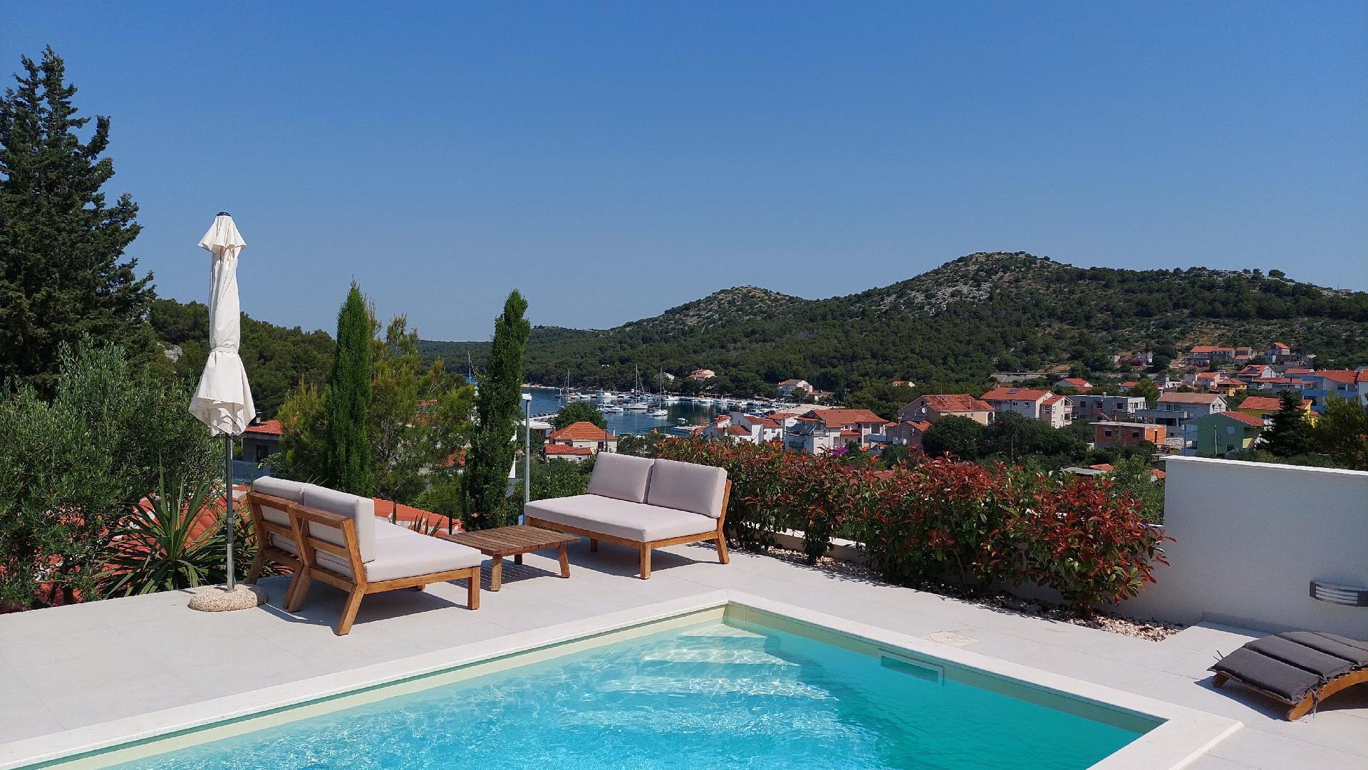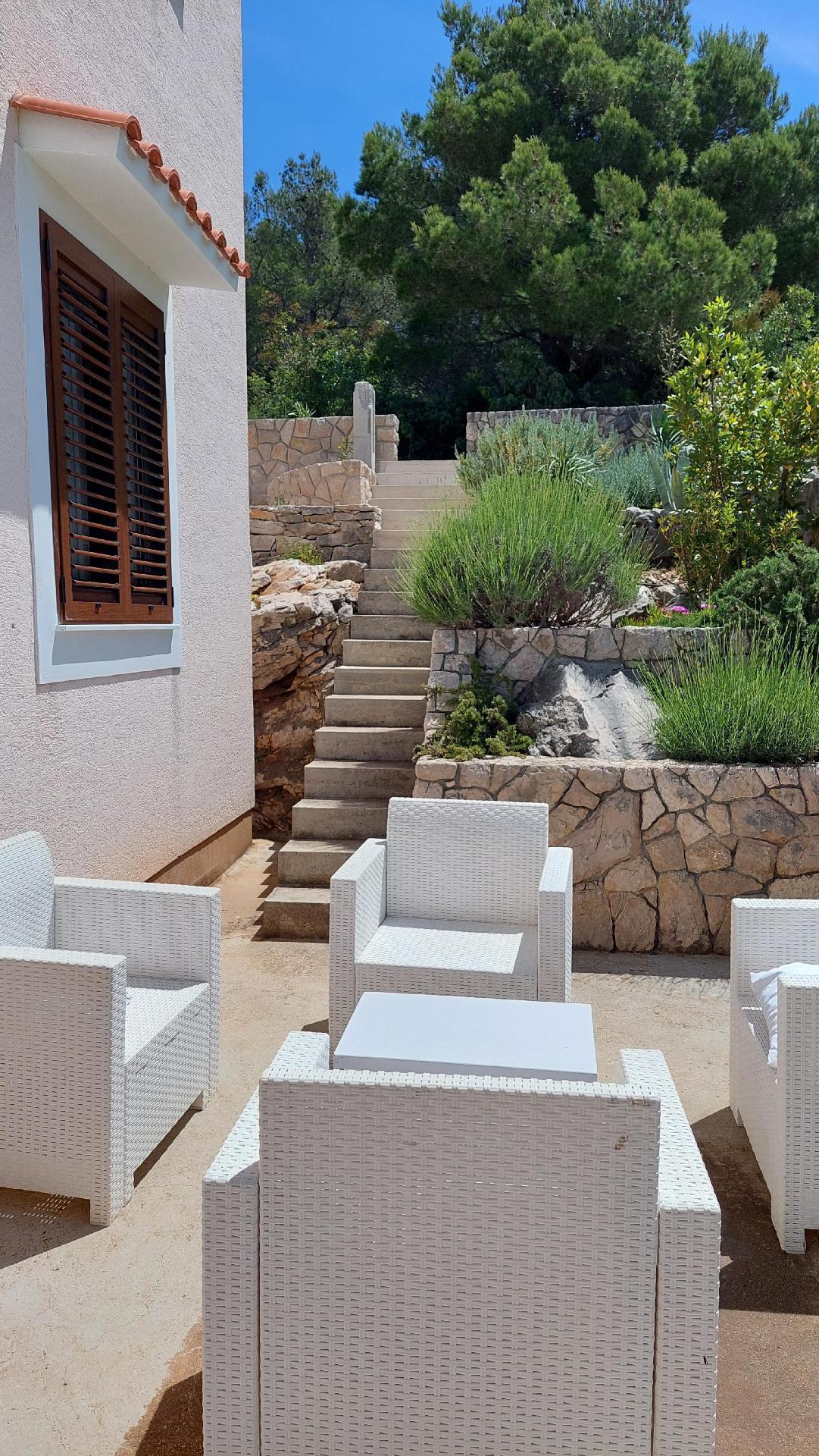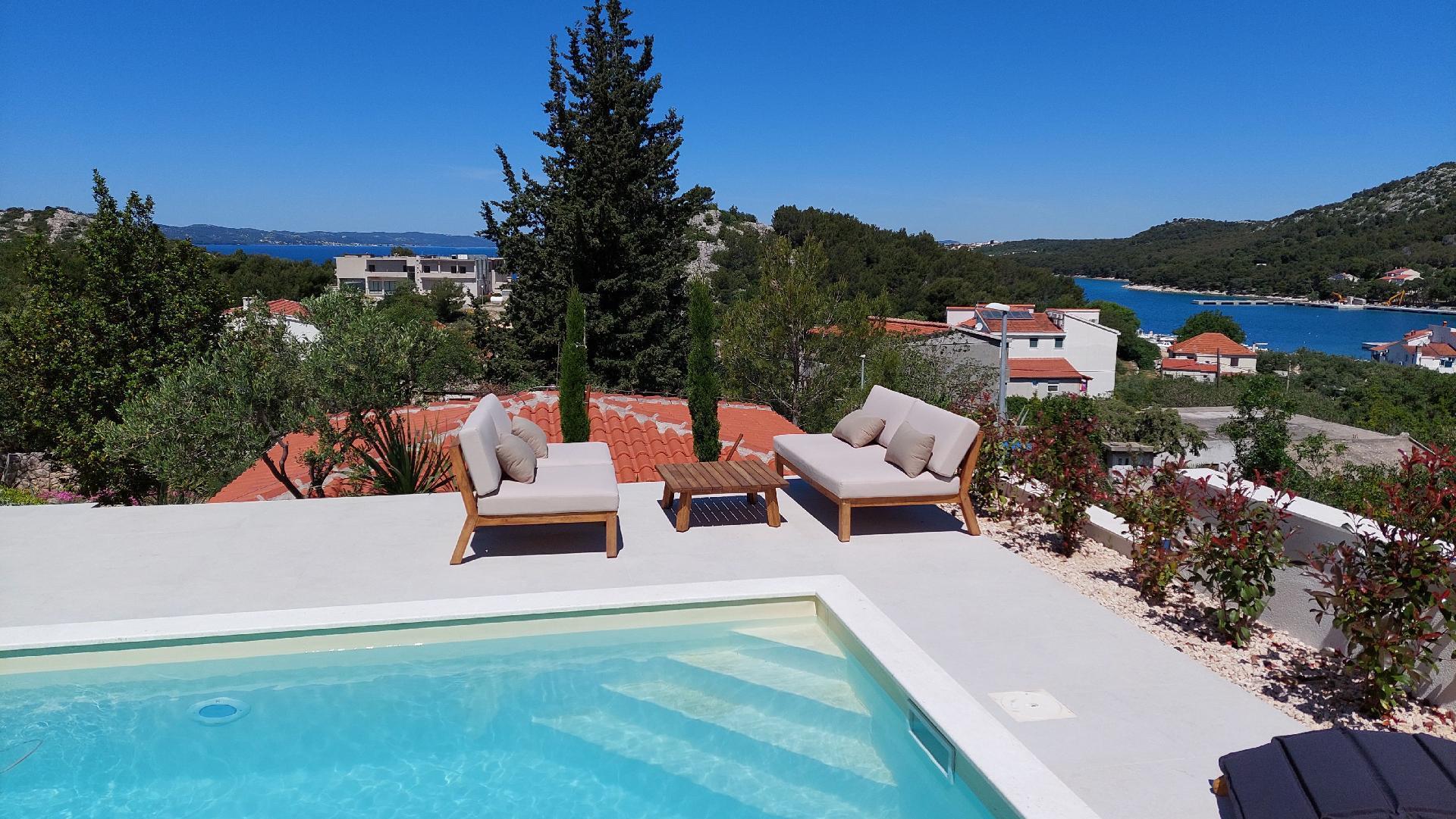 The offer is completed by a pleasant terrace of 35 m² (covered), equipped with a dining table, chairs and deck chairs. The accommodation has a sea view on 3 sides - Kornati, the island of Pašman, the town of Drage with a harbor.