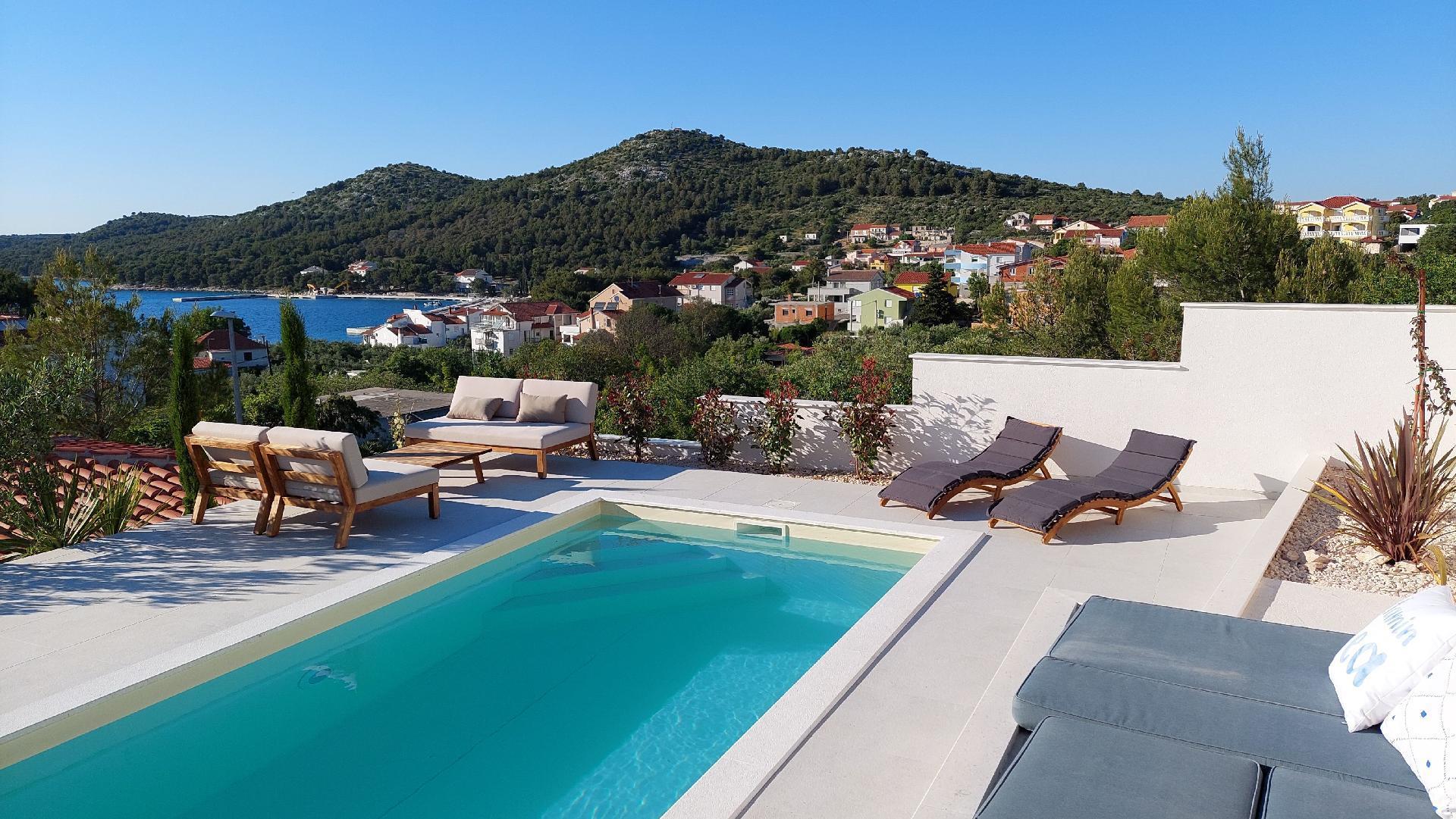 The offer is rounded off by a comfortable 35 m² terrace (covered), equipped with a dining table, chairs and deck chairs. The accommodation has a sea view on 3 sides – Kornati, Pašman island, Drage with a lagoon.