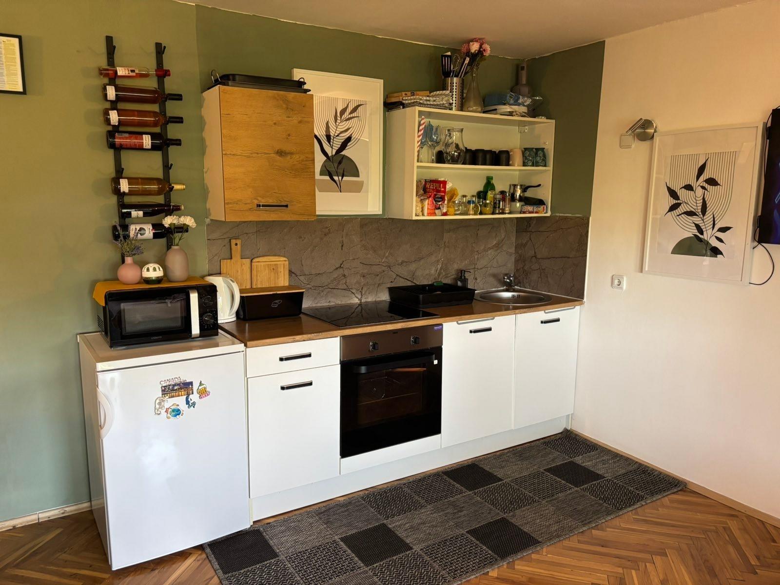 Kitchen (6 m2): Standard equipment: Refrigerator, Stove, Sink, Additional equipment: Freezer, Combined refrigerator/freezer, Oven, On request: Microwave oven, Water kettle, Coffee machine