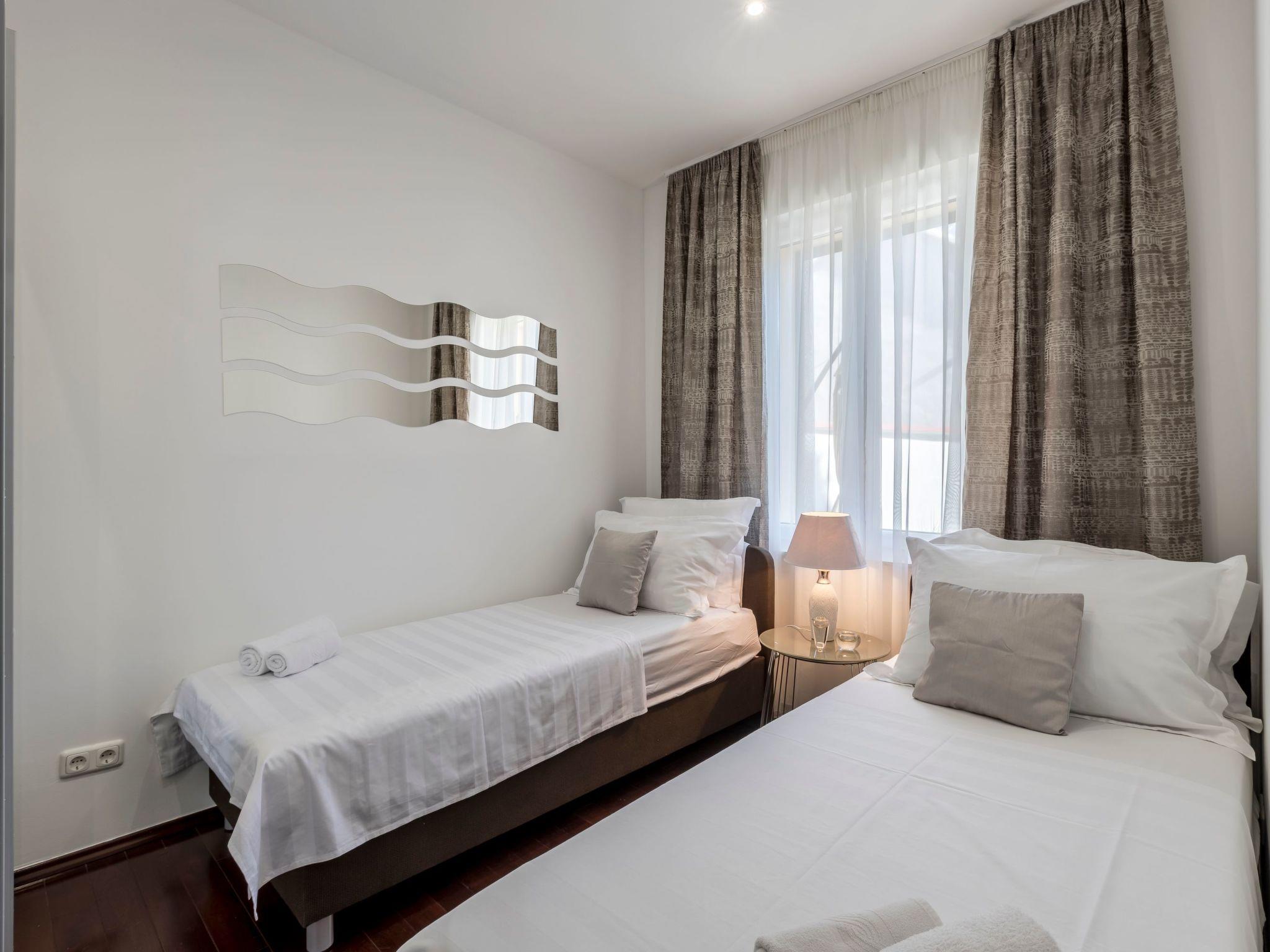 The interior of the flat comprises two inviting bedrooms - one with a cosy double bed and the other with two single beds to ensure a good night's sleep. A spacious living and dining room with a dining table and four chairs invites you to linger. The modern bathroom is equipped with a shower, while additional amenities such as air conditioning, cable and satellite TV, free Wi-Fi, a washing machine and a fully equipped kitchen with crockery, cutlery, towels and bed linen leave nothing to be desired in terms of comfort.