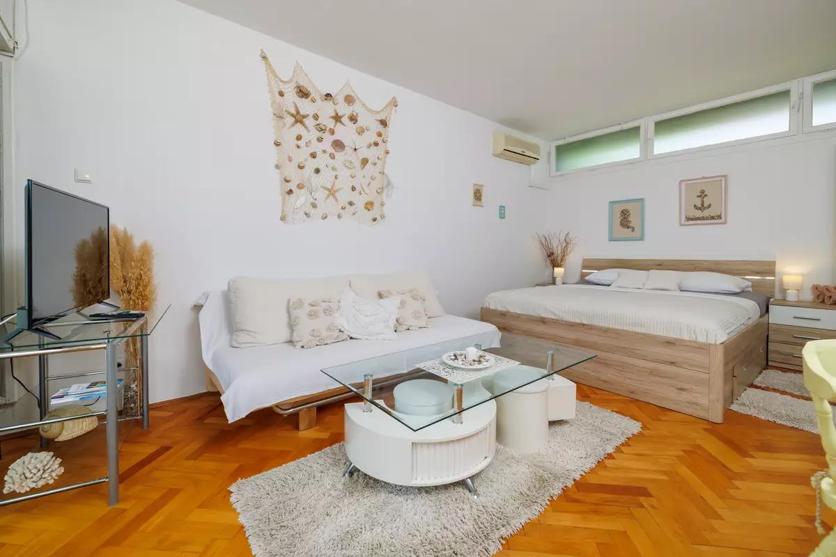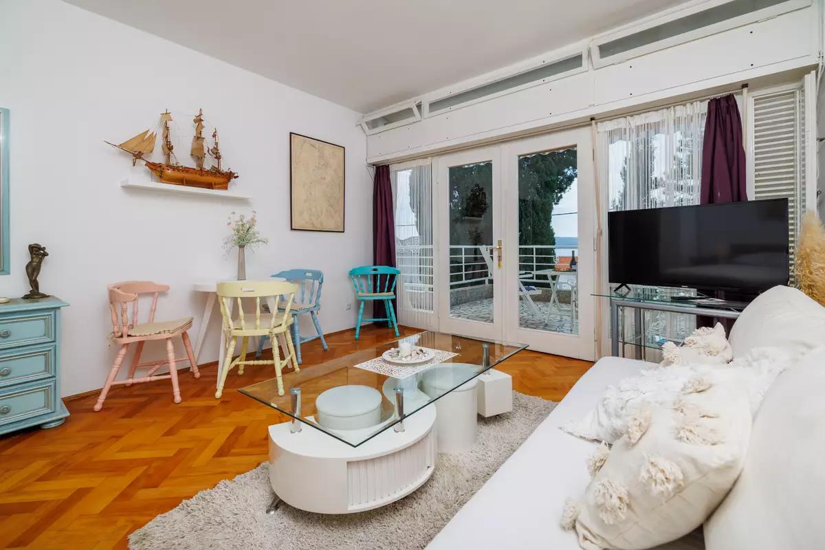 This beautiful apartment is located in a peaceful setting in Dramalj, just a short distance from the popular Crikvenica, making it an ideal choice for a relaxing holiday. The apartment is on the first floor and consists of a spacious living room, which also serves as a bedroom, a dining area, kitchen, bathroom, and a balcony with a beautiful sea view. The location on the first floor allows you to enjoy the stunning view, and the beach is just a few minutes' walk away, perfect for beach and sun lovers.The apartment is fully equipped to ensure your stay is as comfortable as possible. There is parking available on the property for your vehicle. Bed linen and towels are included in the price. If you need laundry services, you can arrange to use the washing machine for an additional fee of 3.00 EUR. Additionally, free WiFi Internet is available for guests, so you can stay connected at all times.This apartment offers everything you need for a relaxing stay by the sea, whether you're here for a few days or a longer vacation.FurnishingLiving areaLiving / dining room and kitchen are one room, sofa bed for two people, balcony, sea view, tilesKitchenKitchen, dishes, kitchen towels, electric / gas stove combined, cooking plates: 4, oven, fridge with freezer, filter coffee machine, water heaterBathroomBathroom with toilet, showerBalcony & terracePrivate terrace, covered, sea view, seating, trerrace size: 14 m²Further informationParking on the property, pets are not allowed, sheets available, towels available, washing machine at the landlord (after consultation for a fee of 3.00 eur), Internet via WiFiTo the sea 192 m, sandy beach 1.5 km, fine pebble beach 220 m, pebble beach 220 m, rocky beach 192 m, concrete beach 200 m, center 2.9 km, restaurant 300 m, supermarket 200 m