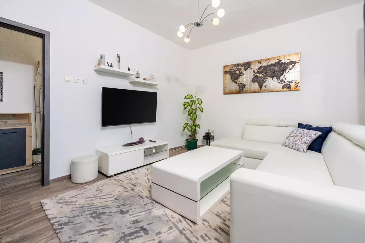 This modern and stylishly furnished holiday apartment impresses with its high-quality furnishings and a private whirlpool, which ensures a luxurious holiday experience.The apartment has two cozy bedrooms, two modern bathrooms and an inviting living and dining room with a fully equipped kitchen. The spacious balcony offers a wonderful sea view and is equipped with a practical awning that provides shade.A highlight of this accommodation is the large terrace, which is equipped with a private whirlpool - perfect for relaxing and enjoying the peace and quiet. Additional amenities include an outdoor shower and a barbecue area, where you can also use your own barbecue.Pets are allowed in this accommodation. The air conditioning is included in the price and ensures pleasant temperatures. WiFi is available free of charge and the use of a washing machine can be arranged by arrangement with the landlord.The apartment offers two private parking spaces directly on the property of the house, making it ideal for guests arriving by car. This holiday apartment combines comfort, style and relaxation - perfect for an unforgettable stay.DETAILED DESCRIPTION: Living area Living / dining room and kitchen are one room balcony Sea view Tiles Satellite TV kitchen kitchen dishes Kitchen towels Electric cooker Cooking plates: 4 Oven Fridge with freezer Filter coffee machine water heater microwave Toaster dishwasher bedroom Double room with double bed, balcony, sea view, tiles Double room with double bed, laminate bathroom Bathroom with toilet, shower Bathroom with toilet, shower Balcony & terrace own balcony covered Sea view Seating Balcony size: 15 m² own terrace Sea view Seating Lie parasol Terrace size: 50 m² Further information grill Bring a grill Parking on the property Outdoor shower Pets are allowed Climate included in the price Owner lives in the same house Sheets available Towels available Washing machine at the landlord (after consultation) Internet via WiFi