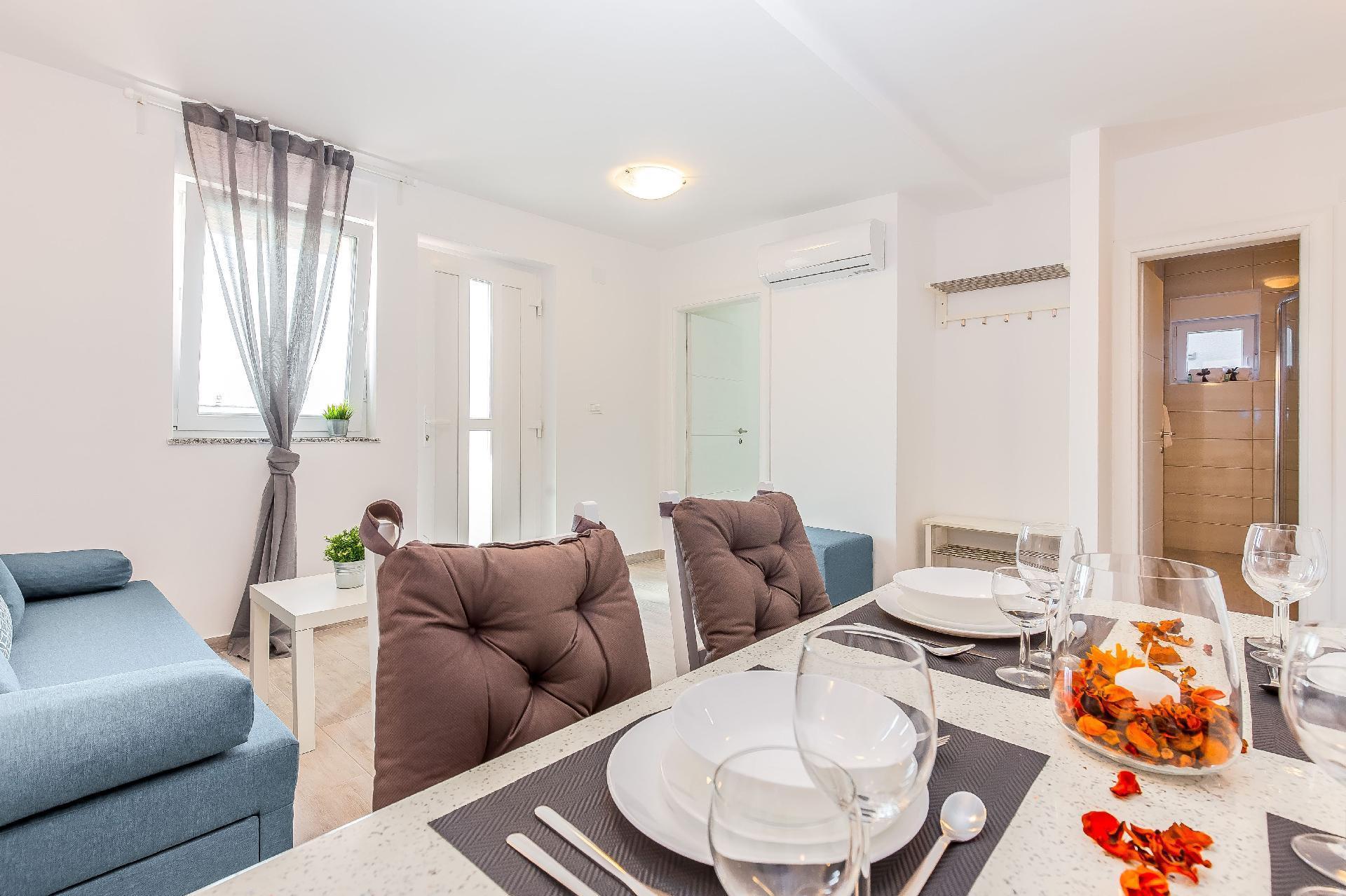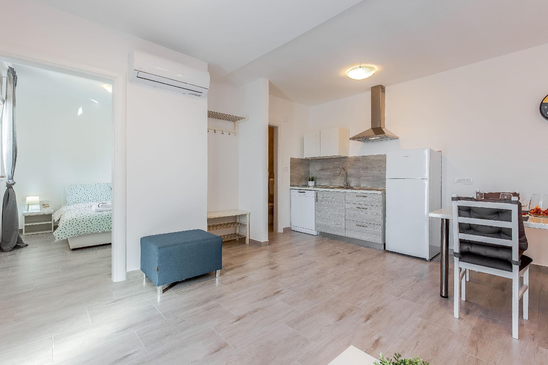 The apartment is located on the ground floor. There is one bedroom with a double bed, a living room with a well-equipped kitchen and dining area, and a bathroom with a shower. Apartment has small terace with enterance direct on parking place.