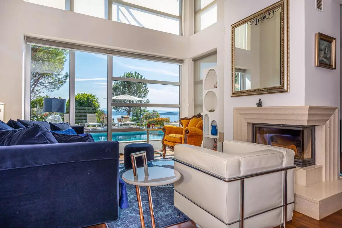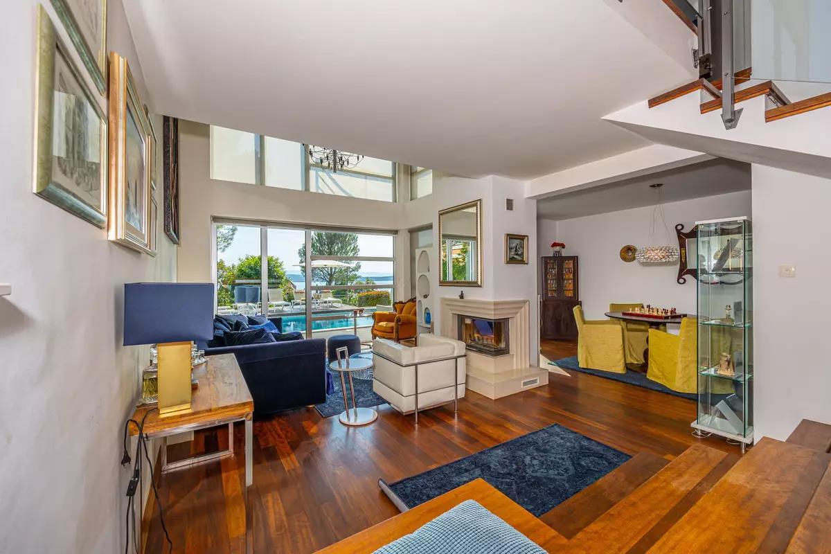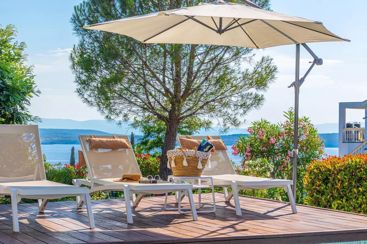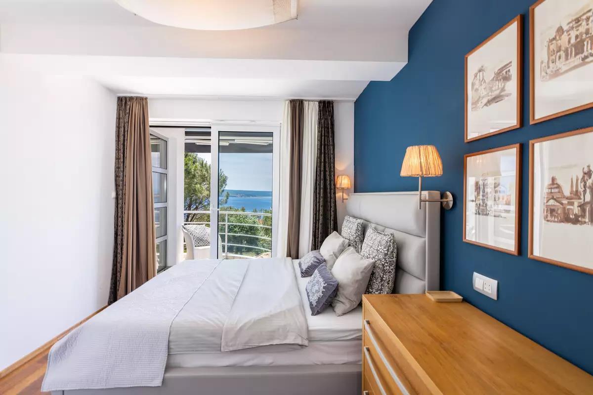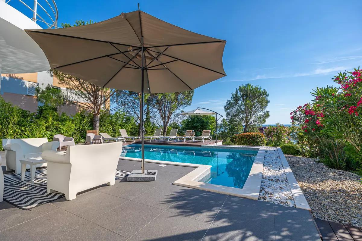 This high quality furnished villa is located in the quiet district of Dramalj/Crikvenica. Dramalj is a quiet place which belongs to the municipality of Crikvenica.The villa is equipped with many extras, with the outside area undoubtedly being the heart of this holiday villa.The rooms are divided over two floors and the top floor.Ground floor:On the ground floor there is a cozy fireplace room which is connected to a billiard room. From here you have direct access to the pool area. A few steps lead to the back of the ground floor where there is a TV room, a separate toilet and the dining/kitchen area.The kitchen leads to another terrace and the garden with a grill. A very interesting internal staircase leads from the living room to the first floor.1st floor:There are three bedrooms (one of which has a balcony) and three bathrooms.Top floor:The fourth bedroom is on the top floor and also has its own balcony.Outside area:In the outside area of ??this wonderful holiday home there is a private garden with barbecue, two terraces (one on the garden side and the other on the pool side), a summer arbor on the sea side, a whirlpool and a 37 m² swimming pool.DETAILED DESCRIPTION:Living area:Separate living room, dining room and kitchen are in one room, terrace, sea view, laminate flooring, carpeting, tiles, satellite TVKitchen:Kitchen, dishes, kitchen towels, electric stove, hotplates: 4, oven, fridge with freezer compartment, filter coffee machine, kettle, dishwasherBedroom:Double room with double bed, laminateDouble room with double bed, balcony, laminateDouble room with double bed, laminateDouble room with double bed, balcony, laminateBathroom:Bathroom with toilet, showerBathroom with toilet, bathtubBathroom with toilet, showerSeparate toilet with wash basinBalcony/terrace:Own balcony, covered, seating, balcony size: 6 m², own terrace, sea view, one floor below, seating, loungers, parasol, terrace size: 75 m²More information:Barbecue available, parking on the property, own swimming pool, swimming pool size: 37 m², outdoor shower, pets allowed, daily fee for pets: per day: 15.00 euros, air conditioning included in the price, fan available, bed linen available, towels available, hairdryer, Internet via W-LANPLEASE NOTE:Due to the longer cleaning time that is necessary for this large property, check-in is only possible from 4:00 p.m. on the day of arrival. Check-out is by 10:00 a.m.This villa is located in a quiet and idyllic area and is therefore not suitable for party holidaymakers and youth groups.