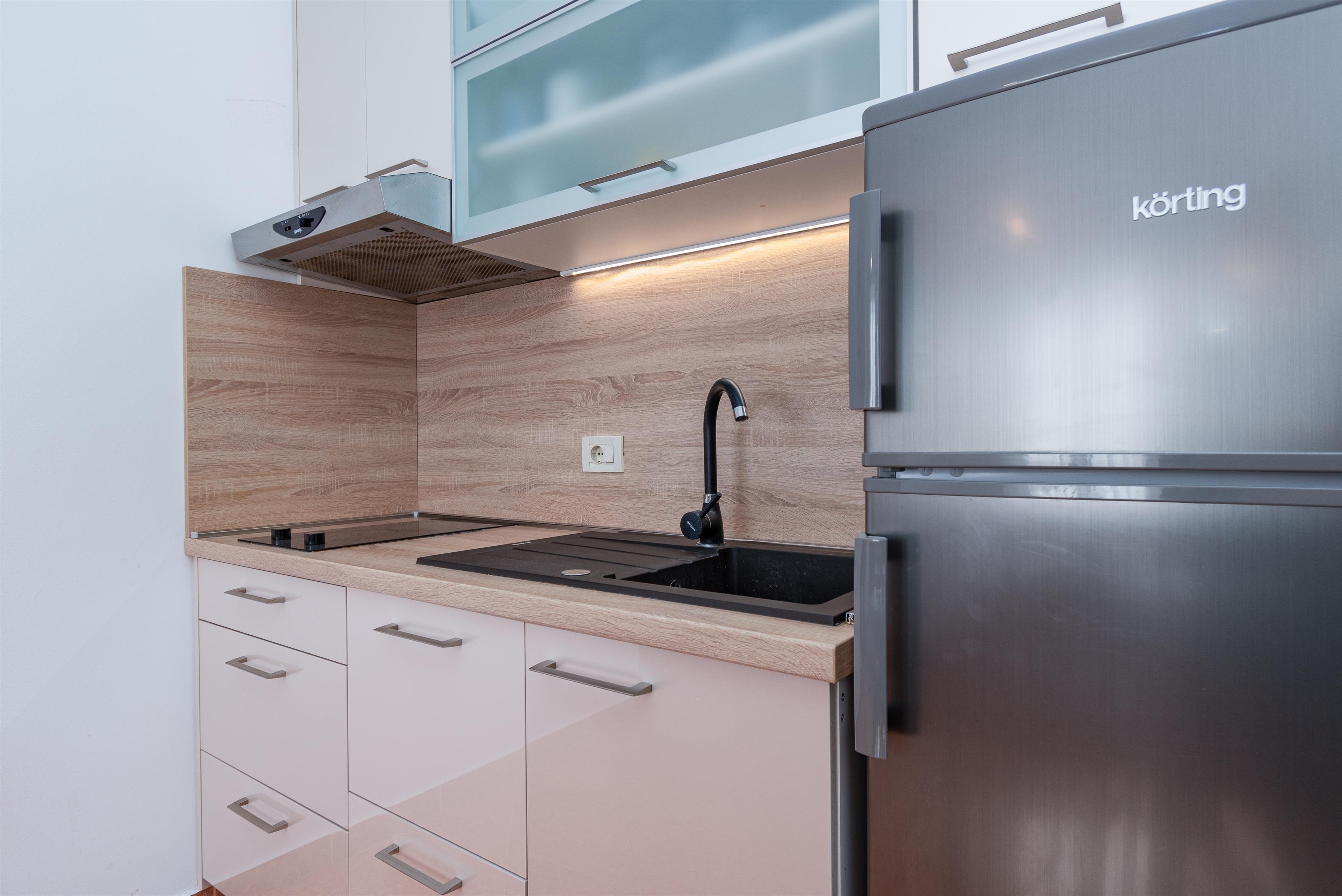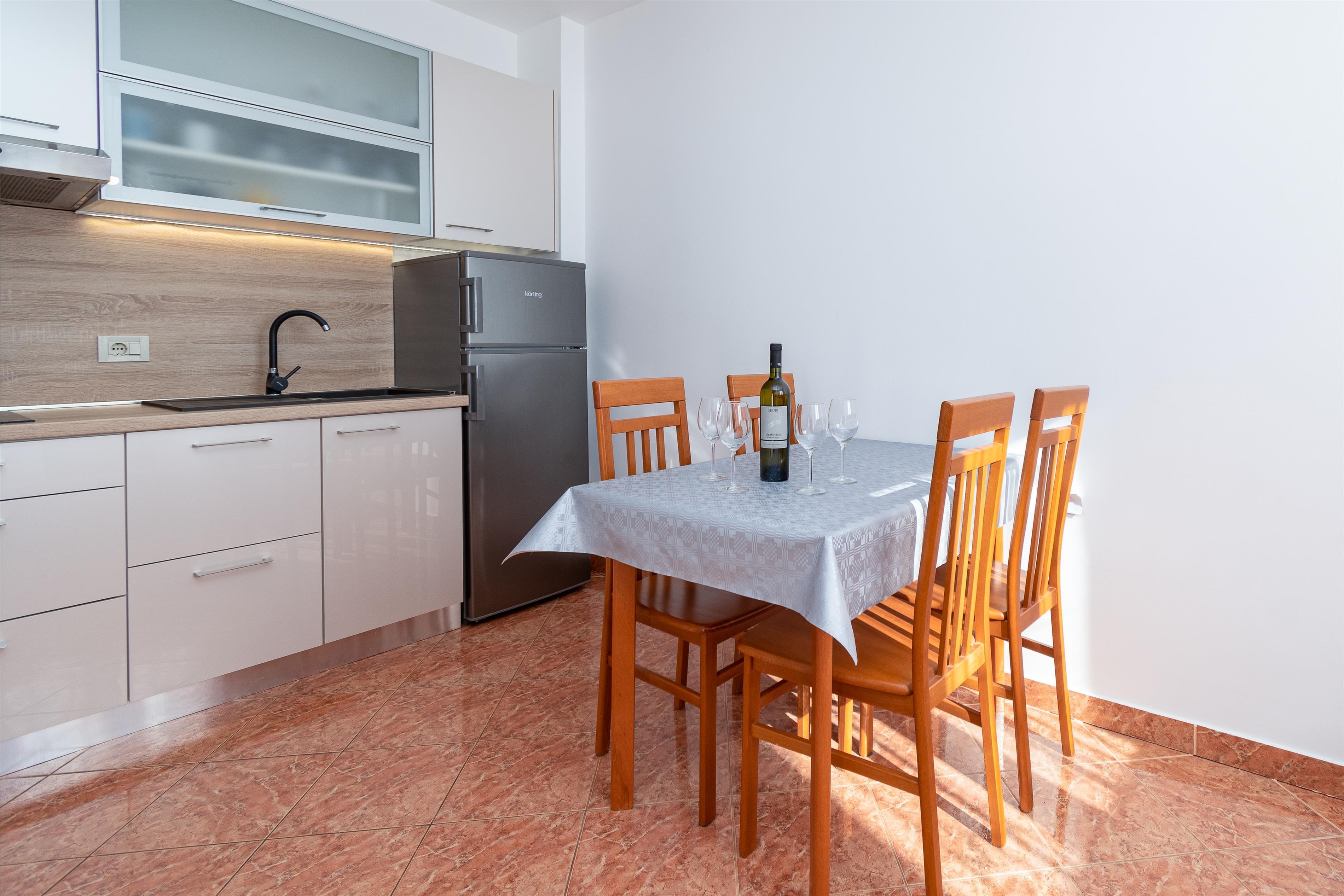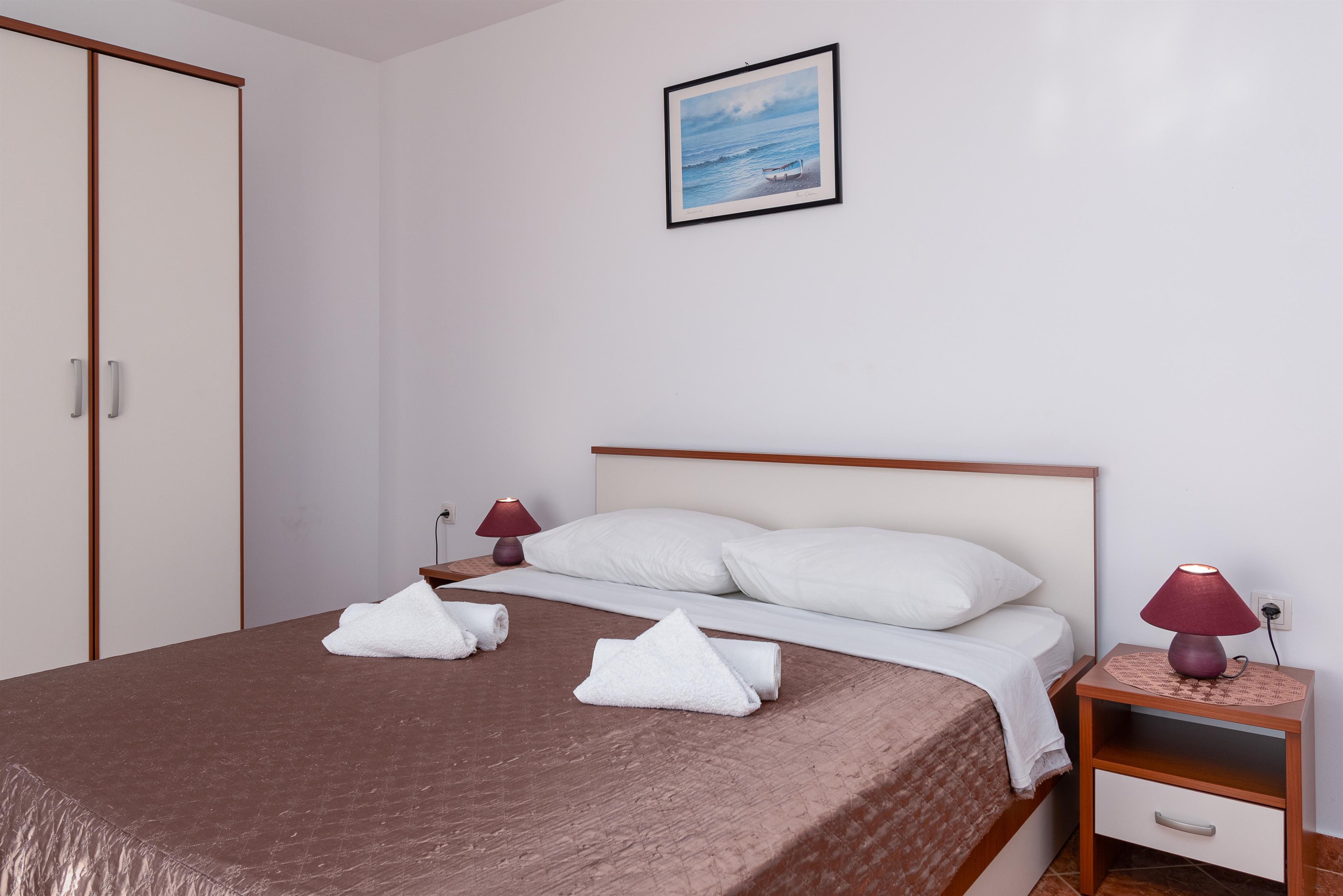 Apartment can accommodate 5 guests. Beds are situated in 2 sleeping rooms, but also in the living room, within 68m2. Guests can use a private balcony to enjoy the warm summer evenings. The apartment offers the sea view. Food can be prepared using barbecue which is shared with other guests too. Shared pool is on disposal during stay. This accommodation unit welcomes pets at an additional charge.