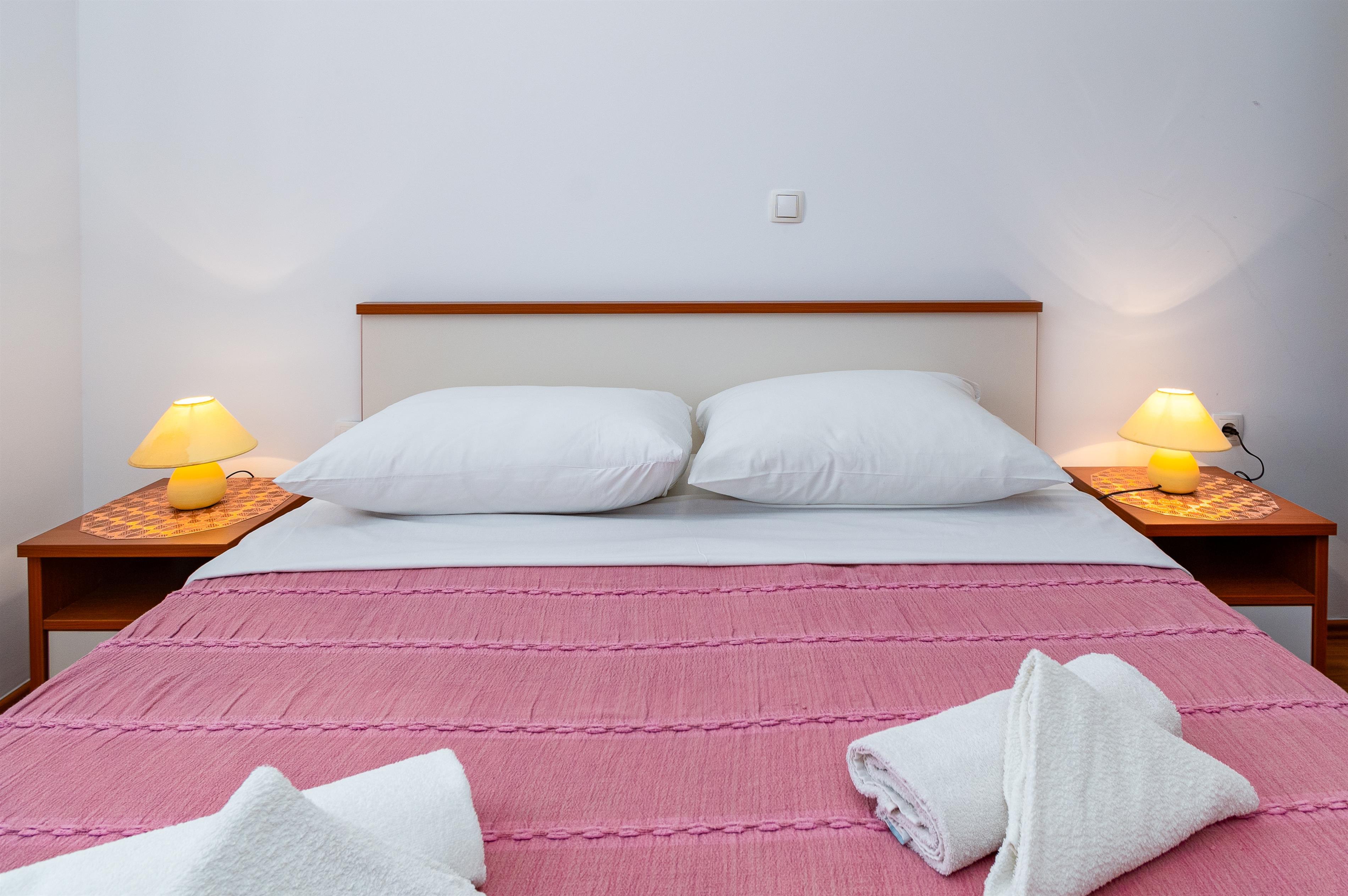 Studio flat can accommodate 3 guests. Beds are situated in 1 sleeping rooms, but also in the living room, within 34m2. Guests can use a private balcony to enjoy the warm summer evenings. The studio offers the sea view. Food can be prepared using barbecue which is shared with other guests too. Shared pool is on disposal during stay. This accommodation unit welcomes pets at an additional charge.