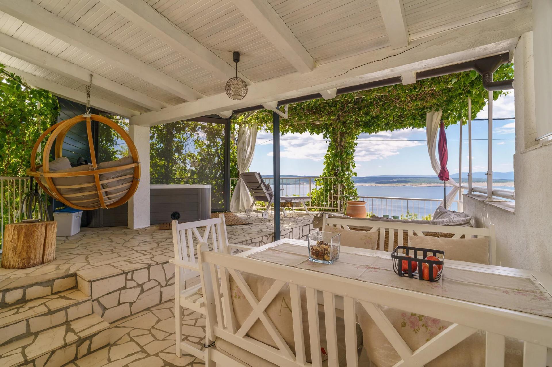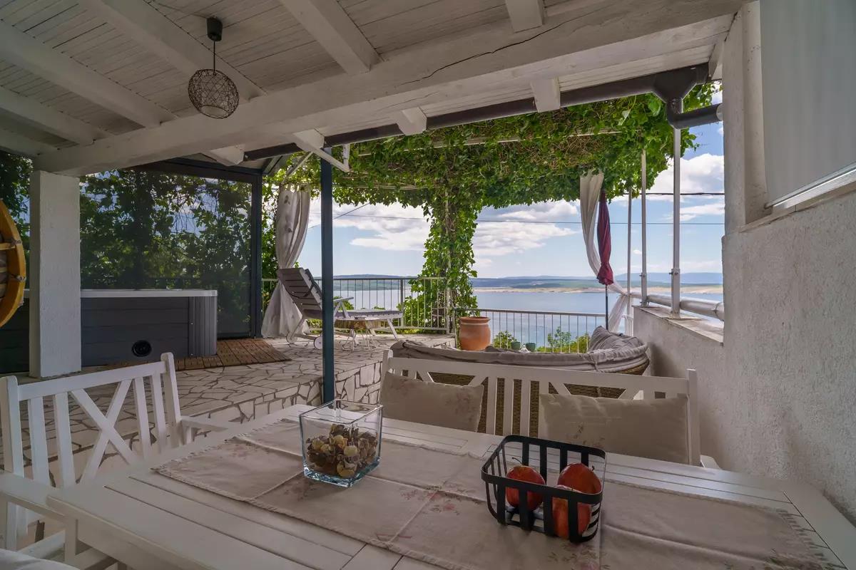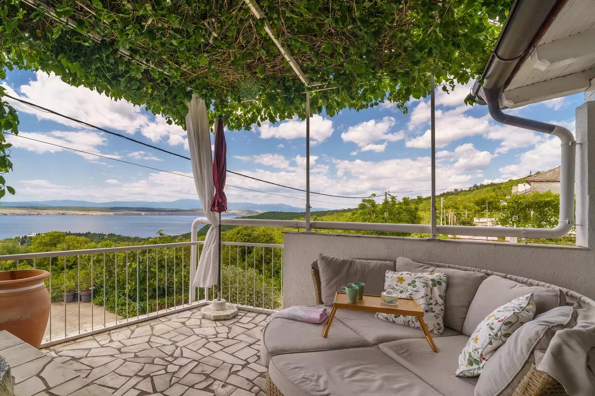 This fenced house for 4-5 people is located in Dramalj, a small fishing village near Crikvenica.This semi-detached house, which was built in 1900 and renovated in 2011, offers you an unforgettable view of the Kvarner Bay and the island of Krk.Since this holiday home is surrounded by green nature, you can be sure of a quiet stay here. The property on which the house is located is completely fenced, so that parents with small children can relax in peace.The house consists of a living-dining room with kitchen in one room, three bedrooms, a bathroom, a beautiful terrace and private parking.Living area:Living / dining room and kitchen are in one room, terrace, tiles, satellite TVKitchen description:Kitchen, dishes, kitchen towels, electric / gas cooker combined, hot plates: 4, oven, refrigerator with freezer, filter coffee machine, microwave, dishwasherBedroom:Double room with double bed, sea view, parquetDouble room with separate beds, sea view, parquetSingle room, sea view, parquetBathroom:Bathroom with toilet, showerBalcony / terrace:Private terrace, covered, sea view, seating, loungers, terrace size: 25 m²Beautiful terrace and private parking.Barbecue, parking on the property, hot tub, pets allowed, climate included in the price, bed linen available, towels available, washing machine in apartment, internet via W-LAN,There is no heating.500 m to the sea, sandy beach 2500 m, fine pebble beach 600 m, pebble beach 500 m, rocky beach 600 mconcrete beach 600 m, center 3000 m, restaurant 800 m, supermarket 1800 m, diving center 2500 m, busy street 300 m