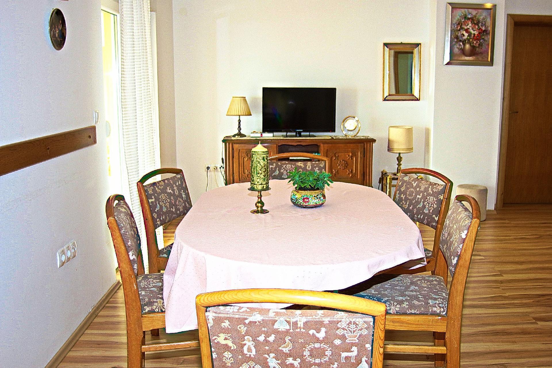 The interior of the flat presents itself as a true feel-good paradise on 74 square metres. With three stylishly furnished bedrooms, a modern bathroom plus an additional toilet, a spacious living-dining area and a fully equipped kitchen, it can comfortably accommodate up to 8 people (6 + 2). Stylish wooden furniture, lovely details and large windows that flood the flat with natural light create an inviting atmosphere. Amenities such as a dishwasher, microwave, kettle, coffee machine, high-quality bed linen and a hairdryer are available to make your stay as pleasant as possible.