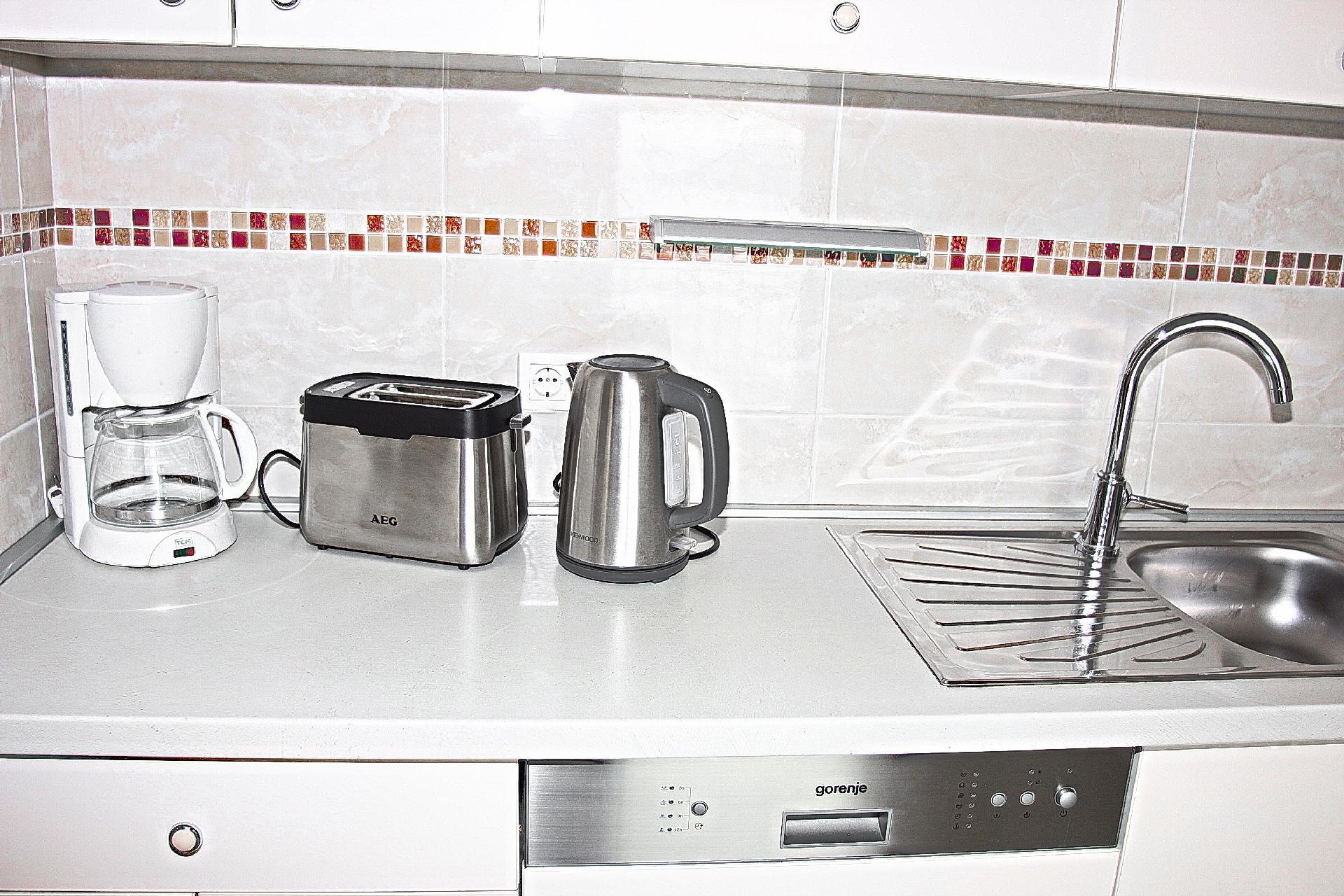 Kitchen: Ceran stove; Coffee machine; Dishwasher; Electric stove; Freezer; Freezer; Fridge; Microwave; Oven; Toaster; Water boiler