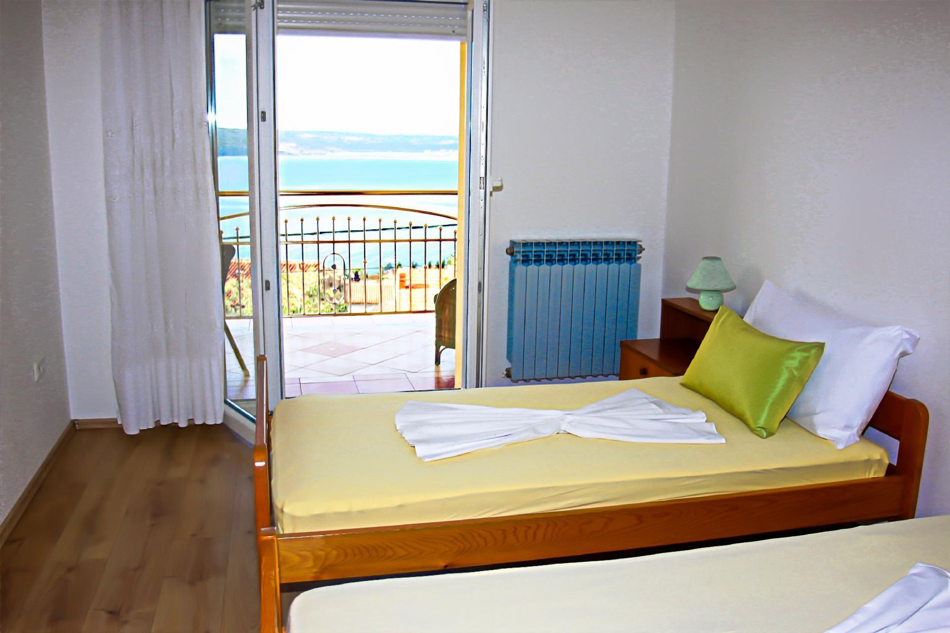 The outdoor area of the flat enchants with a spacious sunny balcony that stretches along the entire accommodation and from which you can enjoy a breathtaking view of the sea and the island of Krk opposite. The green surroundings and the opportunity to enjoy balmy evenings with a view of beautiful sunsets or a magical moonlight at midnight make this flat a special holiday spot.