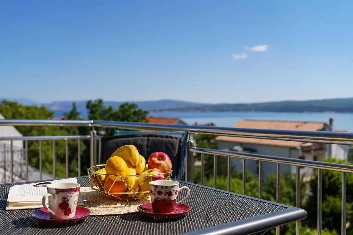 Comfortable holiday apartment with sea view in Dramalj – ideal for 4 peopleThis lovingly furnished holiday apartment in Dramalj is the perfect choice for a relaxing holiday on the Croatian Adriatic coast. With two separate bedrooms, it offers ample space for up to four people – ideal for families or couples.The cozy living and dining area boasts a stunning view of the sea and invites you to linger – whether at breakfast or relaxing at the end of the day. The fully equipped kitchen allows you to easily prepare your own meals, just like at home.The modern bathroom is equipped with a shower and toilet and ensures a refreshing, relaxing atmosphere. For additional comfort, air conditioning and free Wi-Fi are available. Private parking is available directly at the property.An outdoor barbecue area invites you to spend convivial evenings with family or friends. The apartment is in a quiet, pleasant location – the beach, restaurants, and shops are within easy walking distance.Enjoy relaxing holidays with stunning sea views, Mediterranean flair, and all the comforts you could wish for – we look forward to welcoming you to Dramalj.Amenities:Living areaDining area and kitchen are in one room, tiled floorKitchenDishes, kitchen towels, gas stove, 2 hotplates, refrigerator with freezer, coffee machine, kettle, microwaveBedroomBedroom with double bed, tiled floorBedroom with double bed, access to balcony/terrace, sea view, tiled floorBathroomBathroom with toilet, showerBalcony & TerracePrivate balcony, partially covered, sea view, seating, balcony size: 12 m²Further informationBarbecue available, private parking on site, pets not allowed, air conditioning included in the price, owner lives in the same house, bed linen provided, towels provided, Wi-Fi internet access