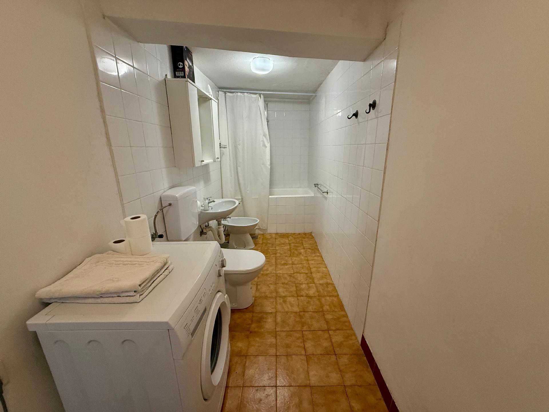 The flat has a tastefully decorated bedroom and a bathroom with an inviting bathtub, which provides soothing relaxation after a long day of adventure. Even when the summer heat reaches its peak, the partial air conditioning promises pleasant coolness and a restful night's sleep.