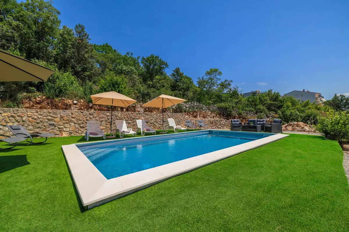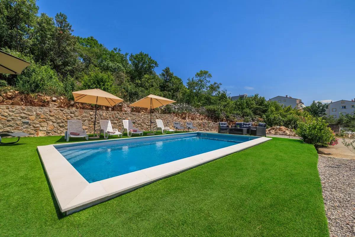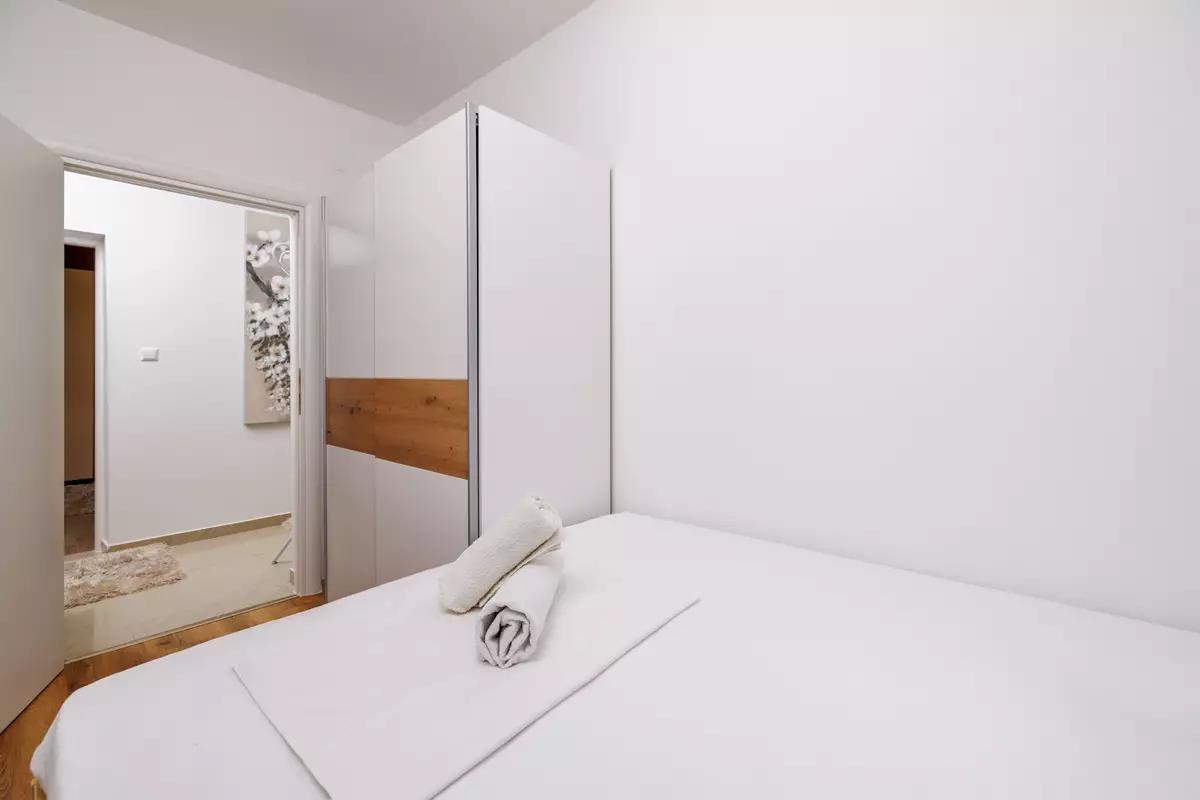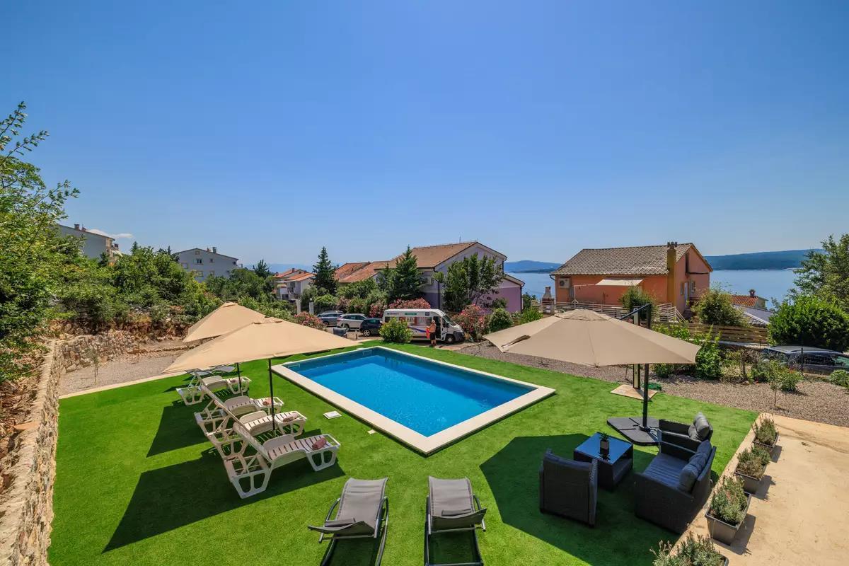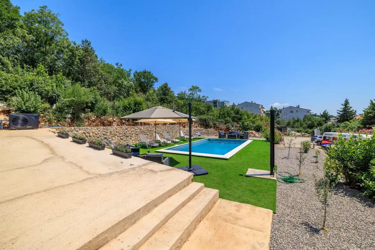 Tastefully furnished apartment in Dramalj, suitable for 6-7 people.The living area includes a living/dining room with a kitchen equipped with a sofa bed for one person, as well as three bedrooms, each for 2 people, a bathroom, and a balcony with sea views.Facilities:The living/dining room and kitchen are one room with tiled floors and satellite TV.The kitchen is fully equipped with dishes, kitchen towels, an electric stove, four cooking plates, an oven, a fridge with freezer, a coffee filter machine, a kettle, a microwave, a toaster, and a dishwasher.The bedrooms are equipped as follows: one room with a double bed and laminate flooring, another with parquet flooring, and a third with tiled flooring.The bathroom features a toilet, bathtub, and separate shower, as well as a separate toilet.The private balcony with sea views has seating and measures 25 m².Additional Information:Amenities include a shared pool which is in use from 01.06.-30.09., on-site parking, pets allowed for a fee of eur 10.00 per day, air conditioning included in the price, the owner lives in the same house, bed linen and towels provided, and WiFi internet access available.Distances: to the sea 350 m, sandy beach 1.3 km, fine pebble beach 350 m, pebble beach 350 m, rocky beach 400 m, concrete beach 350 m, center 2.5 km, restaurant 300 m, supermarket 250 m, boat mooring 400 m, surf center 400 m, diving center 1.1 km, busy street 500 m.