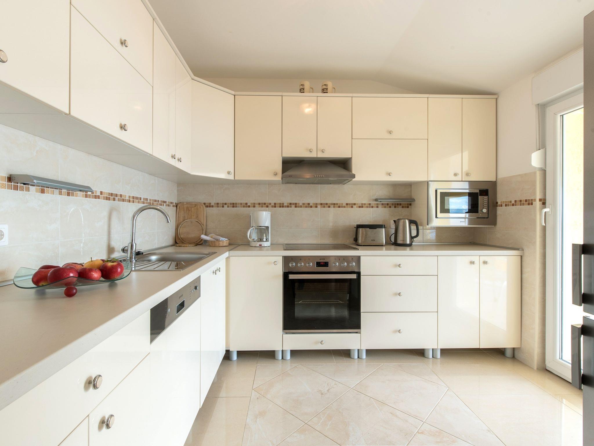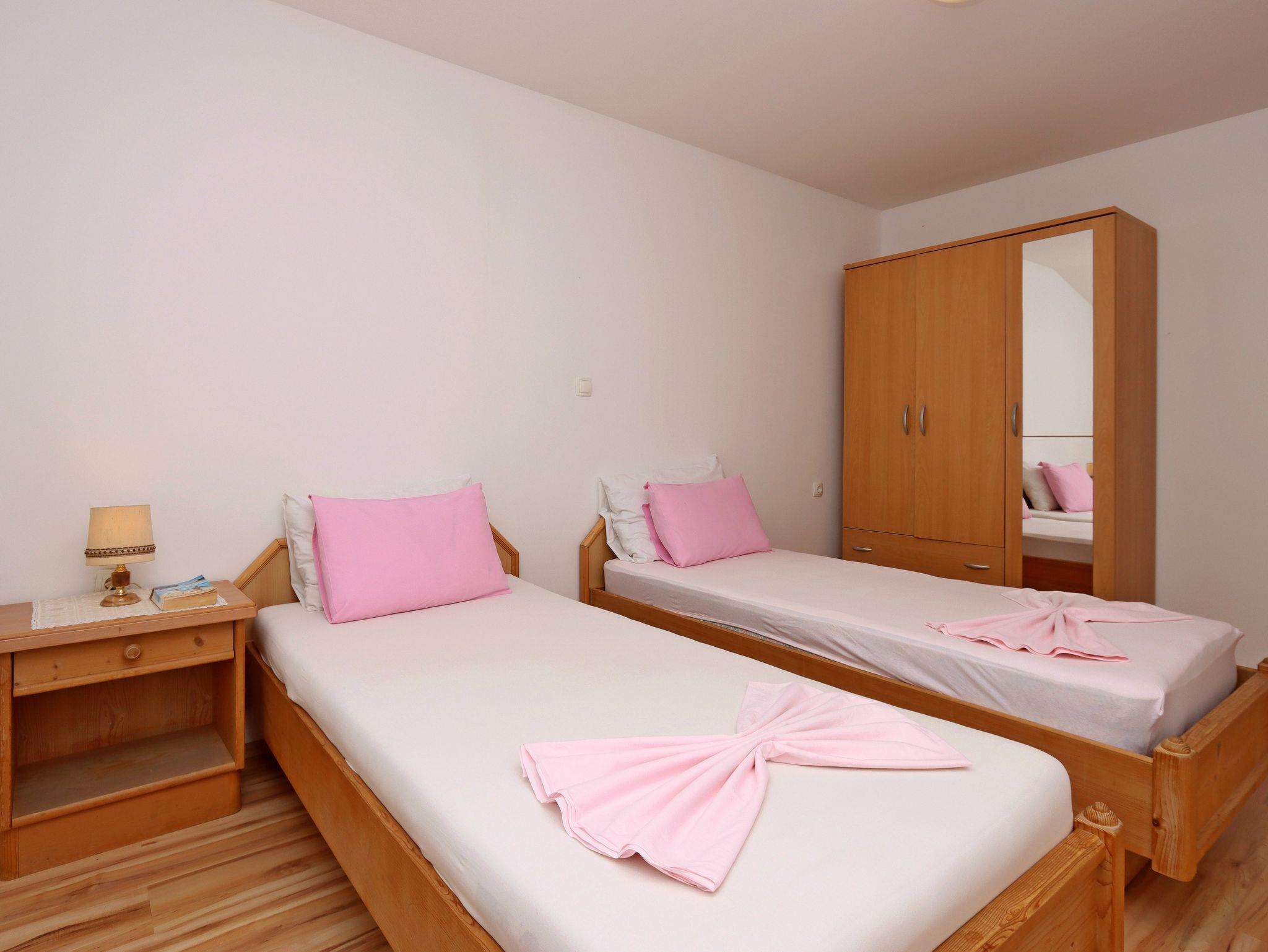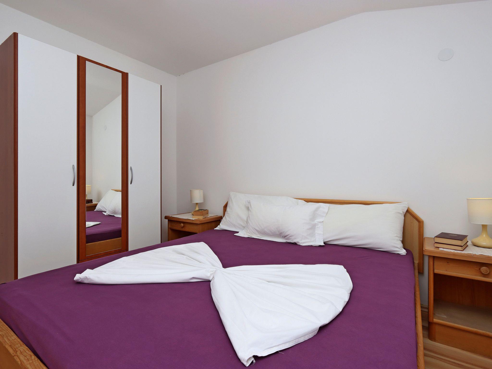 Ferienwohnung bietet Platz für 7 Gäste. Die Betten sind in Schlafzimmern, die es 3 gibt, und in Wohnzimmer, innerhalb einer Gesamtfläche von 74m2, angeordnet. Die Gäste haben eine eigene Terrasse zur Verfügung, auf der sie in warmen Sommernächten genießen können. Das Apartment bietet Meerblick. Es ist erlaubt, Speisen auf dem Gemeinschafts-Grill vorzubereiten. Unterkunftseinheit hat Räume, die von dem Rest der Einheit abgetrennt werden. IM PREIS INBEGRIFFEN: Kurtaxe, Endreinigung, Klimatisierung, Parkplatz, Internet, Kinderbett, Bügeleisen, Bügelbrett, Föhn. VERBINDLICHE ZUSÄTZLICHE KOSTEN: Aufzahlung für Kurzaufenthalte (prozentualer Zuschlag pro Nächtigungsanzahl: 30% - 1, 20% - 2, 10% - 3). UNVERBINDLICHE ZUSÄTZLICHE KOSTEN: Wäschewaschen (5,00 € Waschen). Die Verfügbarkeit zusätzlicher Dienstleistungen in Ihrem reservierten Termin und die Preise derselben (falls nicht aufgeführt) müssen im Voraus überprüft werden. Zusätzliche Dienstleistungen die in der Zahlungsaufforderung nicht aufgeführt sind werden direkt beim Vermieter bezahlt, angenommen der Gast nutzt auch diese. Ermäßigung auf den Grundpreis: Gratistag 14=13 (bei einem Aufenthalt von 14 Tagen oder mehr erhalten Sie einen Gratistag für den Aufenthalt bis 31.12.26).