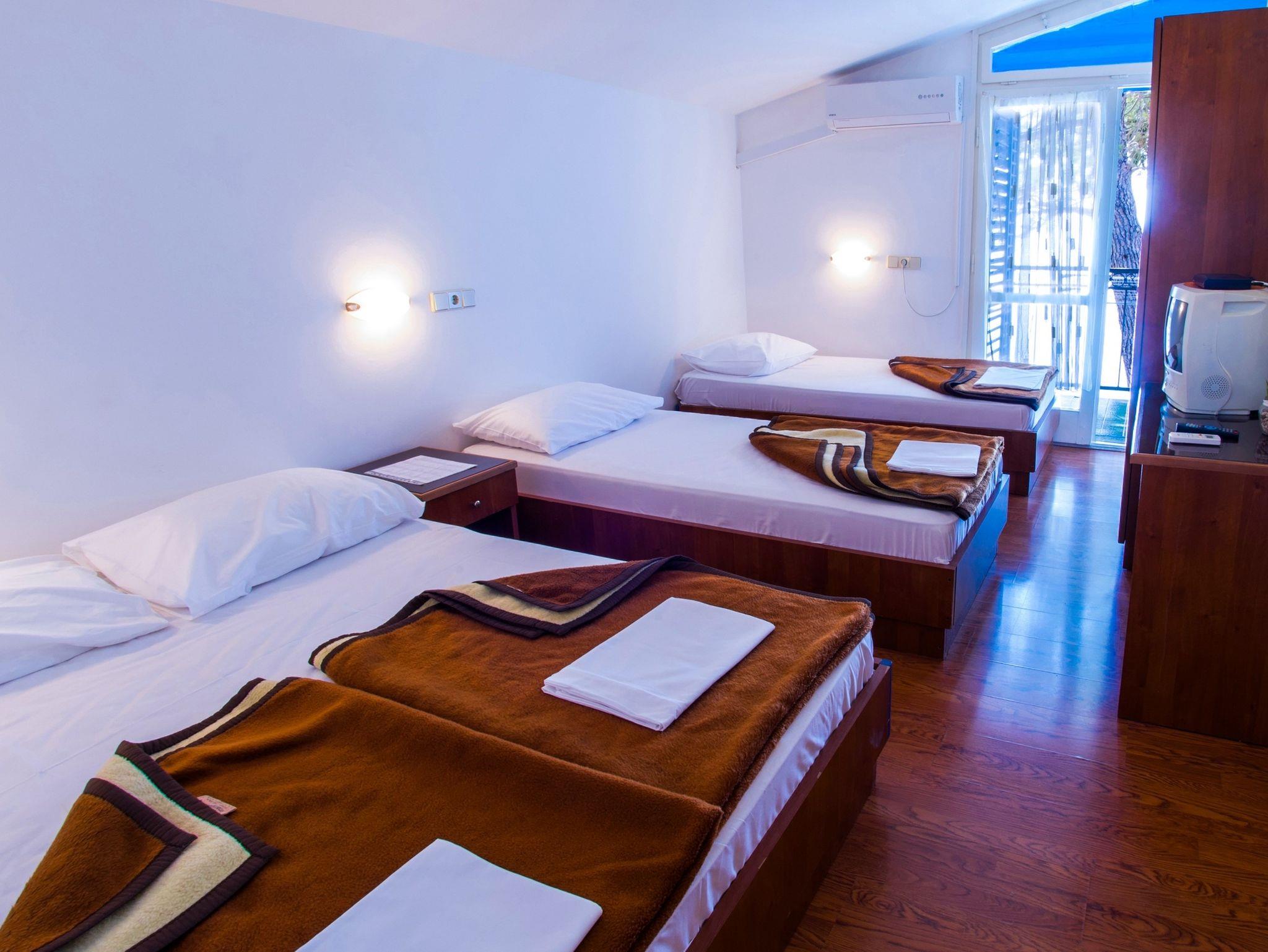 Studio bietet Platz für 3 Gäste. Die Betten sind in Schlafzimmern, die es 1 gibt, innerhalb einer Gesamtfläche von 19m2, angeordnet. Die Gäste haben einen eigenen Balkon zur Verfügung, auf der sie in warmen Sommernächten genießen können. Das Studio-Apartment bietet Meerblick. IM PREIS INBEGRIFFEN: Frühstück, Endreinigung, Klimatisierung, Parkplatz, Internet, Wäschewaschen, Bügelbrett, Föhn. VERBINDLICHE ZUSÄTZLICHE KOSTEN: Kurtaxe (Erwachsene 0,93 € - 1,78 € Nacht/Person, Kinderermäßigung 12 - 17 Jahre), Aufzahlung für Kurzaufenthalte (prozentualer Zuschlag pro Nächtigungsanzahl: 30% - 1, 20% - 2, 10% - 3). UNVERBINDLICHE ZUSÄTZLICHE KOSTEN: Halbpension (12,00 €, 50% Nachlass für Kinder zwischen 4 und 12 Jahren, Kinder bis 4 Jahre sind frei.), Vollpension (24,00 €, 50% Nachlass für Kinder zwischen 4 und 12 Jahren, Kinder bis 4 Jahre sind frei.), Zusatzbett (25,00 € pro Nacht). Die Verfügbarkeit zusätzlicher Dienstleistungen in Ihrem reservierten Termin und die Preise derselben (falls nicht aufgeführt) müssen im Voraus überprüft werden. Zusätzliche Dienstleistungen die in der Zahlungsaufforderung nicht aufgeführt sind werden direkt beim Vermieter bezahlt, angenommen der Gast nutzt auch diese.