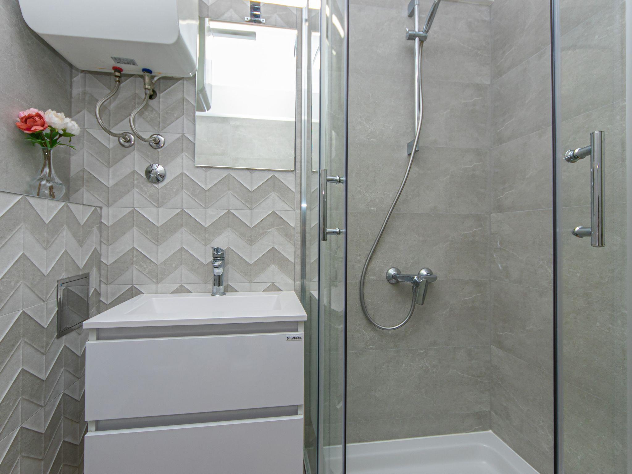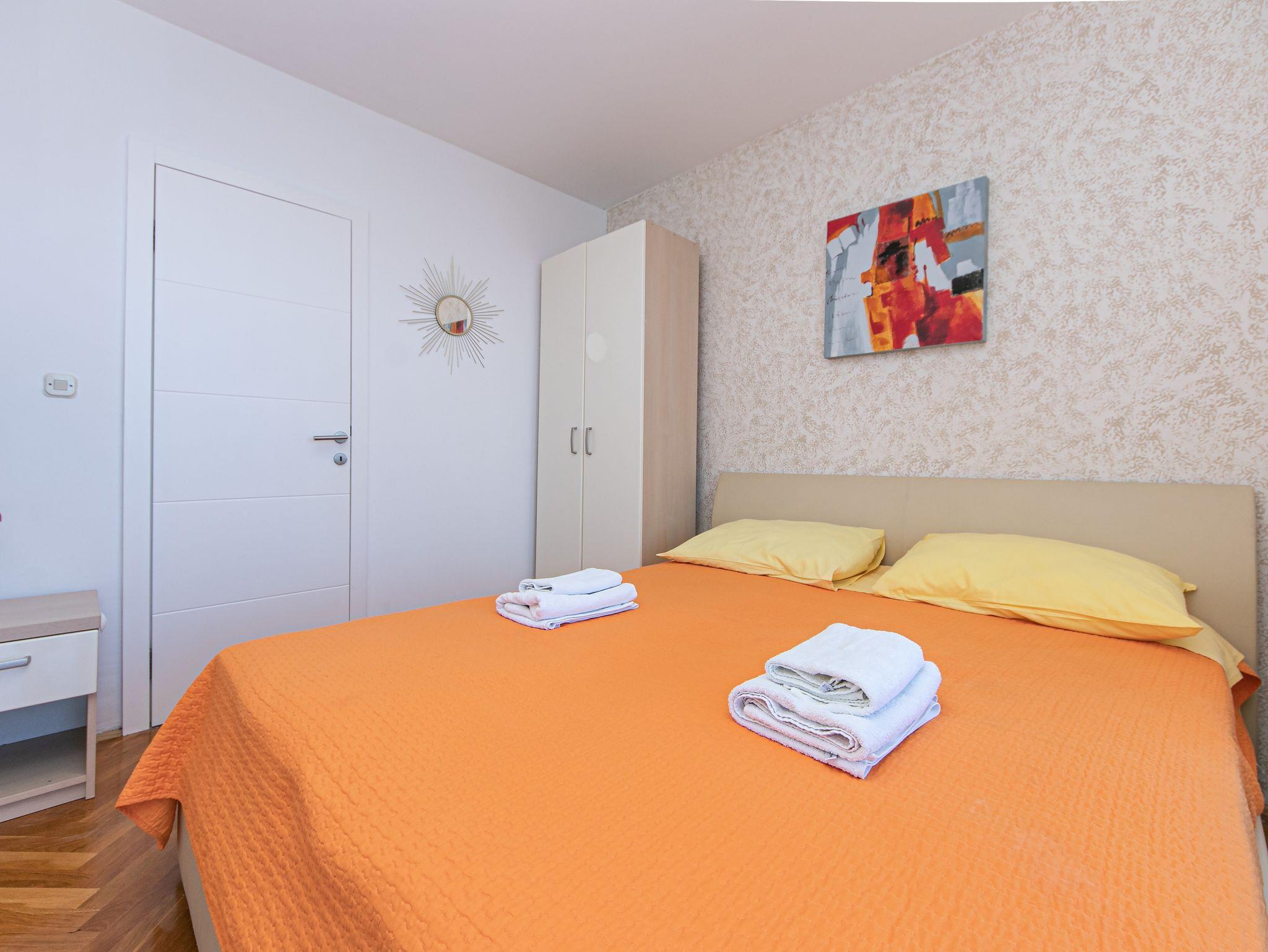 Ferienwohnung bietet Platz für 4 Gäste. Die Betten sind in Schlafzimmern, die es 2 gibt, innerhalb einer Gesamtfläche von 30m2, angeordnet. Die Gäste haben eine eigene Terrasse zur Verfügung, auf der sie in warmen Sommernächten genießen können. Das Apartment bietet Meerblick. IM PREIS INBEGRIFFEN: Kurtaxe, Endreinigung, Klimatisierung, Parkplatz, Internet. VERBINDLICHE ZUSÄTZLICHE KOSTEN: Aufzahlung für Kurzaufenthalte (prozentualer Zuschlag pro Nächtigungsanzahl: 30% - 1, 20% - 2, 10% - 3). Die Verfügbarkeit zusätzlicher Dienstleistungen in Ihrem reservierten Termin und die Preise derselben (falls nicht aufgeführt) müssen im Voraus überprüft werden. Zusätzliche Dienstleistungen die in der Zahlungsaufforderung nicht aufgeführt sind werden direkt beim Vermieter bezahlt, angenommen der Gast nutzt auch diese.