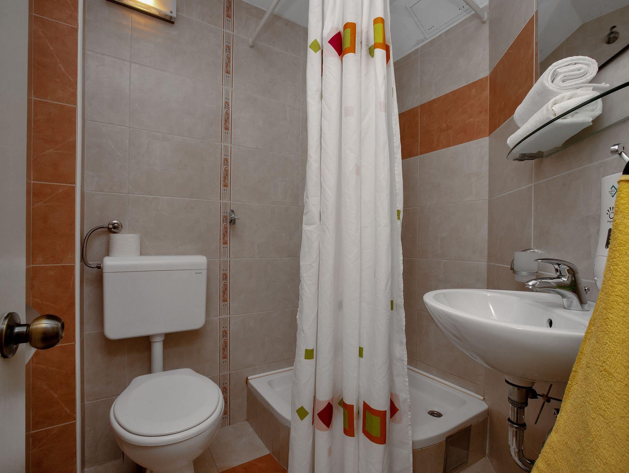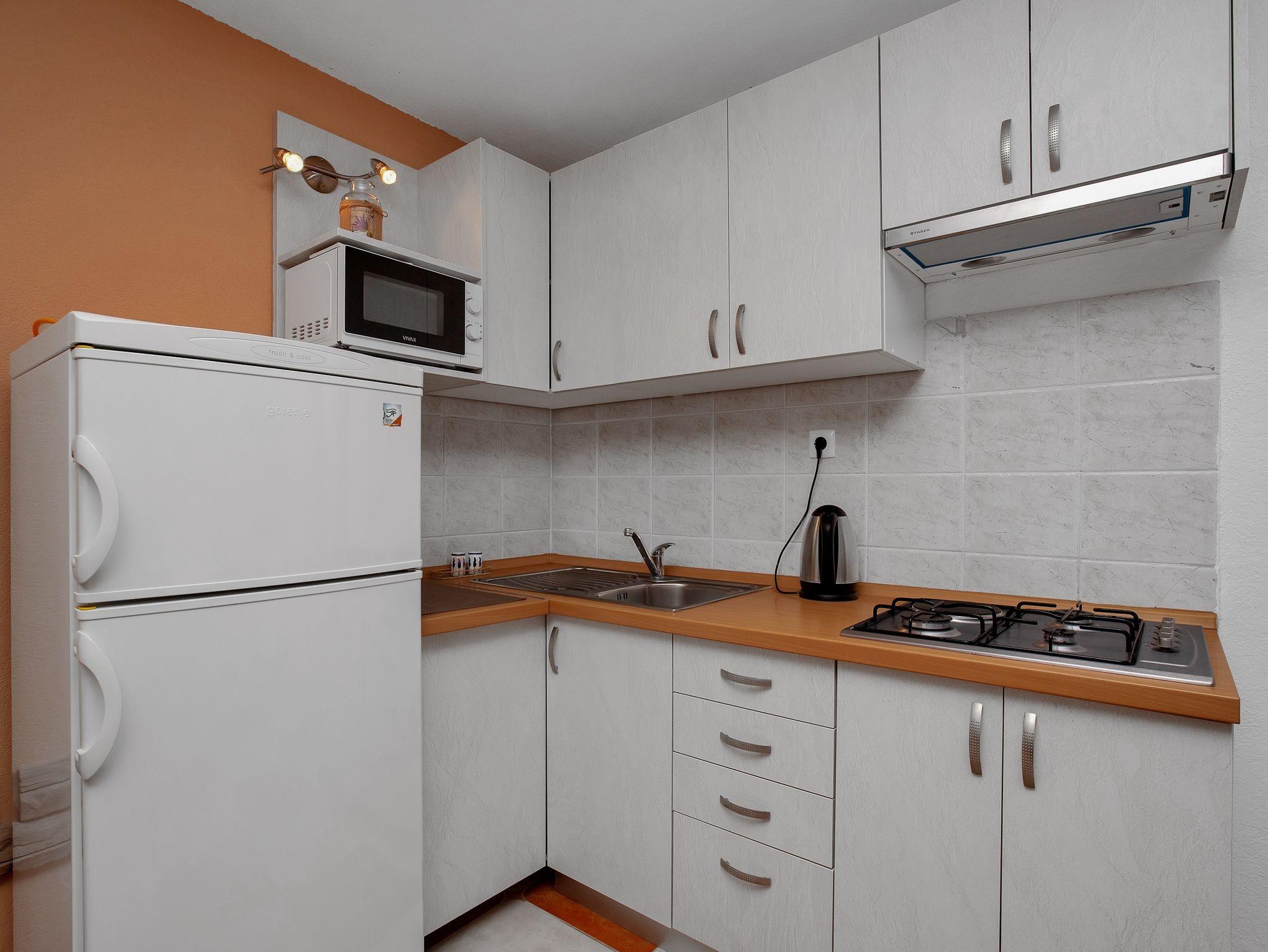 Studio bietet Platz für 3 Gäste. Die Betten sind in Schlafzimmern, die es 1 gibt, und in Esszimmer, innerhalb einer Gesamtfläche von 27m2, angeordnet. Die Gäste haben einen eigenen Balkon zur Verfügung, auf der sie in warmen Sommernächten genießen können. Das Studio-Apartment bietet Meerblick. IM PREIS INBEGRIFFEN: Kurtaxe, Endreinigung, Klimatisierung, Parkplatz, Internet, Bügeleisen, Bügelbrett, Föhn. VERBINDLICHE ZUSÄTZLICHE KOSTEN: Aufzahlung für Kurzaufenthalte (prozentualer Zuschlag pro Nächtigungsanzahl: 30% - 1, 20% - 2, 10% - 3). Die Verfügbarkeit zusätzlicher Dienstleistungen in Ihrem reservierten Termin und die Preise derselben (falls nicht aufgeführt) müssen im Voraus überprüft werden. Zusätzliche Dienstleistungen die in der Zahlungsaufforderung nicht aufgeführt sind werden direkt beim Vermieter bezahlt, angenommen der Gast nutzt auch diese.