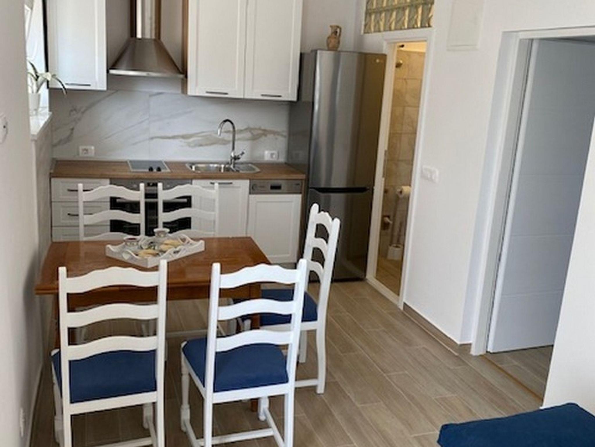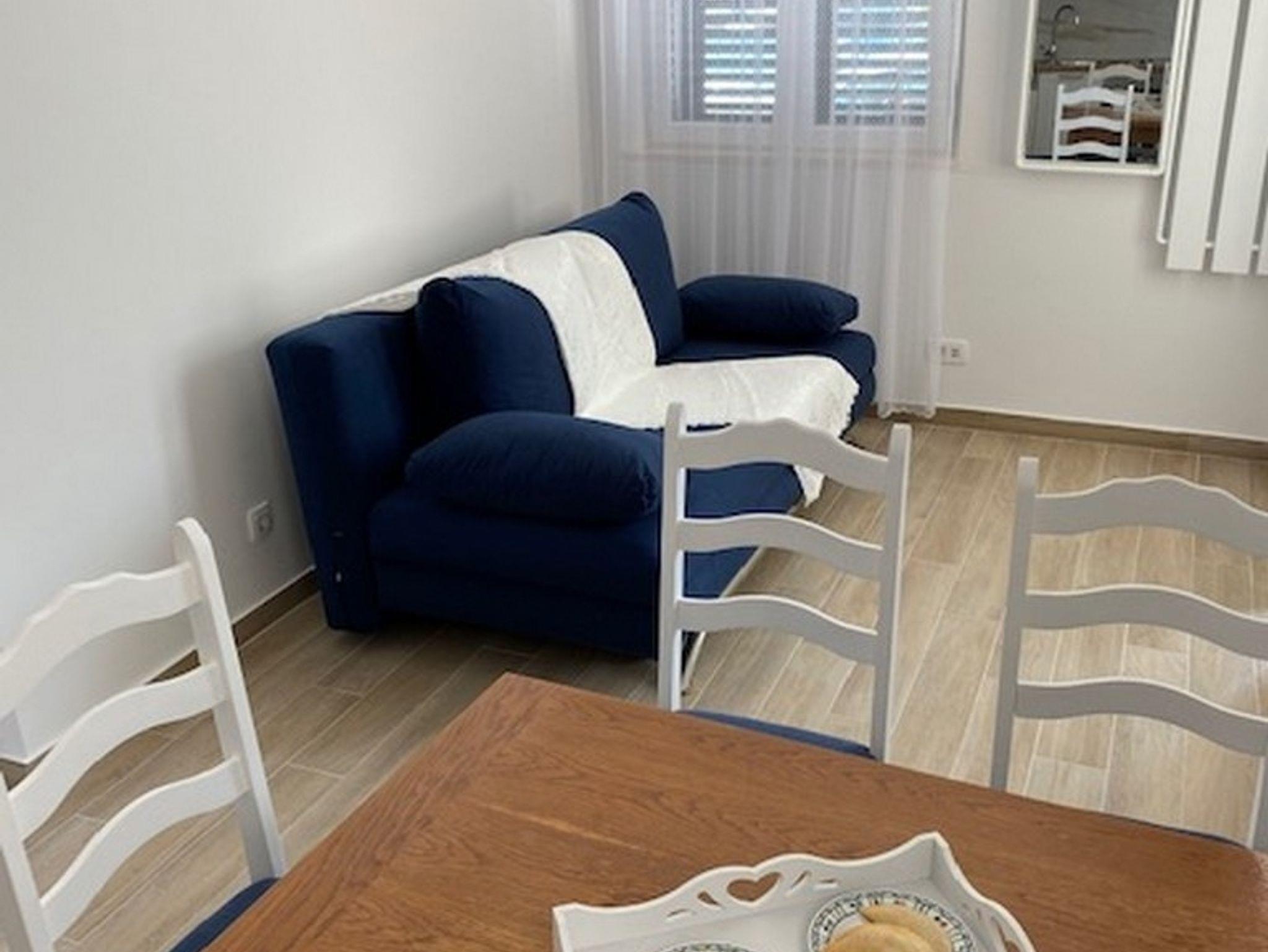 Ferienwohnung bietet Platz für 4 Gäste. Die Betten sind in Schlafzimmern, die es 1 gibt, und in Wohnzimmer, innerhalb einer Gesamtfläche von 45m2, angeordnet. Die Gäste haben eine eigene Terrasse zur Verfügung, auf der sie in warmen Sommernächten genießen können. Das Apartment bietet Meerblick. Räume der gebuchten Unterkunftseinheit werden nicht in eine Ganze verbunden. Unterkunftseinheit hat Räume, die von dem Rest der Einheit abgetrennt werden. IM PREIS INBEGRIFFEN: Kurtaxe, Endreinigung, Klimatisierung, Parkplatz, Internet. VERBINDLICHE ZUSÄTZLICHE KOSTEN: Aufzahlung für Kurzaufenthalte (prozentualer Zuschlag pro Nächtigungsanzahl: 30% - 1, 20% - 2, 10% - 3). Die Verfügbarkeit zusätzlicher Dienstleistungen in Ihrem reservierten Termin und die Preise derselben (falls nicht aufgeführt) müssen im Voraus überprüft werden. Zusätzliche Dienstleistungen die in der Zahlungsaufforderung nicht aufgeführt sind werden direkt beim Vermieter bezahlt, angenommen der Gast nutzt auch diese.