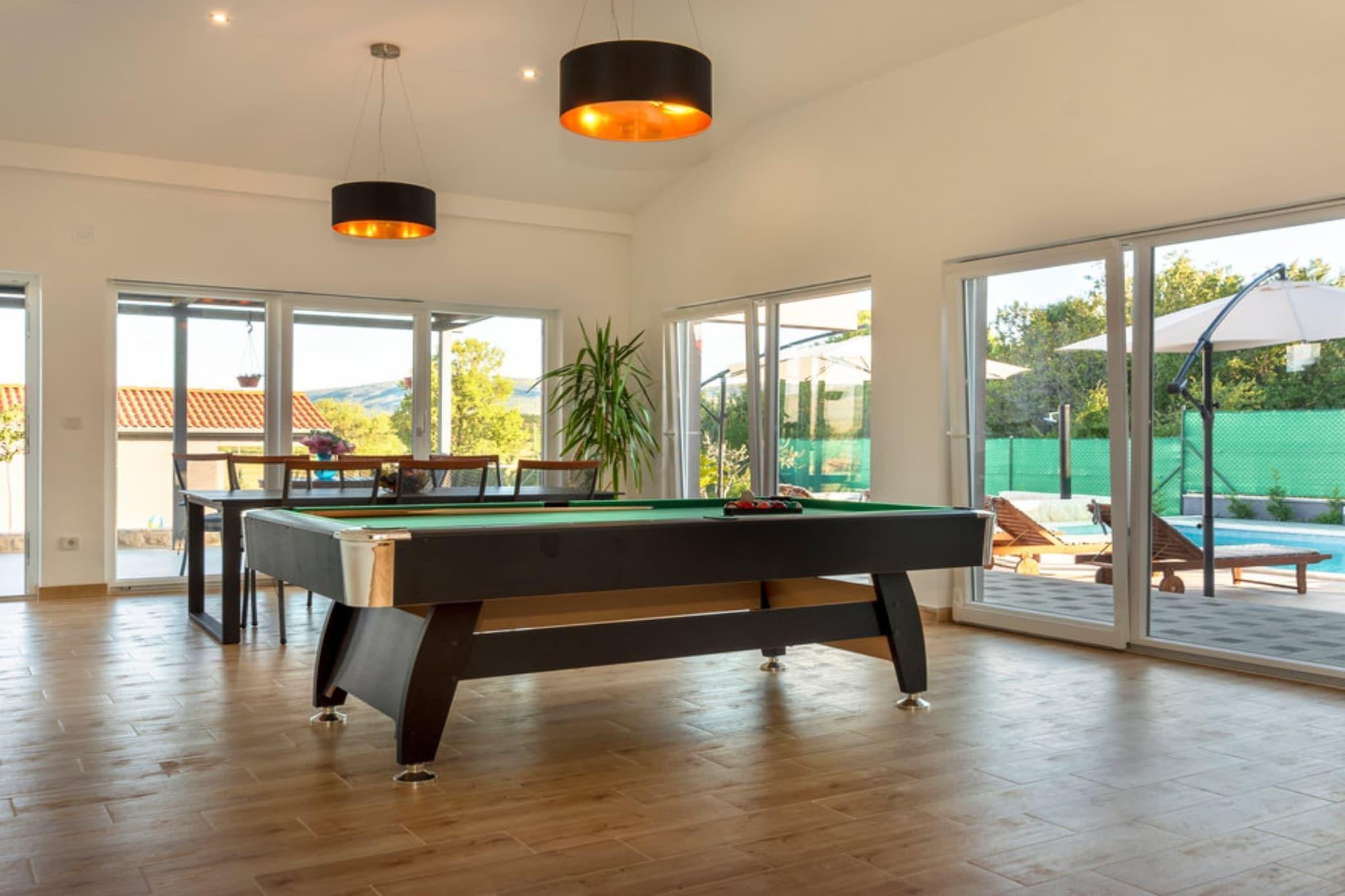 ?Villa Branka in Drniš, Šibenik-Knin County, Croatia, is a serene countryside retreat offering modern amenities amidst natural beauty. Guests have praised Villa Branka for its cleanliness, comfort, and tranquil setting. The property's proximity to natural attractions and the hospitality of the hosts are frequently highlighted. Note: Private parking is available, and a reservation is not required. A baby cot is available on request. Wi-Fi is available throughout the property. Pets are allowed. This five-bedroom can accommodate up to ten guests. It features a satellite TV and is combined with a sofa. The private bathroom is equipped with a shower and toilet. Thanks to its excellent location, everything you'll need for your vacation is just a short walk from the property. Grocery stores, cafes, restaurants—everything is within a 1.00 km radius. The airport is 60 km away from the property.