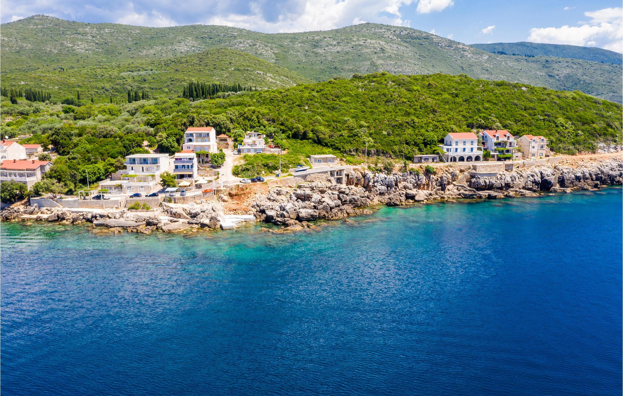 Diese geräumigen Ferienwohnungen in der Ortschaft Molunat bieten ihren Gästen einen ruhigen und komfortablen Urlaub. Sie sind modern und komplett ausgestattet und auf der überdachten Terrasse und dem Balkon haben Sie einen herrlichen Ausblick aufs Meer und die idyllische, ruhige Umgebung. Molunat ist ein kleiner Ferienort mit Sandstrand, guten Restaurants und anderen Unterhaltungsmöglichkeiten. Ein Felsen- und Betonstrand befindet sich in ca. 50 m Entfernung, während Sie den Sandstrand zu Fuß in ca. 10 Minuten erreichen. Zum Haus führt ein steiler Weg und der Parkplatz befindet sich auf dem Grundstück vor dem Haus.