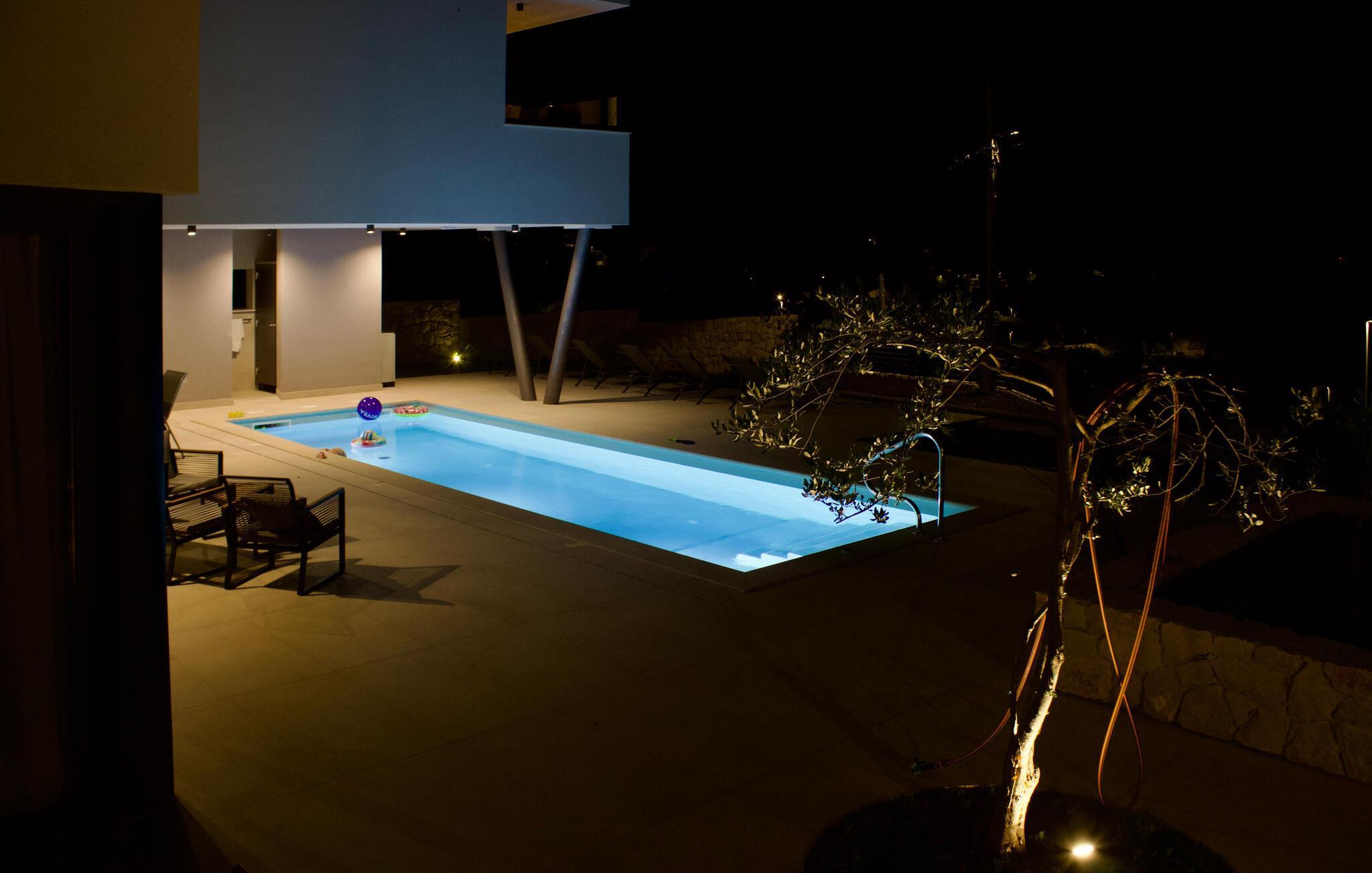 Ihre moderne Villa in Dubravka bietet Ihnen den idealen Ort, um sich zu entspannen und den Alltagsstress hinter sich zu lassen. Der private Pool mit komfortablen Liegestühlen lädt Sie zu einem erfrischenden Bad ein, während Sie den Blick auf die umgebende Natur genießen. Beginnen Sie Ihren Tag mit einem Frühstück auf der großzügigen Terrasse, die sich ideal für Mahlzeiten im Freien eignet. Nutzen Sie die Außenküche und bereiten Sie köstliche Grillgerichte zu, während Sie die mediterrane Atmosphäre auf sich wirken lassen.