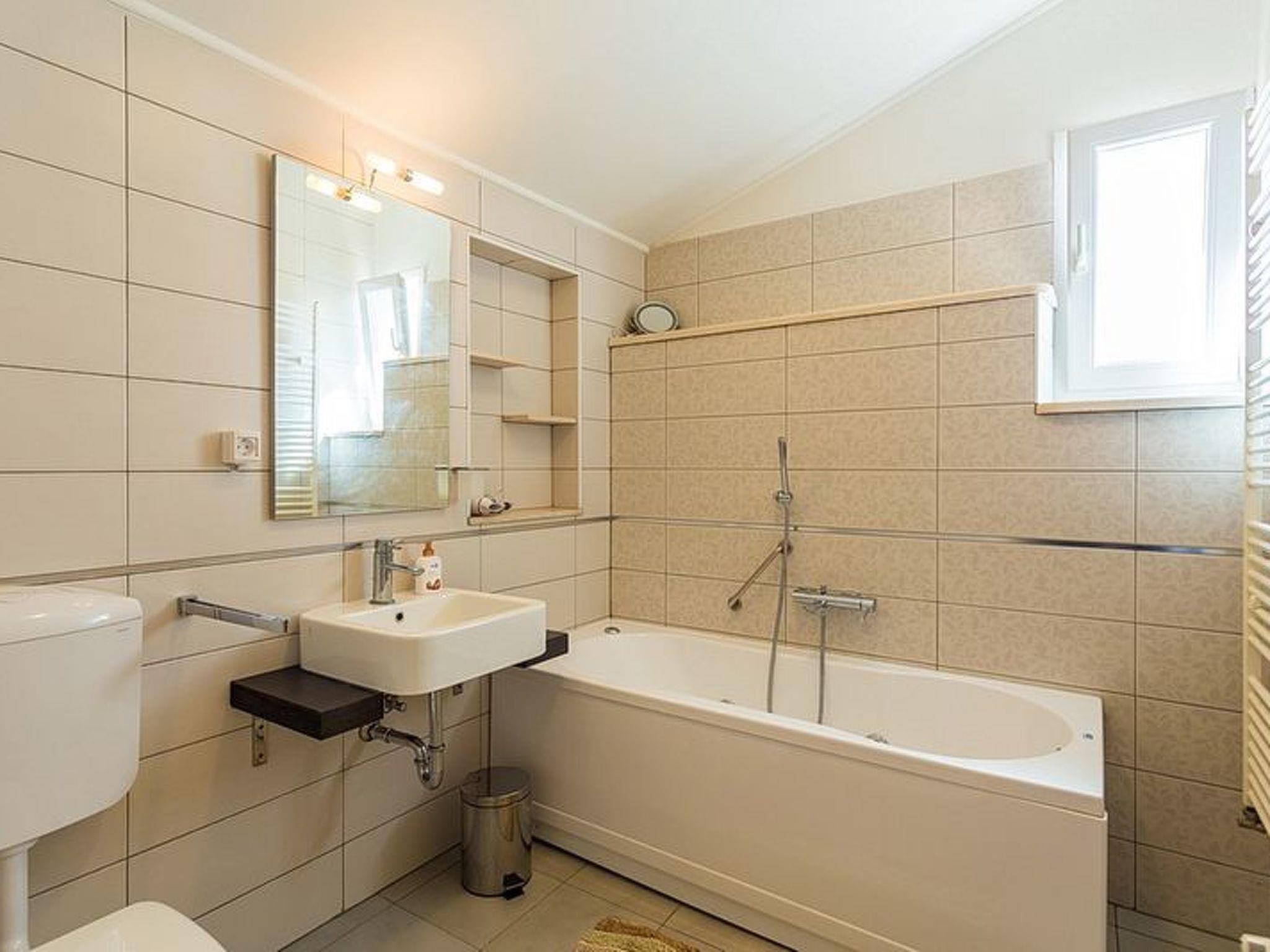 There is also a well-equipped eat-in kitchen, a hallway bathroom with Jacuzzi tub & handheld shower, a bedroom with 2 single beds (can be combined), and a master bedroom with ensuite bathroom with shower and private sea-view terrace. 2 bedrooms, 2 bathrooms, large living room, air conditioning in every room, central heating, flat-panel satellite TV, DVD player, free WiFi, , dishwasher, microwave, kettle, coffee maker, refrigerator/freezer, washing machine, iron/ironing board, baby cot and baby high chair on request, barbecue, welcome packet (including coffee, tea, homemade jam and brandy), private parking.