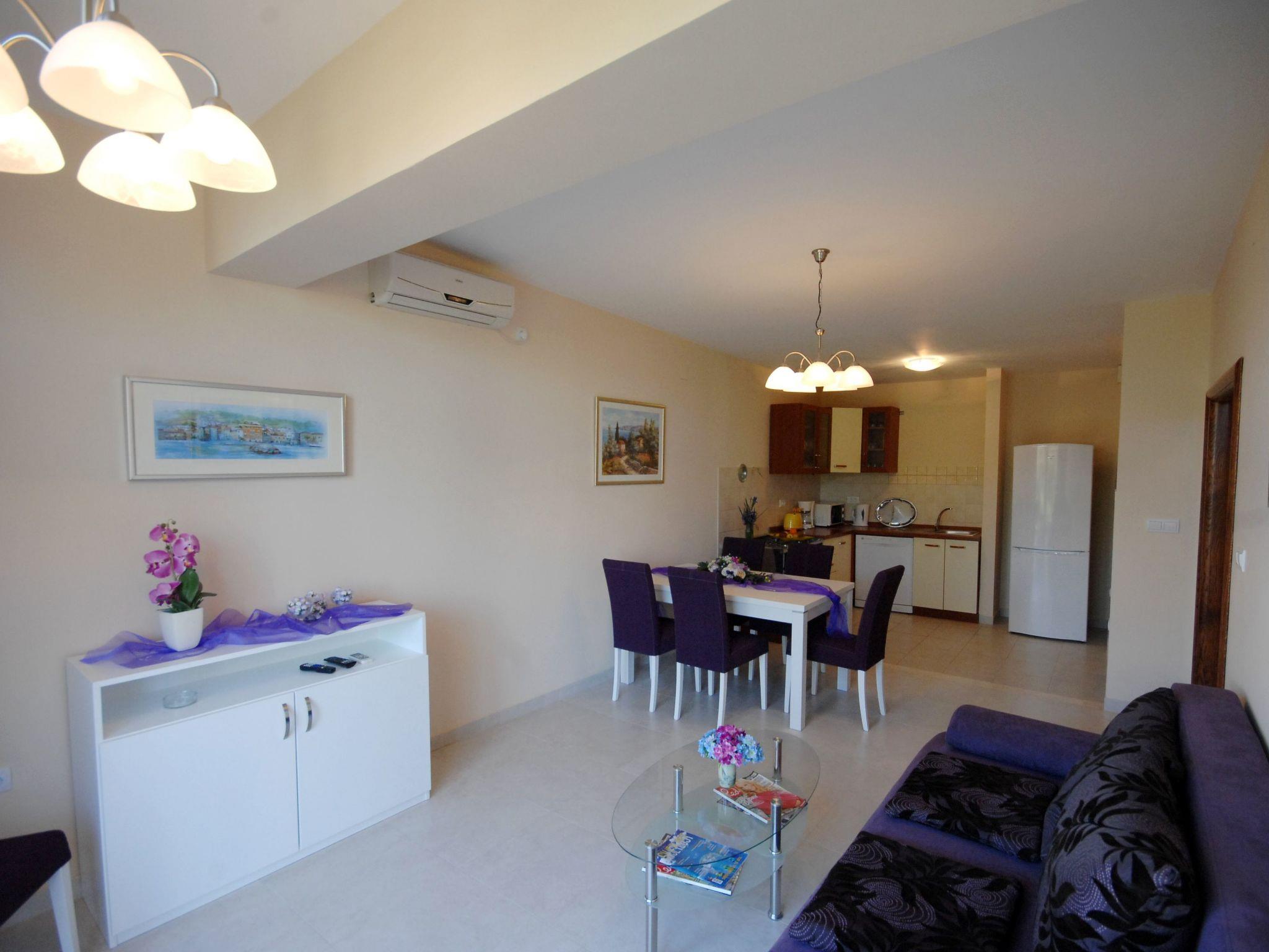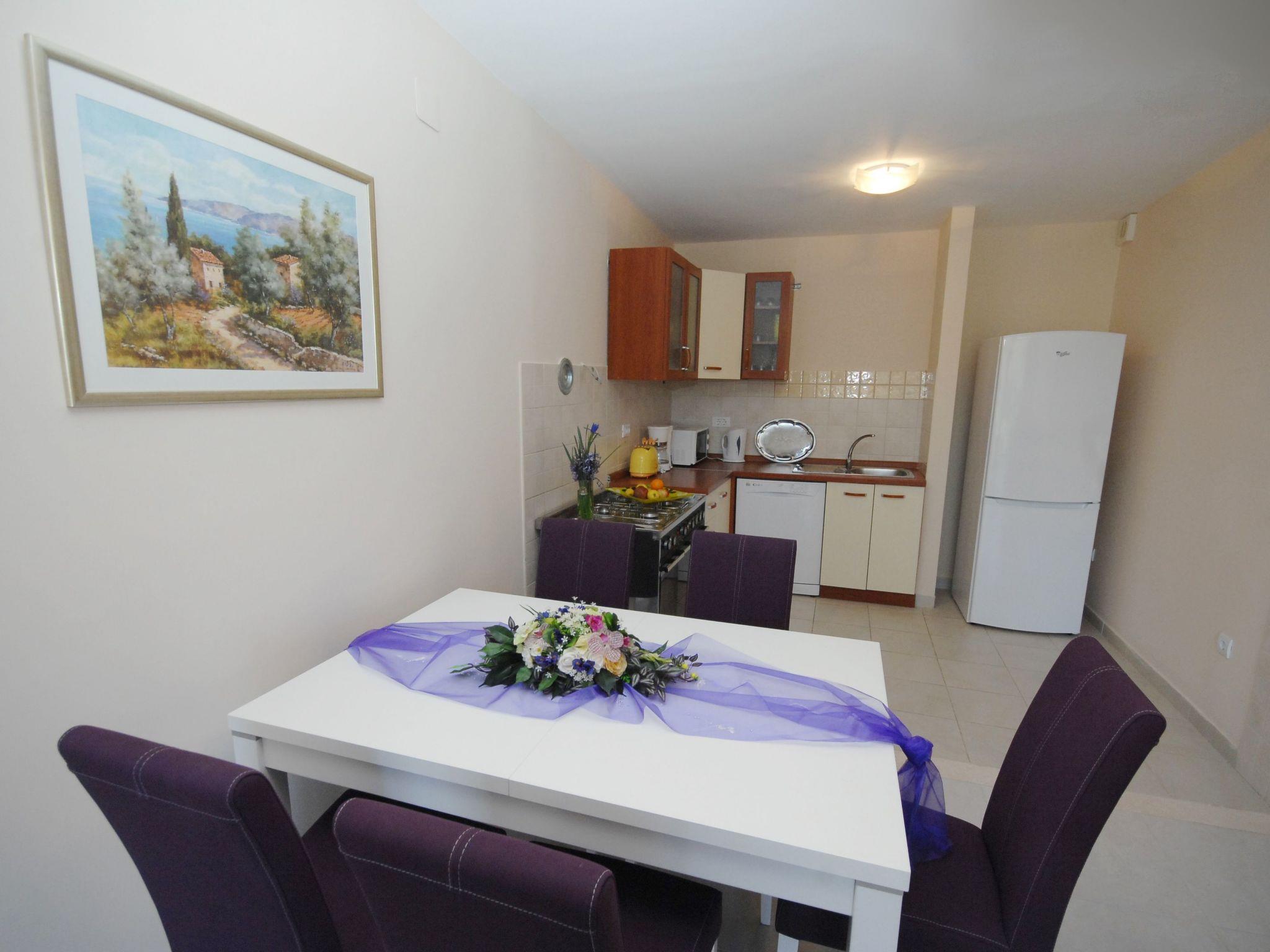 Apartment Luna has 2 double bedrooms , bathroom with washing machine , kitchen /living room . In kitchen there are dish washer and a dryer, electric/gas stove, oven, kettle, toaster, microwave, coffee machine, fridge / freezer.