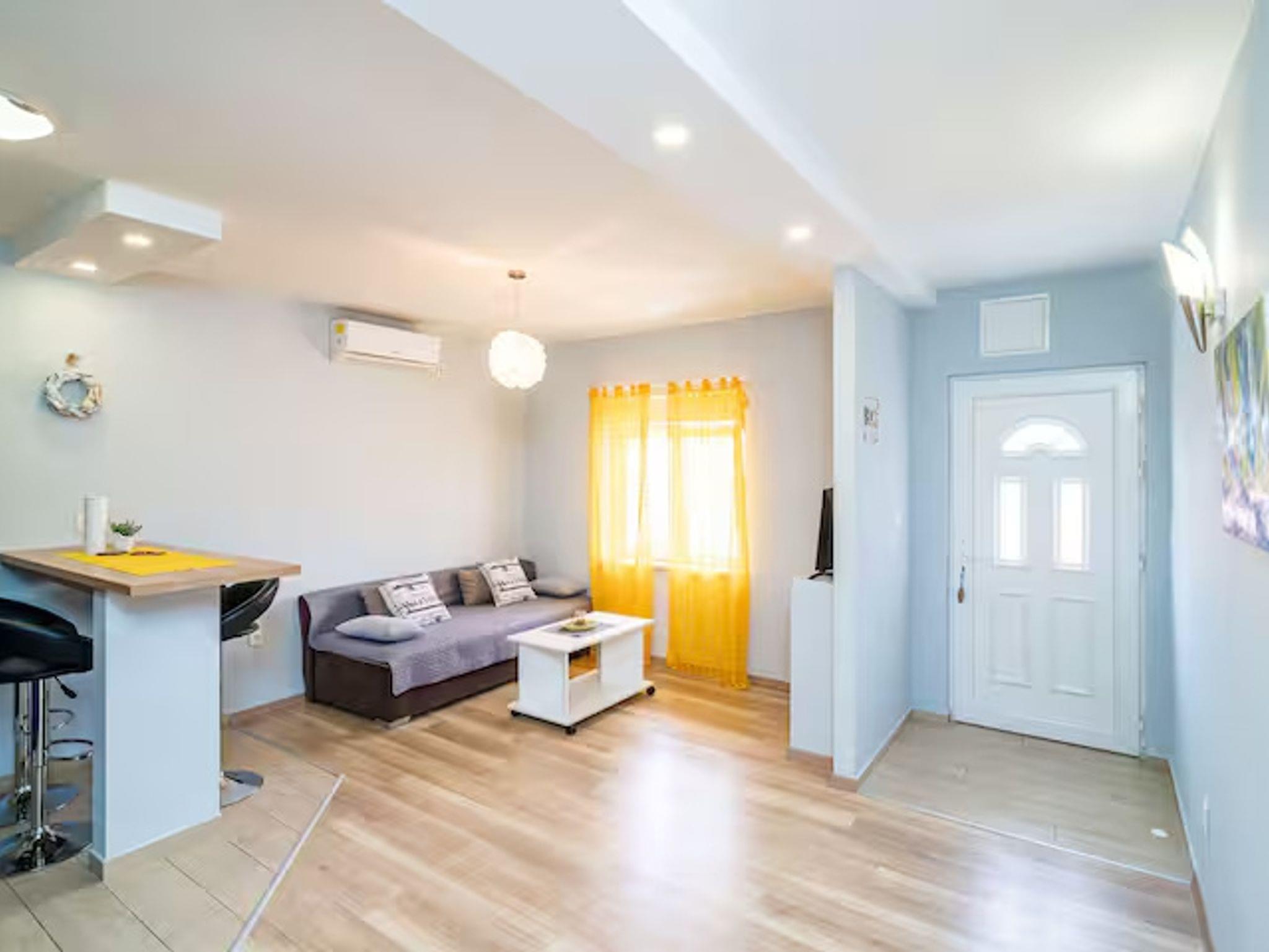 Ferienwohnung bietet Platz für 4 Gäste. Die Betten sind in Schlafzimmern, die es 1 gibt, und in Wohnzimmer, innerhalb einer Gesamtfläche von 37m2, angeordnet. Die Gäste haben eine eigene Terrasse zur Verfügung, auf der sie in warmen Sommernächten genießen können. Das Apartment bietet Meerblick. Für vollen Genuss und Entspannung gibt es einen privaten Grill für Gäste dieser Unterkunft. In der Unterkunftseinheit besteht die Möglichkeit des Mitbringens von Haustieren gegen Aufpreis. IM PREIS INBEGRIFFEN: Kurtaxe, Endreinigung, Klimatisierung, Parkplatz, Internet, Kinderbett, Bügeleisen, Bügelbrett, Föhn, Sonnenschirm. UNVERBINDLICHE ZUSÄTZLICHE KOSTEN: Haustiere (20,00 € pro Nacht). Die Verfügbarkeit zusätzlicher Dienstleistungen in Ihrem reservierten Termin und die Preise derselben (falls nicht aufgeführt) müssen im Voraus überprüft werden. Zusätzliche Dienstleistungen die in der Zahlungsaufforderung nicht aufgeführt sind werden direkt beim Vermieter bezahlt, angenommen der Gast nutzt auch diese. Ermäßigung auf den Grundpreis: Gratistag 14=13 (bei einem Aufenthalt von 14 Tagen oder mehr erhalten Sie einen Gratistag für den Aufenthalt bis 31.12.25).