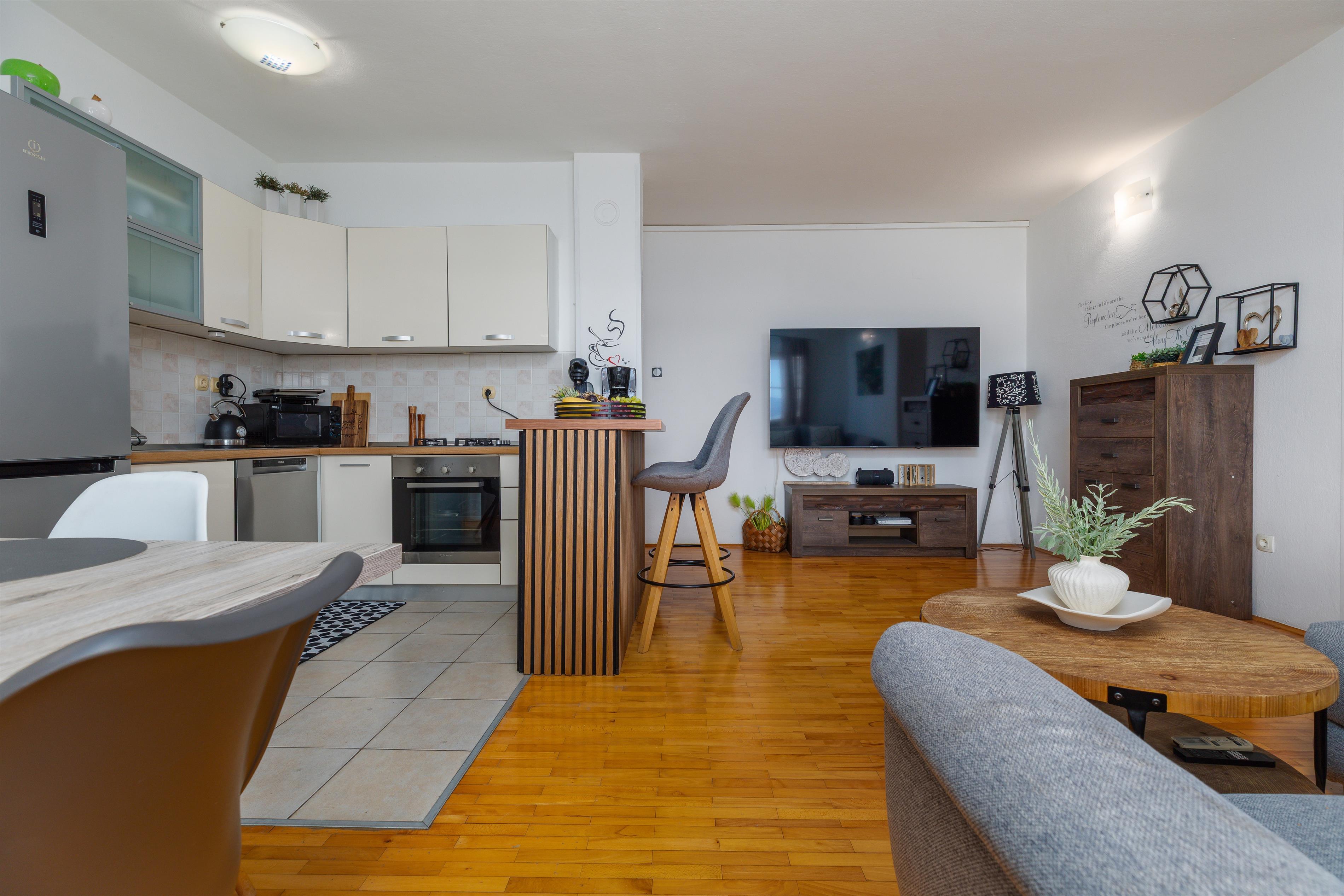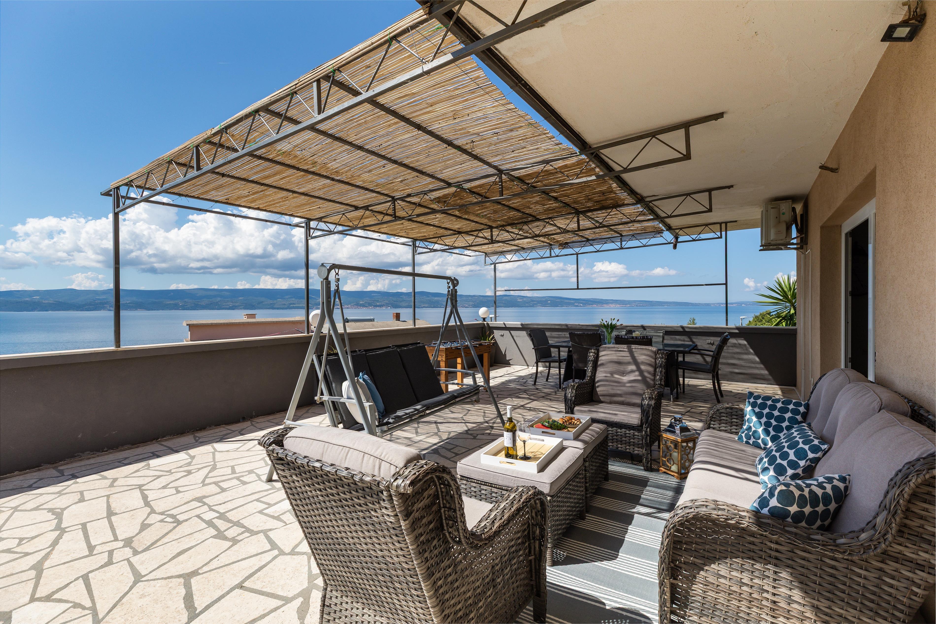 Apartment can accommodate 9 guests. Beds are situated in 3 sleeping rooms, but also in the living room, within 69m2. Guests can use a private terrace to enjoy the warm summer evenings. The apartment offers the sea view. Food can be prepared using barbecue which is shared with other guests too. This accommodation unit welcomes pets at an additional charge.