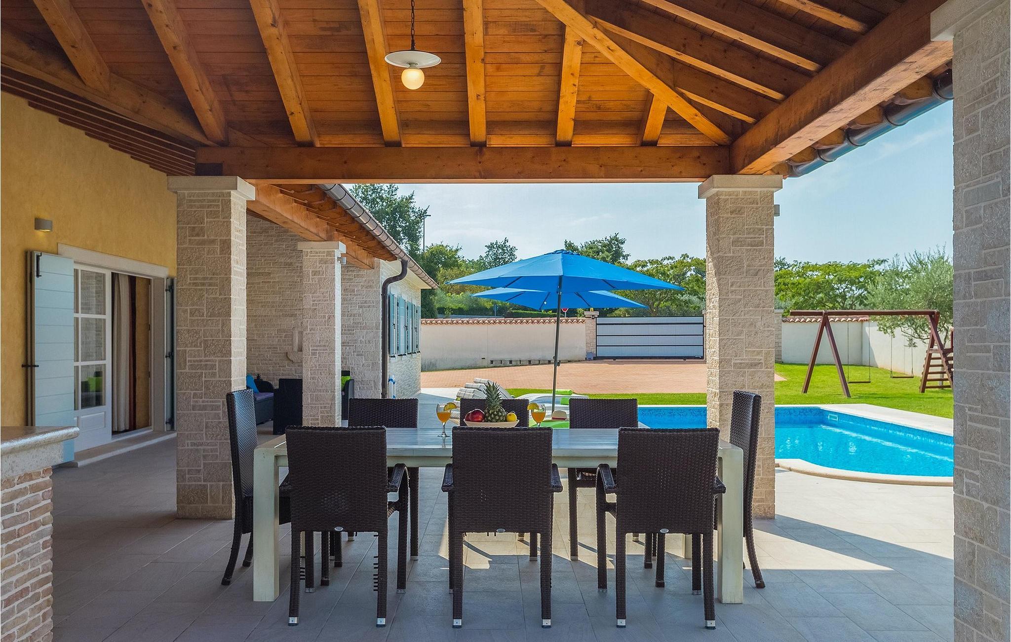 Villa Eni ist perfekt für einen entspannenden, lockeren Urlaub mit der Familie oder lieben Freunden, weit weg vom Alltag. Sollte Sie trotzdem die Abenteuerlust packen, so ist die lebhafte und interessante Stadt Pula mit ihrem ganzen Spektrum an Möglichkeiten nicht allzu weit entfernt.Diese elegante, moderne Villa befindet sich im kleinen Dorf Pavicini in der Nähe der Stadt Pula. Pavicini ist sehr berühmt für eine der ältesten Ölmühlen in Istrien. Sie können es besuchen und frisches kaltgepresstes Olivenöl probieren. Das Gebiet ist auch bekannt für Fischerei, Landwirtschaft und Viehzucht. Die Villa Eni liegt 2 km vom Strand Duga Uvala entfernt und ist von weiten Feldern und viel Grün umgeben. Wenn Sie lokale Küche probieren möchten, sind fantastische Restaurants nur 10 Autominuten entfernt. Wir empfehlen Ihnen dringend, folgende Städte in der Nähe zu besuchen: Pula, Medulin, Rovinj, Fayana, Vodnjan; oder vielleicht berühmte Inseln wie Losinj, Krk oder Cres. Istrien ist ein perfekter Urlaubsort für alle, die sich erholen, die faszinierenden Landschaften genießen und im himmelblauen Meer schwimmen möchten.