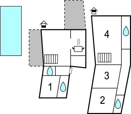 Badezimmer (nr. 3) - WC. Warmes und kaltes Wasser. Dusche