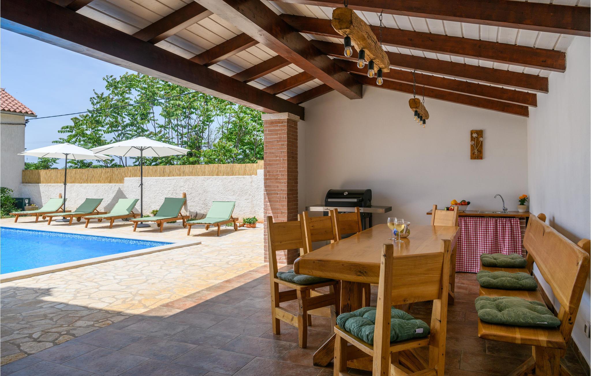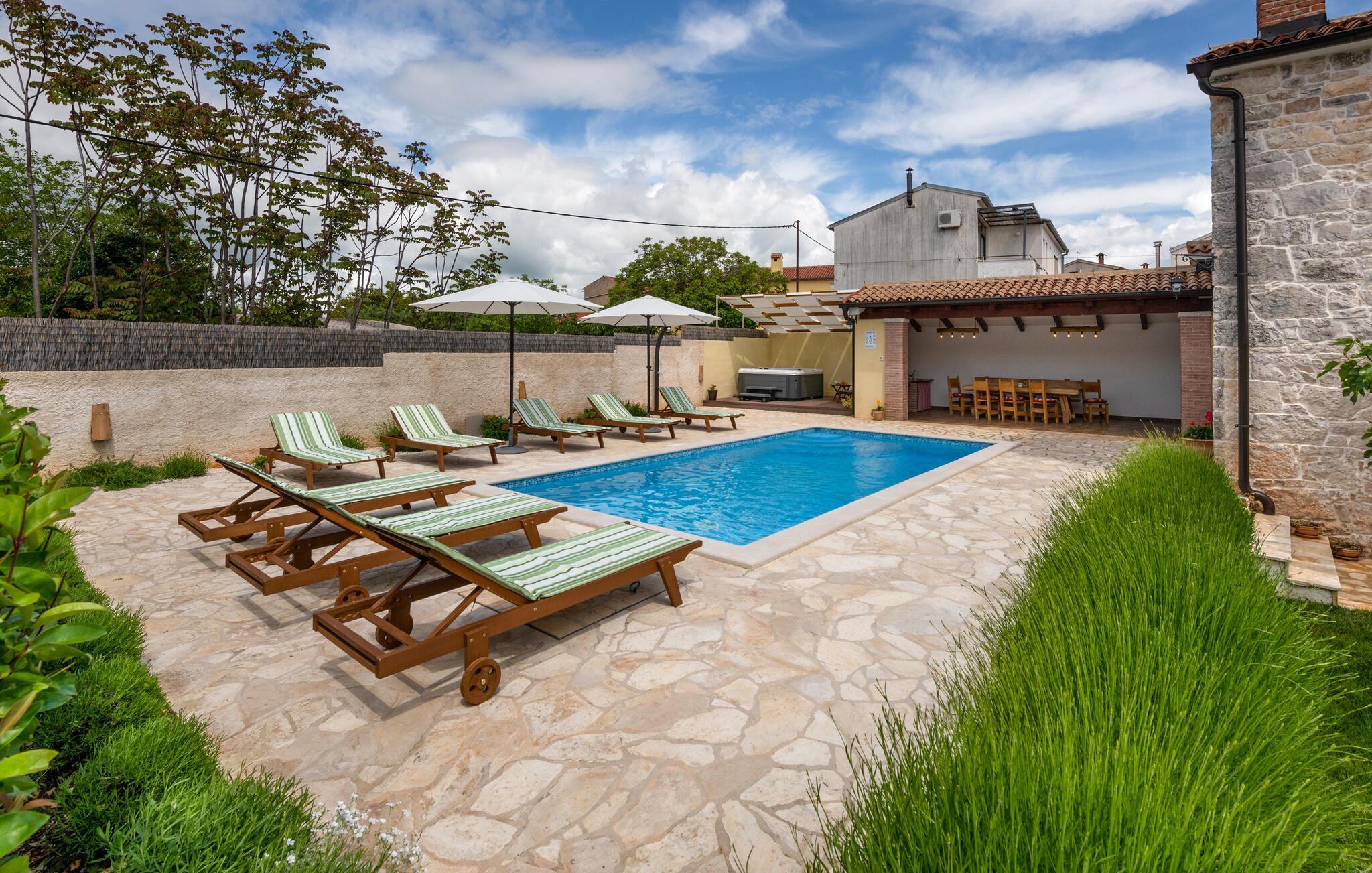 In der kleinen Ortschaft Peruški, im Süden von Istrien, liegt dieses traditionelle istrische Haus, komplett dem modernen Standard angepasst. Die schöne Inneneinrichtung mit sorgfältig ausgewählten Details,bereitet Ihnen einen angenehmen Urlaub. Auf dem umzäunten Grundstück gibt es einen Pool für Ihre Erfrischung und die überdachte Terrasse ist der ideale Ort für geselliges Beisammensein mit Mahlzeiten vom Grill. Die nächsten Strände mit kristallklarem Meer befinden sich im Ort, fernab vom Getümmel. Besuchen Sie die Stadt Pula, die Sie mit zahlreichen kulturell-historischen Sehenswürdigkeiten begeistern wird und viele andere Ferienorte in Istrien.