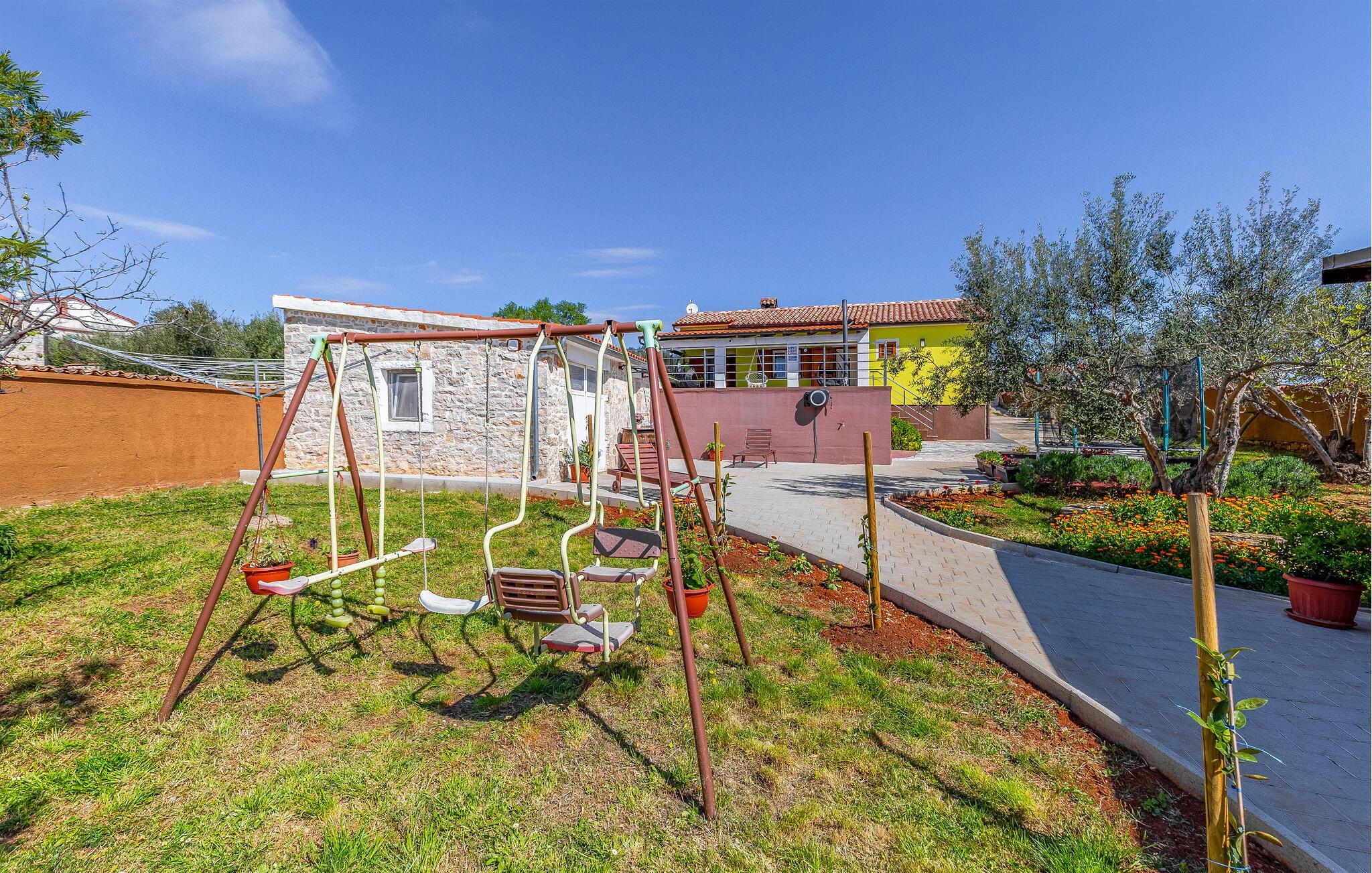Dieses schöne Ferienhaus befindet sich in Peruški, einem ruhigen mediterranen Dorf an der Ostküste Istriens. Nicht weit vom Haus entfernt finden Sie zahlreiche Naturstrände, während sich die gepflegteren Strände im nahe gelegenen Ferienort Duga uvala befinden. Die Besitzer haben dafür gesorgt, dass Ihre jüngsten Gäste viele lustige Aktivitäten auf dem Trampolin, der Rutsche und der Schaukel ausüben können, während die Erwachsenen die Zubereitung gegrillter Köstlichkeiten genießen. Verpassen Sie nicht einen Ausflug in die antike Stadt Pula, die größte Stadt der Halbinsel Istrien, und entdecken Sie die faszinierenden römischen Denkmäler. In den nahe gelegenen Orten können Sie auch den Adrenalinpark in Glavani oder eine Pferderanch besuchen sowie eine Tour mit Quads und Jetskis unternehmen. Hier lautet das Motto: genießen und Spaß haben!