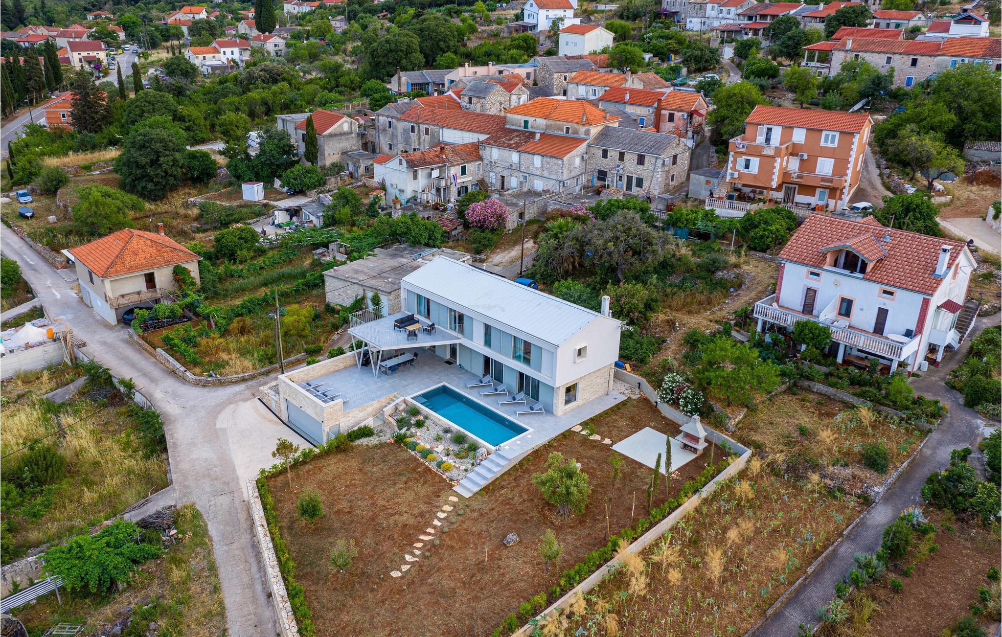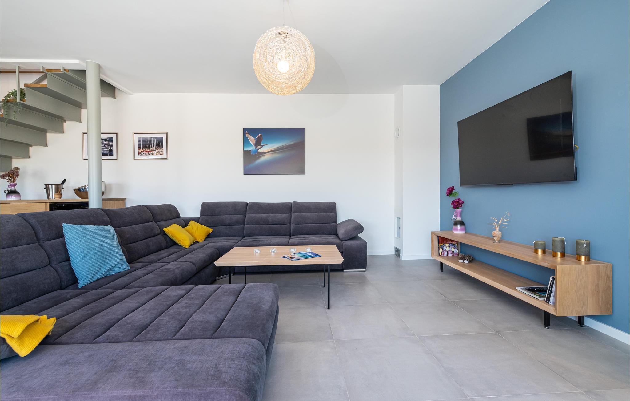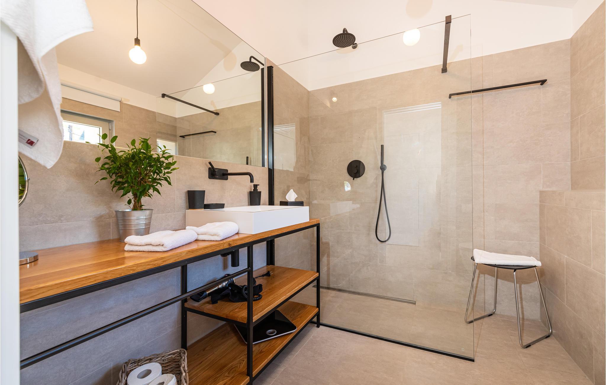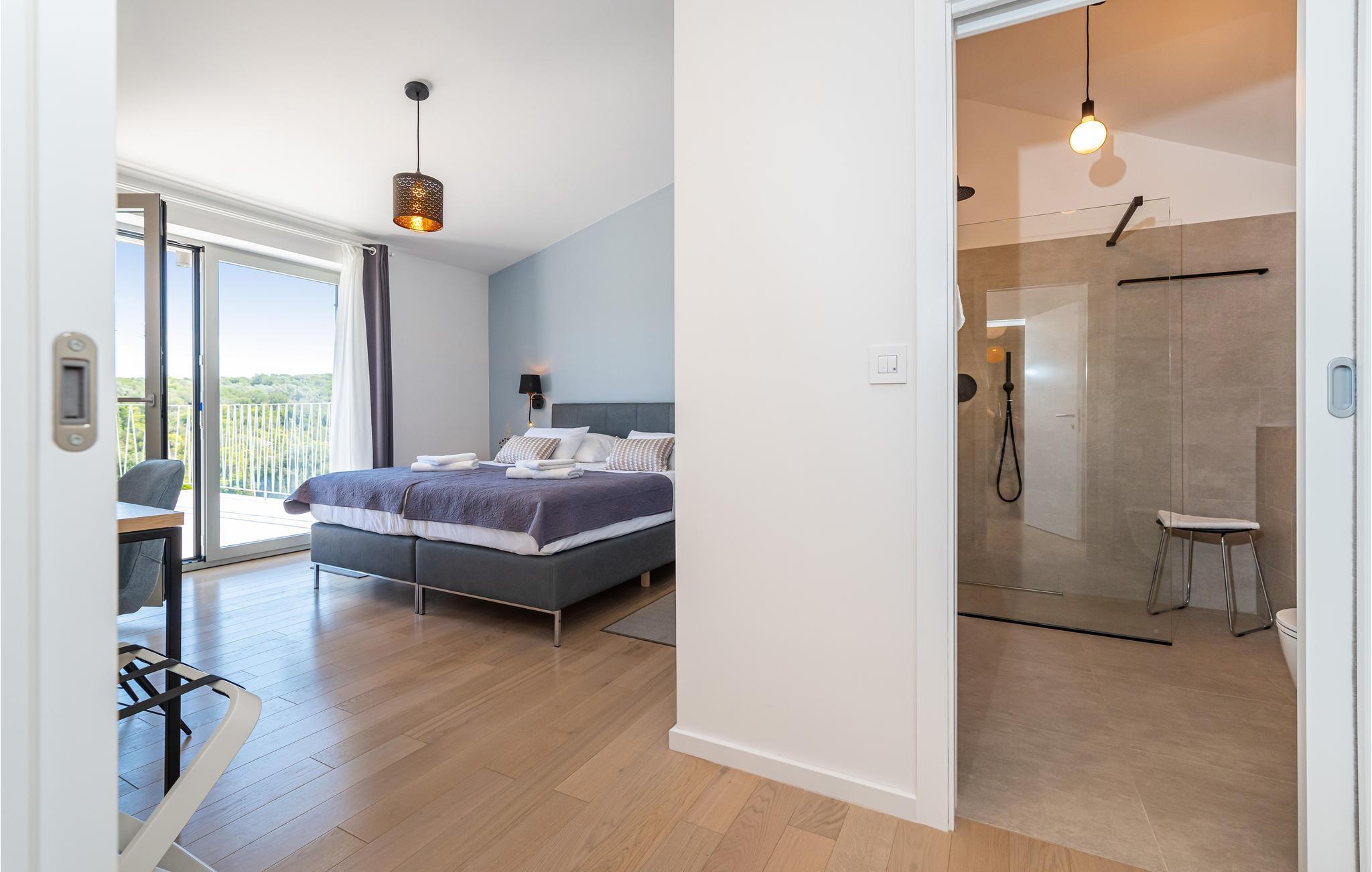 Diese außergewöhnliche Villa mit moderner Architektur lädt Sie zu einem unvergesslichen Urlaub ein. Der offene Wohnraum im Erdgeschoss kombiniert Küche, Esszimmer und Wohnzimmer zu einem luftigen Ambiente, das direkt auf die Sonnenterrasse mit Pool führt. Jede Etage bietet Ihnen eine eigene Terrasse, auf der Sie die ruhige Umgebung genießen können. Der Pool verspricht Erfrischung an heißen Tagen, während die Kinder im Garten spielen. Abends bereiten Sie Grillspezialitäten im Freien zu und lassen den Tag entspannt ausklingen.