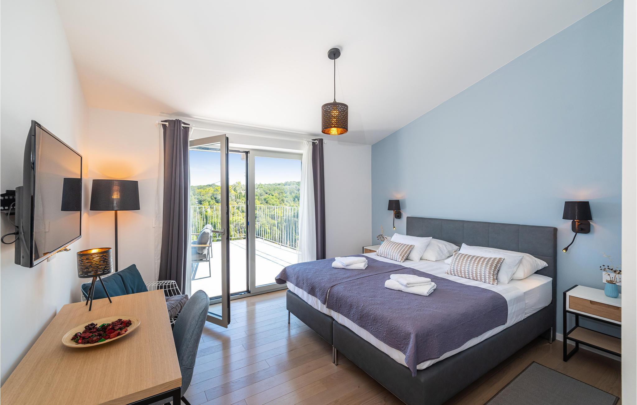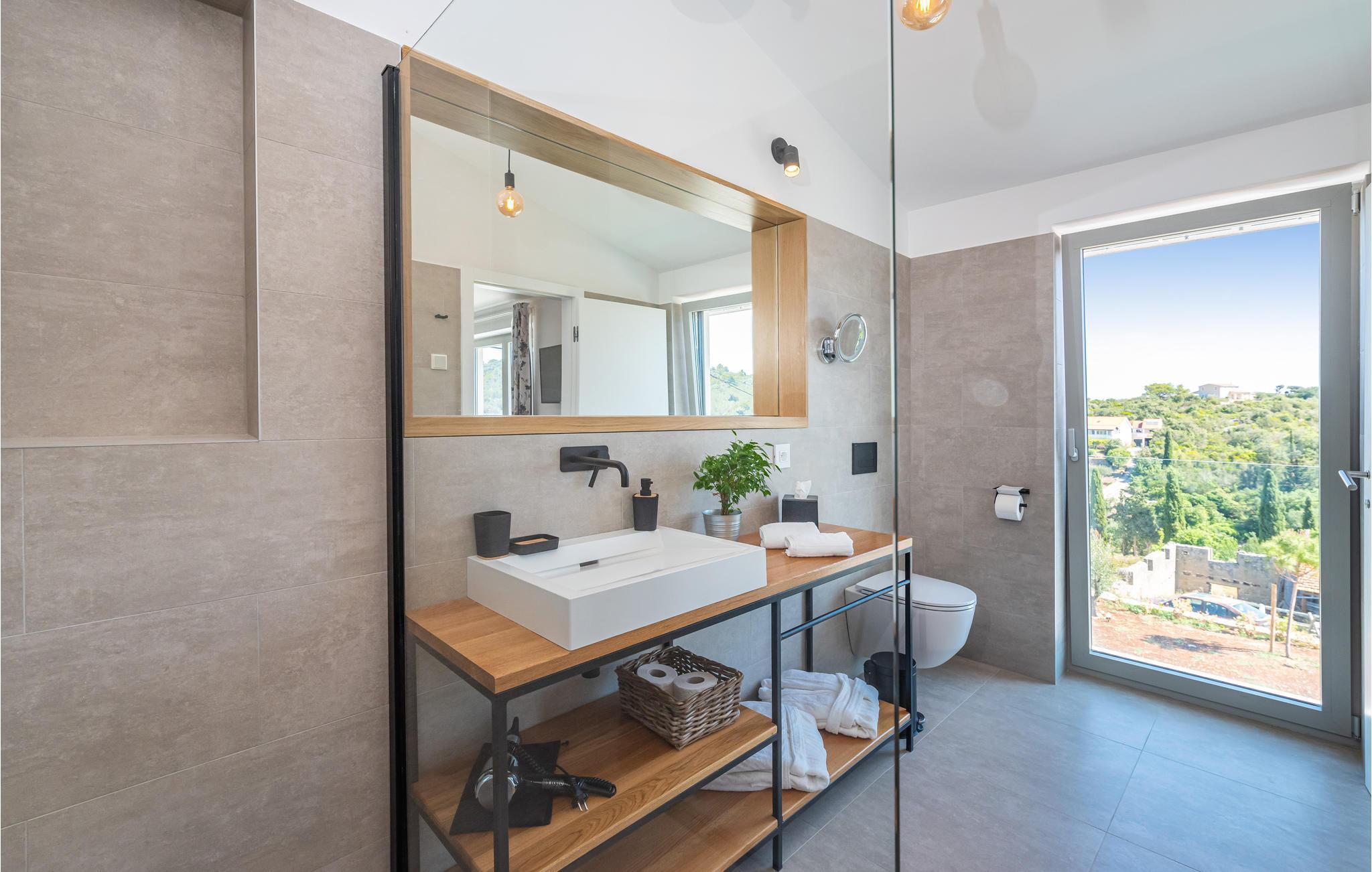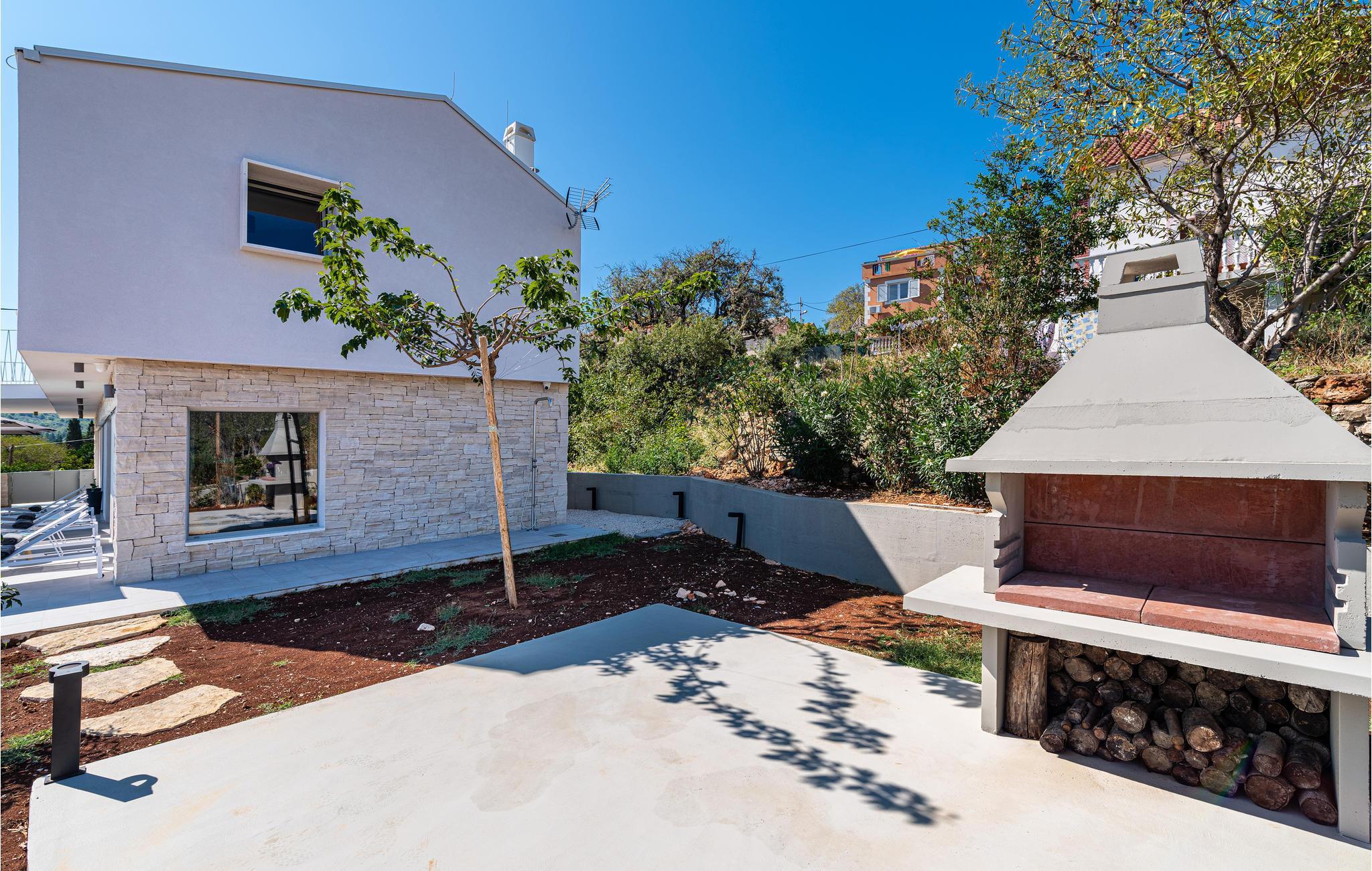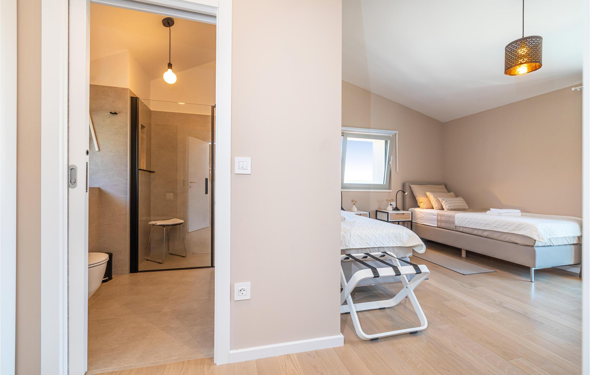 Diese außergewöhnliche Villa mit moderner Architektur lädt Sie zu einem unvergesslichen Urlaub ein. Der offene Wohnraum im Erdgeschoss kombiniert Küche, Esszimmer und Wohnzimmer zu einem luftigen Ambiente, das direkt auf die Sonnenterrasse mit Pool führt. Jede Etage bietet Ihnen eine eigene Terrasse, auf der Sie die ruhige Umgebung genießen können. Der Pool verspricht Erfrischung an heißen Tagen, während die Kinder im Garten spielen. Abends bereiten Sie Grillspezialitäten im Freien zu und lassen den Tag entspannt ausklingen.