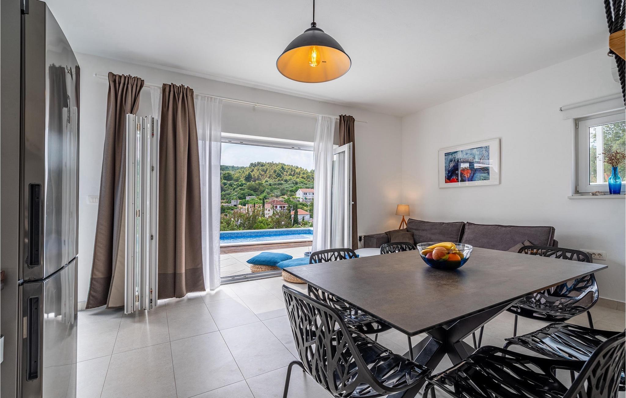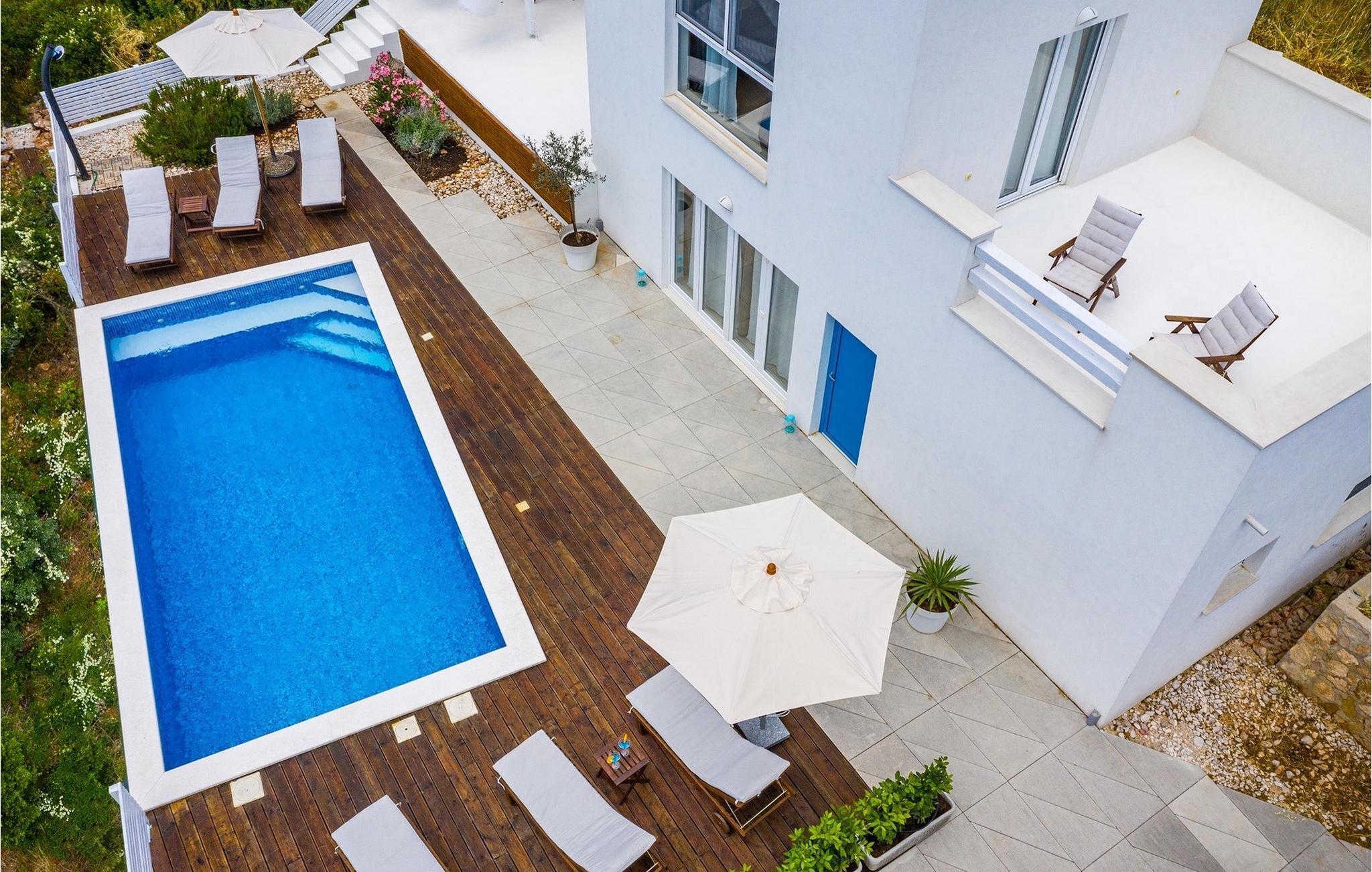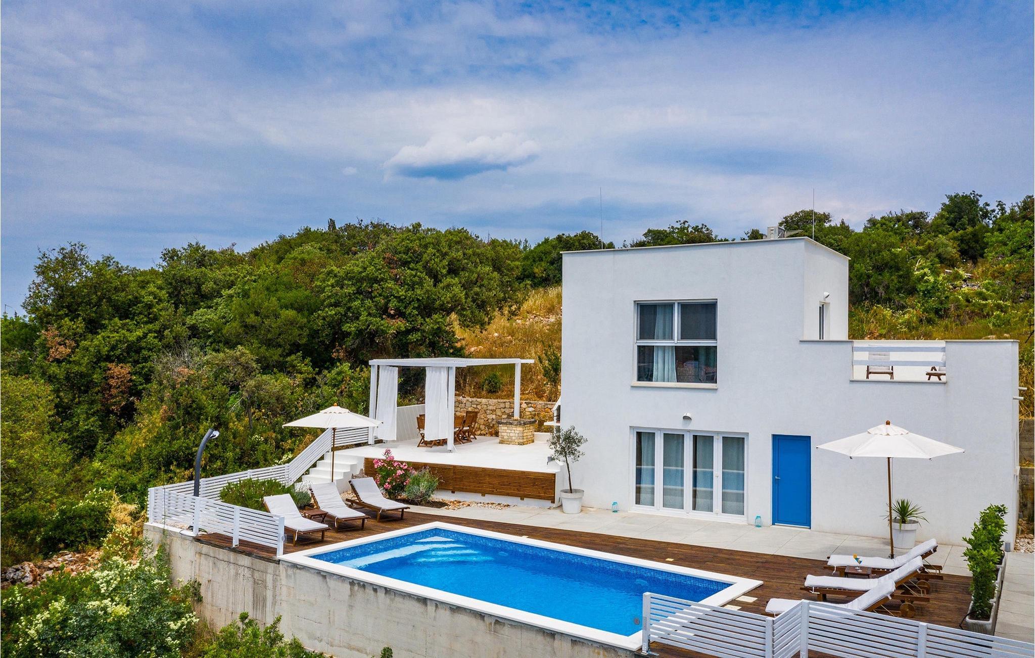 Am Rande des kleinen Fischerdorfes Zman gelegen, umgeben von Natur, bietet diese Traumvilla alles, was Sie sich für einen erholsamen Urlaub wünschen. Vom 32m2 großen, erfrischenden Pool erstreckt sich ein wundervoller Ausblick über das Tal. Lassen Sie es sich mit einem kühlen Getränk in der Hand gut gehen, entspannen Sie auf einer der Sonnenliegen und lassen Sie die Seele baumeln. Die große Terrasse mit Esstisch und dem Holzkohlegrill ist der perfekte Ort für lange Sommerabende zu frisch gegrilltem Fisch und anderen lokalen Spezialitäten.