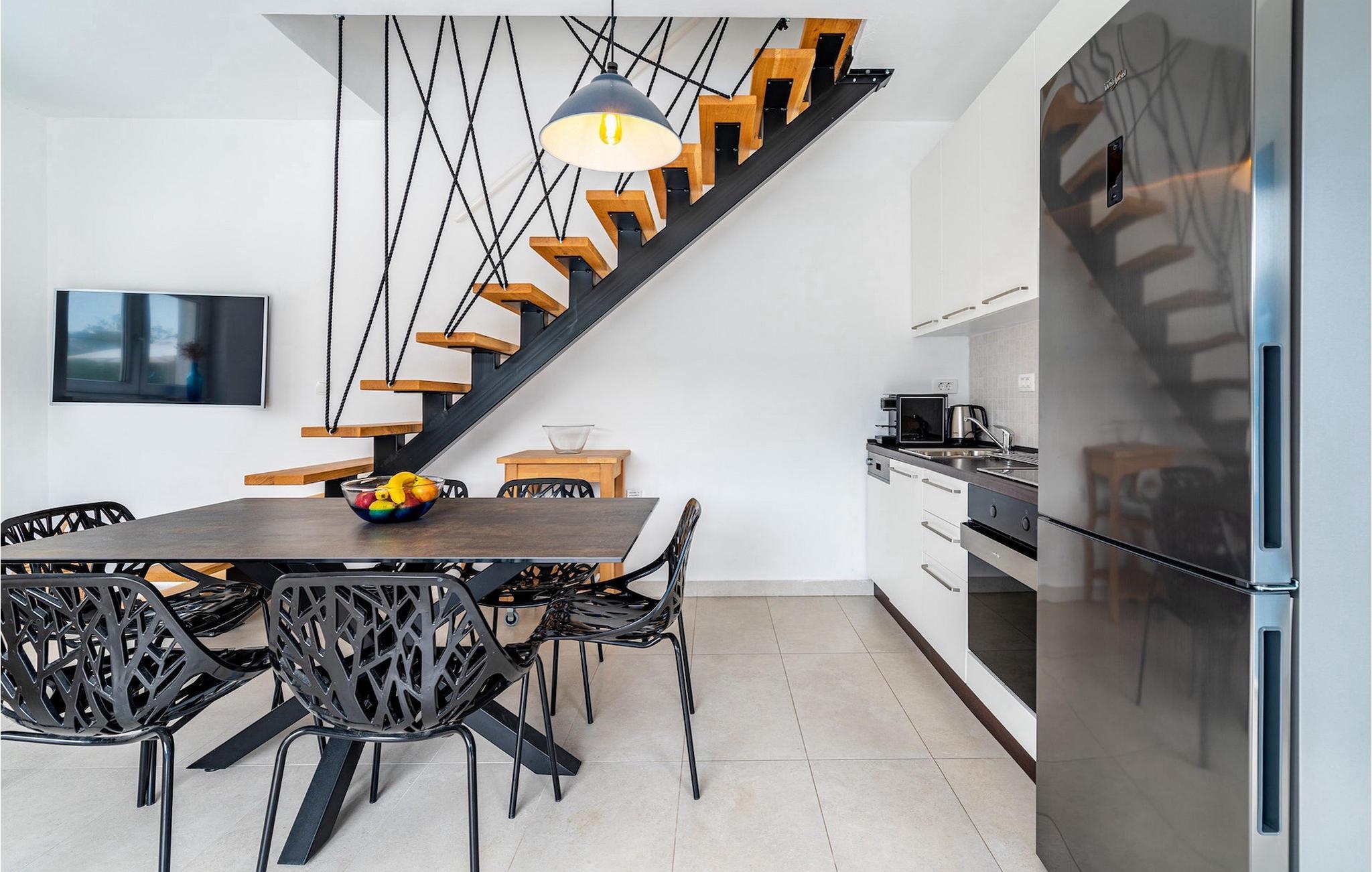 Das elegante Interieur ist sehr hell und viele interessante Details werden Ihren Blick auf sich ziehen. Das Ergeschoss besteht aus dem Wohnbereich mit gut ausgestatteter Küche und Esstisch sowie einem modernen Schlafzimmer und einem eigenen Badezimmer. Auf der oberen Etage befindet sich ein weiteres Schlafzimmer mit großem Doppelbett und ein schönes Badezimmer. Die Villa kann in 2 Schlafzimmern 4 Personen beherbergen. Noch zwei weitere Personen finden auf der Schlafcouch im Wohnzimmer Platz. Alle Zimmer verfügen über TV und Klimaanlage. Das Schlafzimmer auf der ersten Etage hat außerdem einen eigenen Balkon mit großartiger Aussicht - ideal, um sich zurückzuziehen oder am Morgen in aller Ruhe seine erste Tasse Tee zu den ersten Sonnenstrahlen zu genießen.