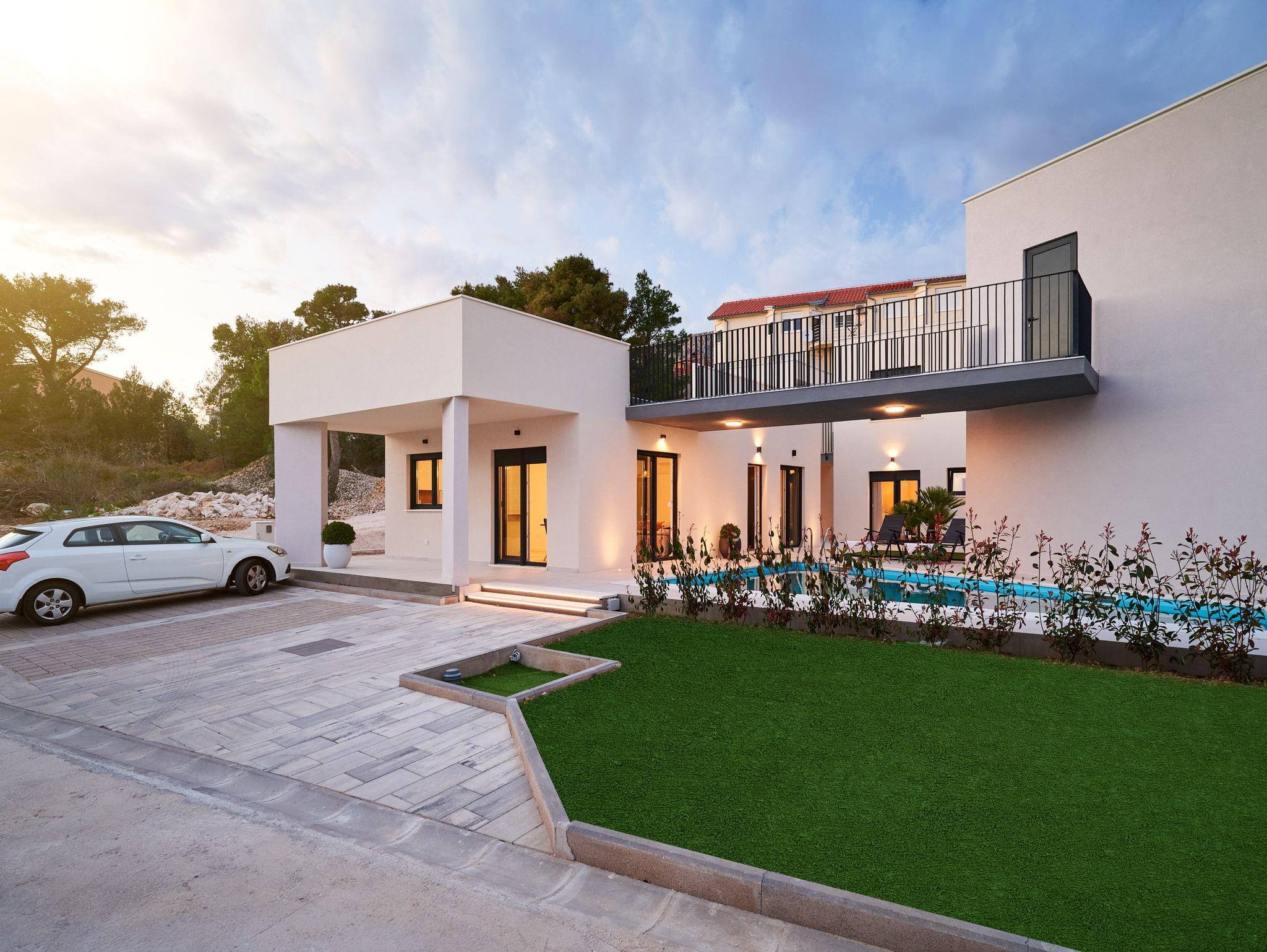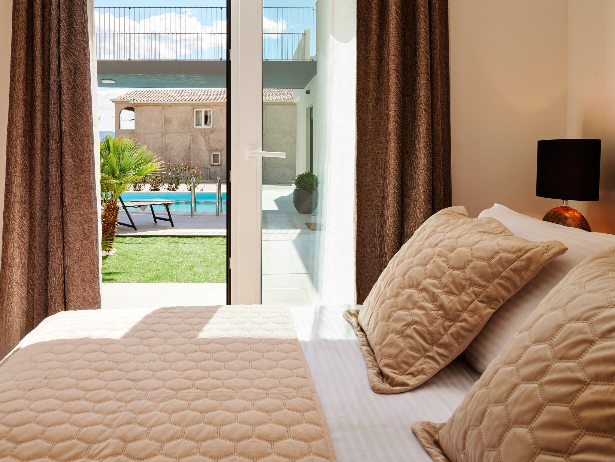 Haus bietet Platz für 12 Gäste. Die Betten sind in Schlafzimmern, die es 6 gibt, innerhalb einer Gesamtfläche von 158m2, angeordnet. Die Gäste haben eine eigene Terrasse zur Verfügung, auf der sie in warmen Sommernächten genießen können. Das Haus bietet Meerblick. Für vollen Genuss und Entspannung gibt es einen privaten Grill für Gäste dieser Unterkunft. Während ihres Aufenthalts können sich Gäste im privaten Schwimmbad entspannen. In der Unterkunftseinheit besteht die Möglichkeit des Mitbringens von Haustieren, und die Dienstleistung ist im Preis der Unterkunft enthalten. In der gebuchten Unterkunftseinheit zahlt man am Ort ein Depositum ( der Preis ist an der Internetseite angeführt ). IM PREIS INBEGRIFFEN: Kurtaxe, Endreinigung, Klimatisierung, Pool, Parkplatz, Internet, Haustiere, Kinderbett, Bügeleisen, Bügelbrett, Föhn, Liegestühle. VERBINDLICHE ZUSÄTZLICHE KOSTEN: Kaution (400,00 € Einmalzahlung). Die Verfügbarkeit zusätzlicher Dienstleistungen in Ihrem reservierten Termin und die Preise derselben (falls nicht aufgeführt) müssen im Voraus überprüft werden. Zusätzliche Dienstleistungen die in der Zahlungsaufforderung nicht aufgeführt sind werden direkt beim Vermieter bezahlt, angenommen der Gast nutzt auch diese.