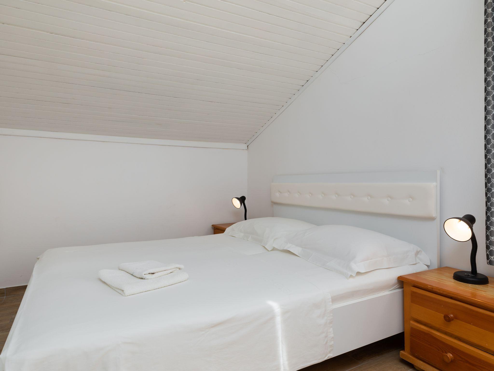 Ferienwohnung bietet Platz für 6 Gäste. Die Betten sind in Schlafzimmern, die es 2 gibt, innerhalb einer Gesamtfläche von 47m2, angeordnet. Die Gäste haben eine eigene Terrasse zur Verfügung, auf der sie in warmen Sommernächten genießen können. Das Apartment bietet Meerblick. Es ist erlaubt, Speisen auf dem Gemeinschafts-Grill vorzubereiten. IM PREIS INBEGRIFFEN: Kurtaxe, Endreinigung, Parkplatz, Internet. UNVERBINDLICHE ZUSÄTZLICHE KOSTEN: Klimatisierung (0,25 € pro Stunde), Wäschewaschen (5,00 € Waschen). Die Verfügbarkeit zusätzlicher Dienstleistungen in Ihrem reservierten Termin und die Preise derselben (falls nicht aufgeführt) müssen im Voraus überprüft werden. Zusätzliche Dienstleistungen die in der Zahlungsaufforderung nicht aufgeführt sind werden direkt beim Vermieter bezahlt, angenommen der Gast nutzt auch diese. Ermäßigung auf den Grundpreis: Gratistag 14=13 (bei einem Aufenthalt von 14 Tagen oder mehr erhalten Sie einen Gratistag für den Aufenthalt bis 31.12.26).