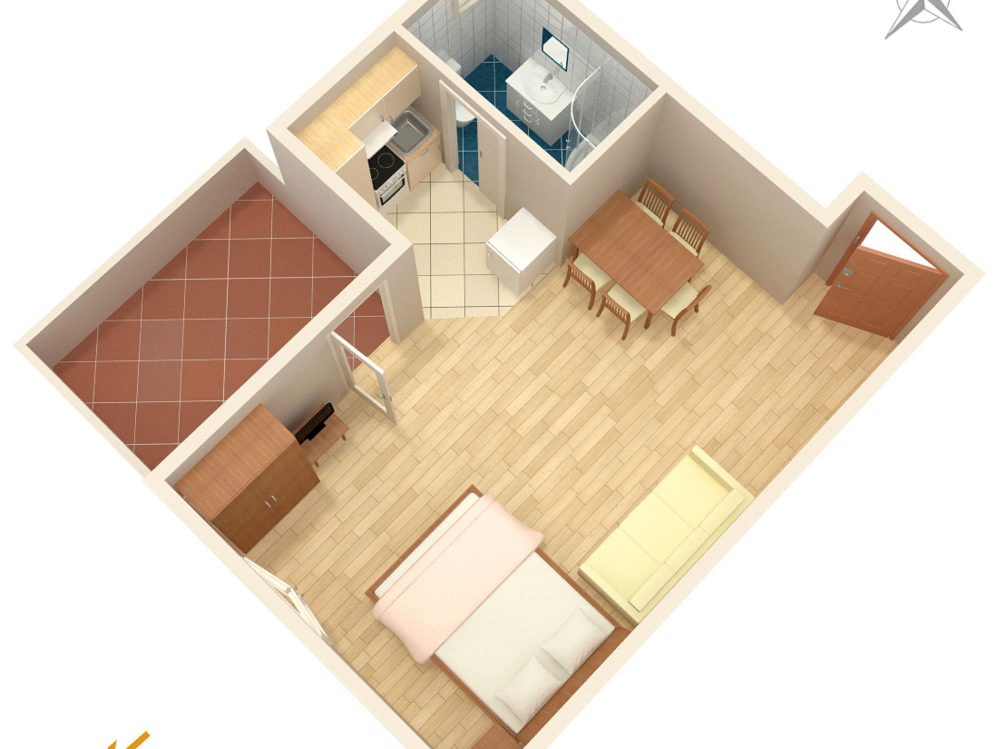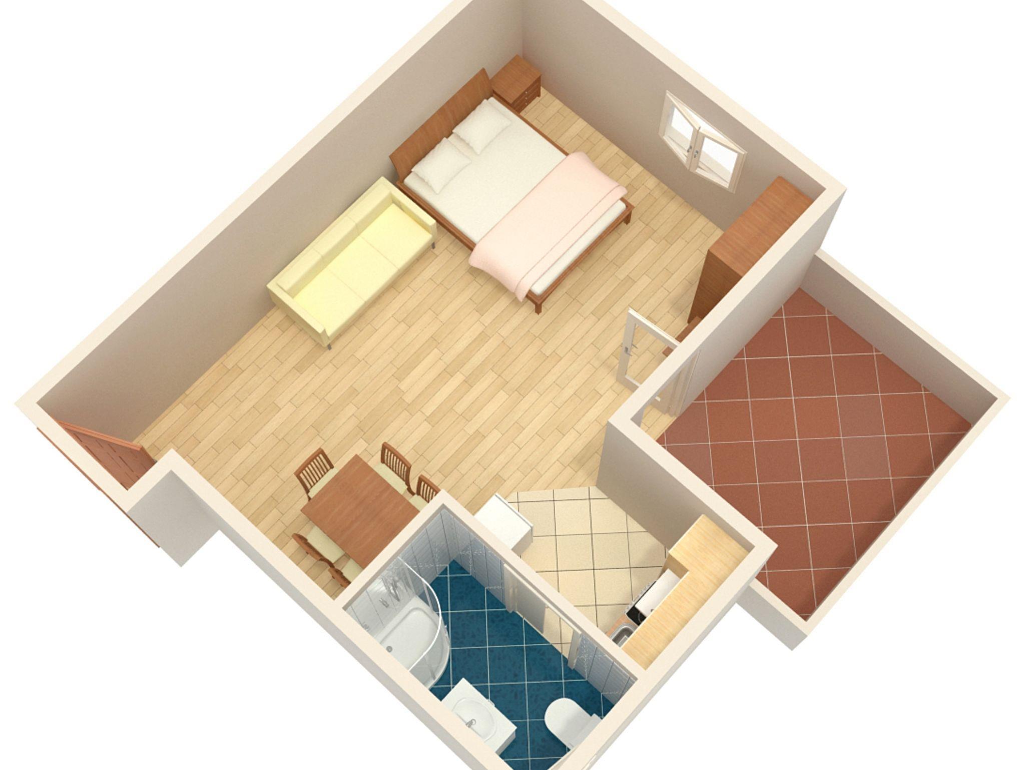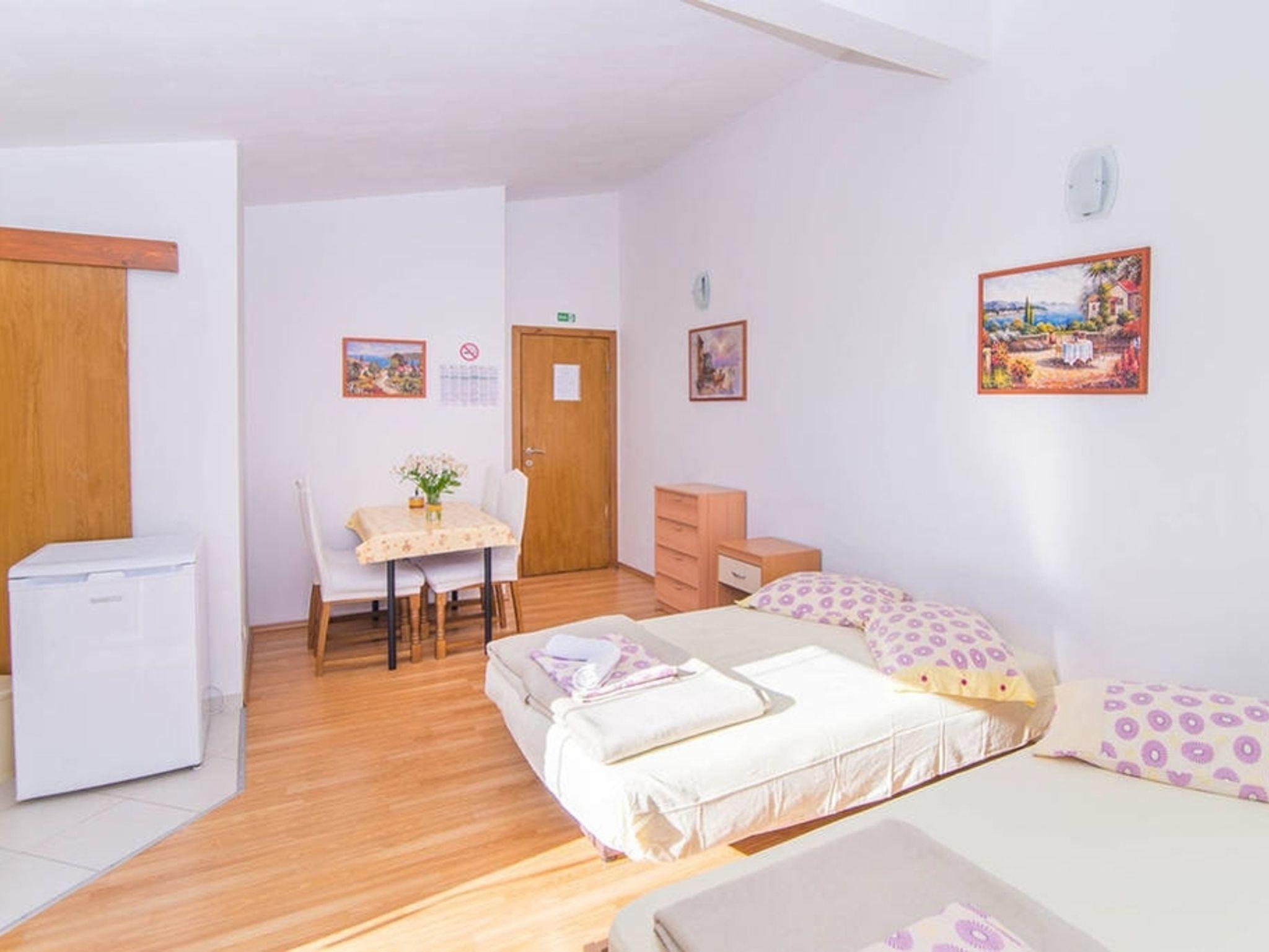 Studio bietet Platz für 4 Gäste. Die Betten sind in Schlafzimmern, die es 1 gibt, innerhalb einer Gesamtfläche von 25m2, angeordnet. Die Gäste haben eine eigene Terrasse zur Verfügung, auf der sie in warmen Sommernächten genießen können. Das Studio-Apartment bietet Meerblick. Es ist erlaubt, Speisen auf dem Gemeinschafts-Grill vorzubereiten. IM PREIS INBEGRIFFEN: Kurtaxe, Endreinigung, Klimatisierung, Parkplatz, Internet, Wäschewaschen, tragbarer Grill. VERBINDLICHE ZUSÄTZLICHE KOSTEN: Aufzahlung für Kurzaufenthalte (prozentualer Zuschlag pro Nächtigungsanzahl: 30% - 1, 20% - 2, 10% - 3). UNVERBINDLICHE ZUSÄTZLICHE KOSTEN: Bootsanlegeplatz (10,00 € pro Nacht), Zusatzbett (10,00 € pro Nacht). Die Verfügbarkeit zusätzlicher Dienstleistungen in Ihrem reservierten Termin und die Preise derselben (falls nicht aufgeführt) müssen im Voraus überprüft werden. Zusätzliche Dienstleistungen die in der Zahlungsaufforderung nicht aufgeführt sind werden direkt beim Vermieter bezahlt, angenommen der Gast nutzt auch diese.