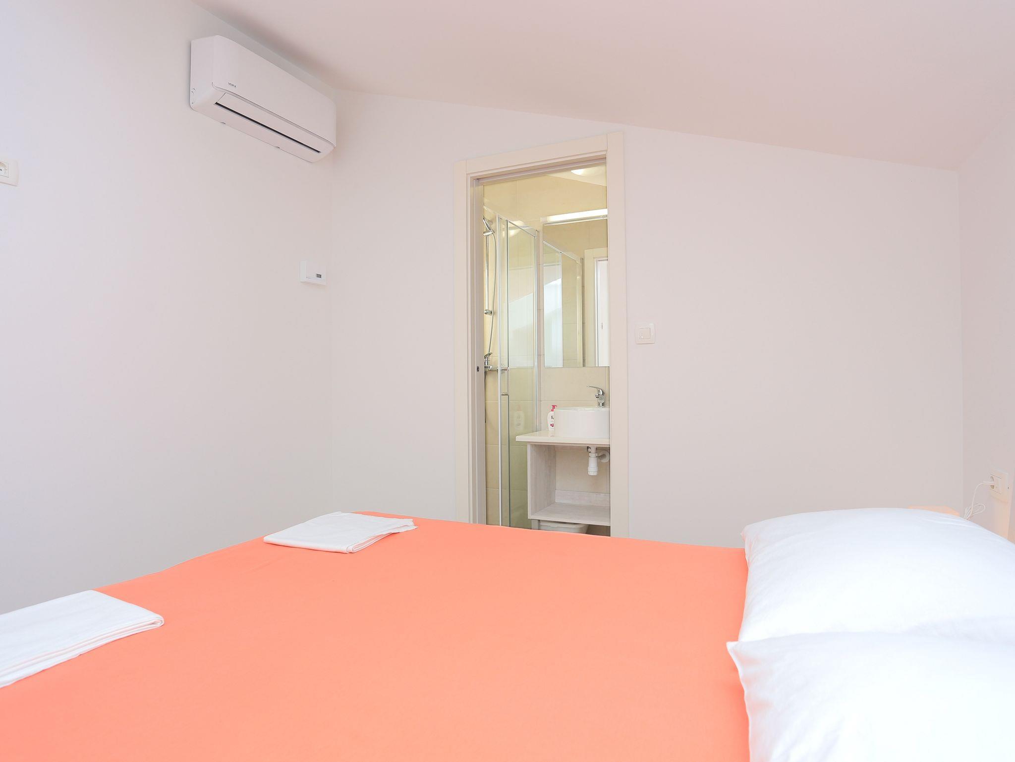 Ferienwohnung bietet Platz für 5 Gäste. Die Betten sind in Schlafzimmern, die es 2 gibt, innerhalb einer Gesamtfläche von 45m2, angeordnet. Die Gäste haben eine eigene Terrasse zur Verfügung, auf der sie in warmen Sommernächten genießen können. Das Apartment bietet Meerblick. Es ist erlaubt, Speisen auf dem Gemeinschafts-Grill vorzubereiten. IM PREIS INBEGRIFFEN: Kurtaxe, Endreinigung, Parkplatz, Internet. VERBINDLICHE ZUSÄTZLICHE KOSTEN: Aufzahlung für Kurzaufenthalte (prozentualer Zuschlag pro Nächtigungsanzahl: 30% - 1, 20% - 2, 10% - 3). UNVERBINDLICHE ZUSÄTZLICHE KOSTEN: Klimatisierung (0,80 € pro Stunde), Wäschewaschen (5,00 € Waschen). Die Verfügbarkeit zusätzlicher Dienstleistungen in Ihrem reservierten Termin und die Preise derselben (falls nicht aufgeführt) müssen im Voraus überprüft werden. Zusätzliche Dienstleistungen die in der Zahlungsaufforderung nicht aufgeführt sind werden direkt beim Vermieter bezahlt, angenommen der Gast nutzt auch diese.
