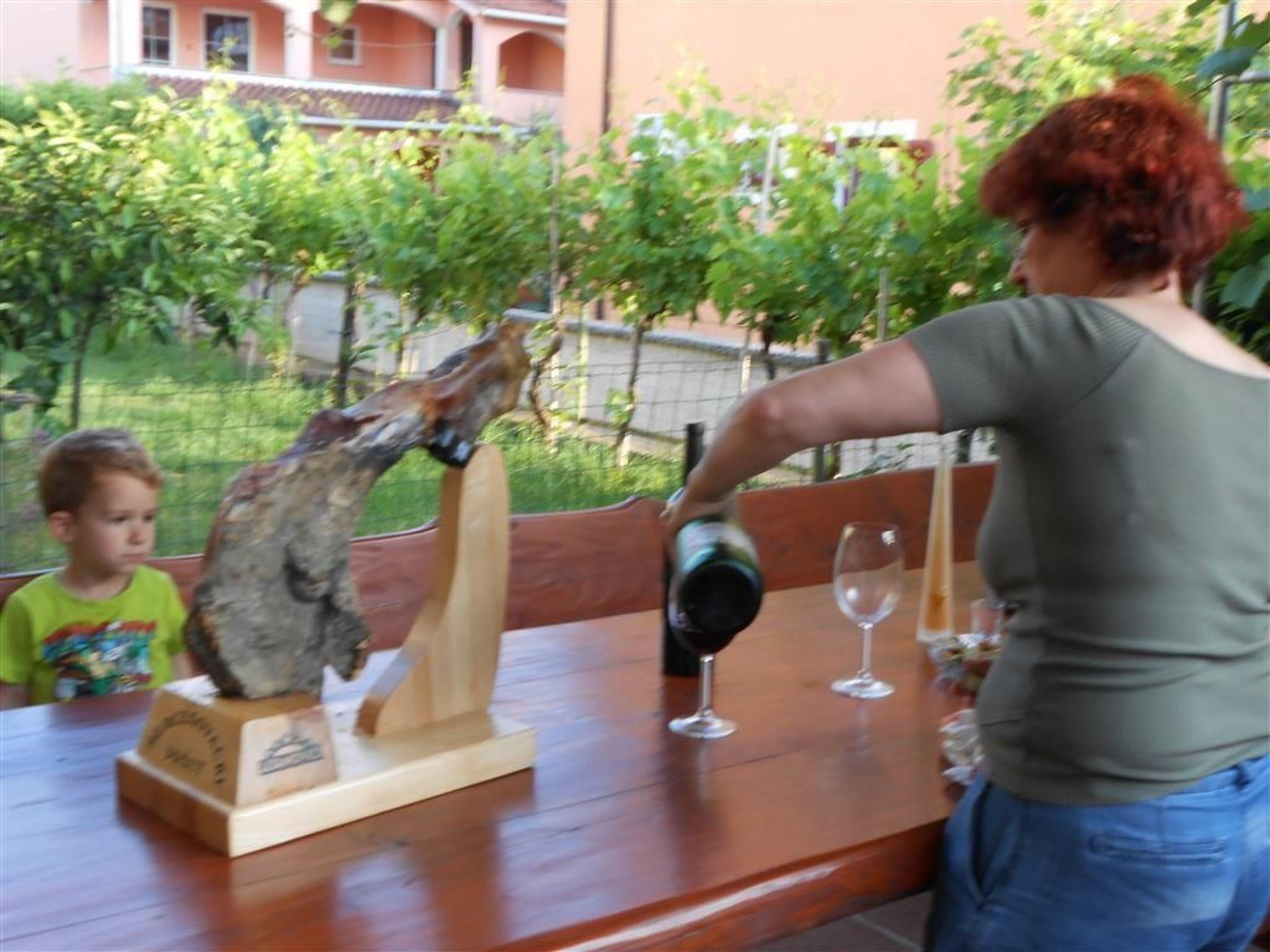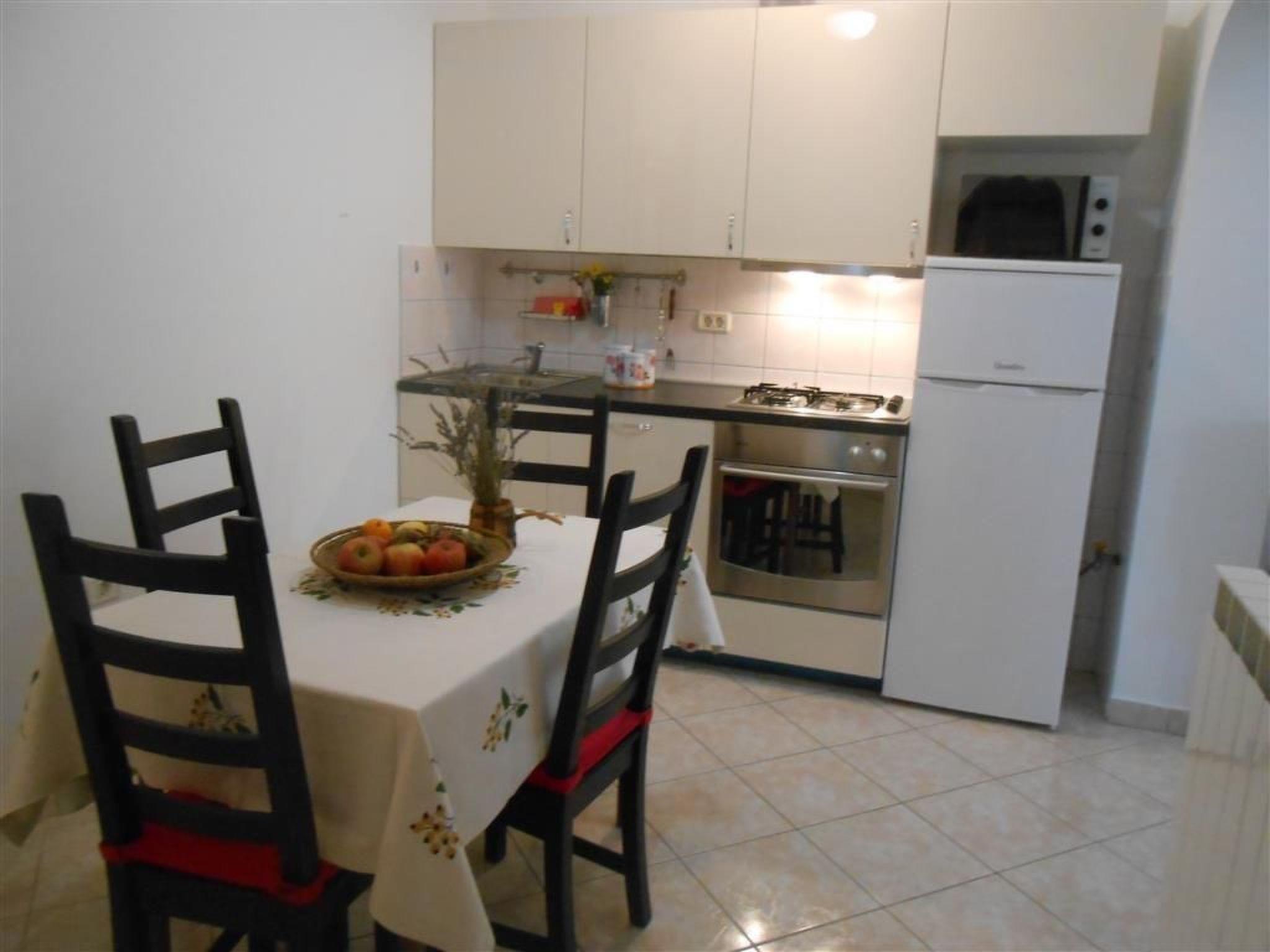 This holiday apartment is located on the ground floor of a residential building. It has two bedrooms with a double bed and two single beds. The kitchen is fully equipped, and there is a living room with a sofa and a TV. There is also a bathroom with a shower.