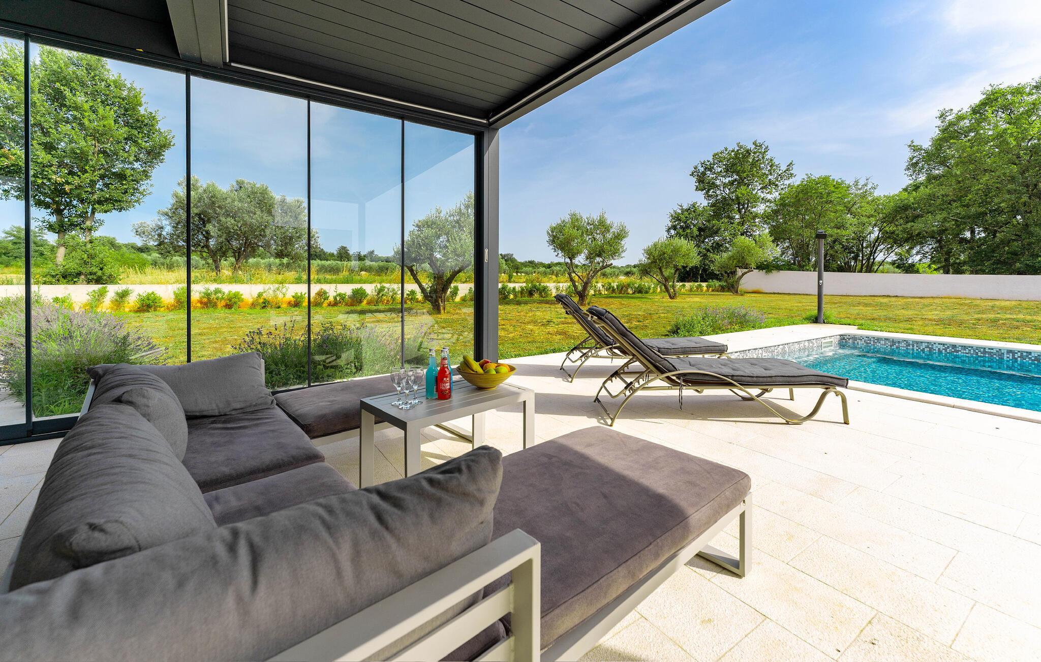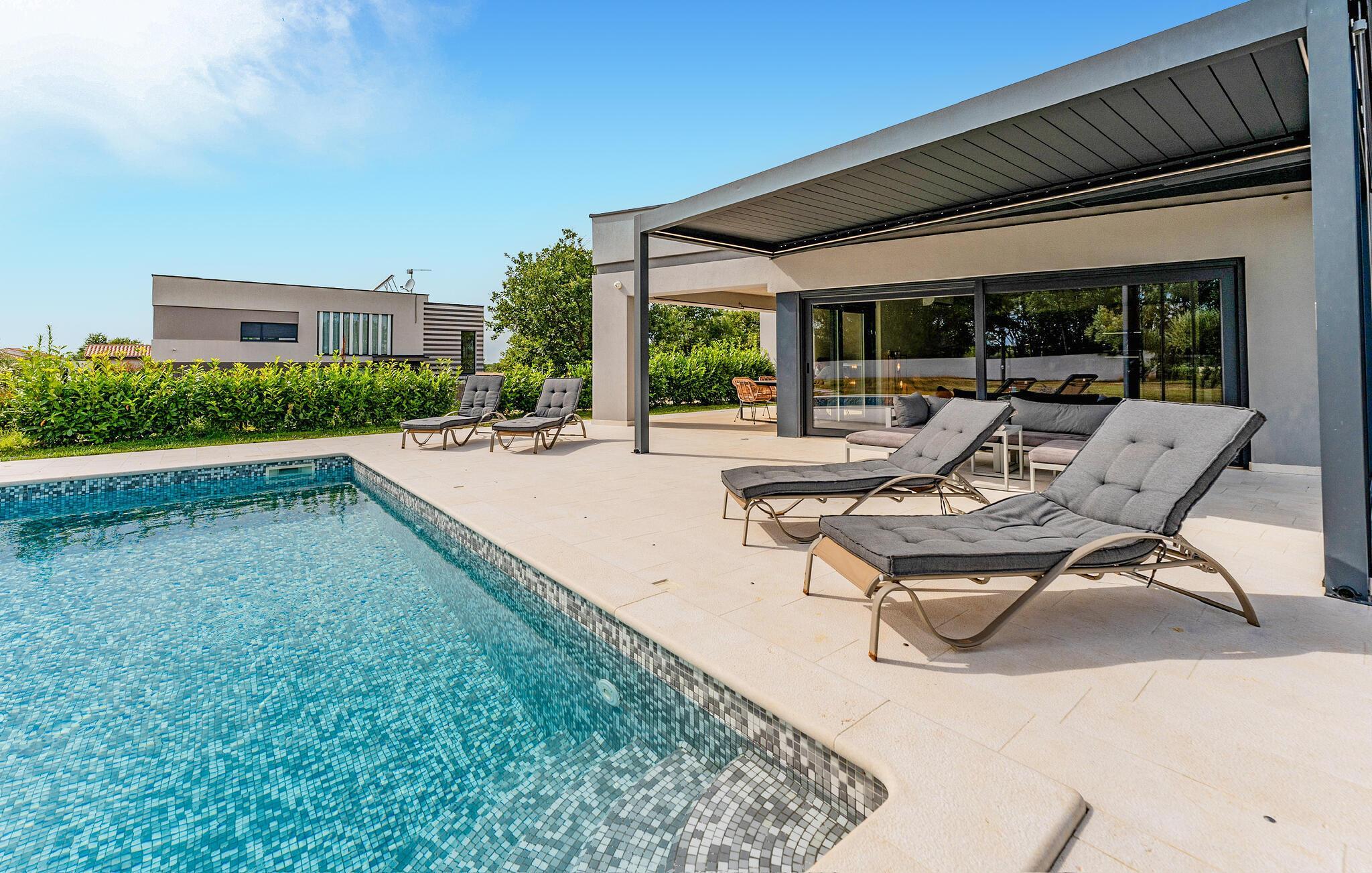 Für einen perfekten Familienurlaub in Istrien benötigen Sie lediglich eine wunderschön eingerichtete Villa mit privatem Pool, umgeben von Natur nah zum Meer. Wenn Sie nach einer solchen Unterkunft suchen, ist die Villa Fran die perfekte Wahl für Sie! Die elegante Villa Fran liegt auf einem großen Grundstück inmitten der istrischen Natur. Vor der Villa können Sie sich bei dem geräumigen Pool entspannen und den atemberaubenden Blick auf die bezaubernde istrische Landschaft genießen. Auf der geräumigen Terrasse der Villa steht Ihnen ein Grill und ein Esstisch zur Verfügung, wo Sie warme Sommerabende mit Familie und Freunden verbringen können, während Sie Ihre Lieblingsgerichte zubereiten.