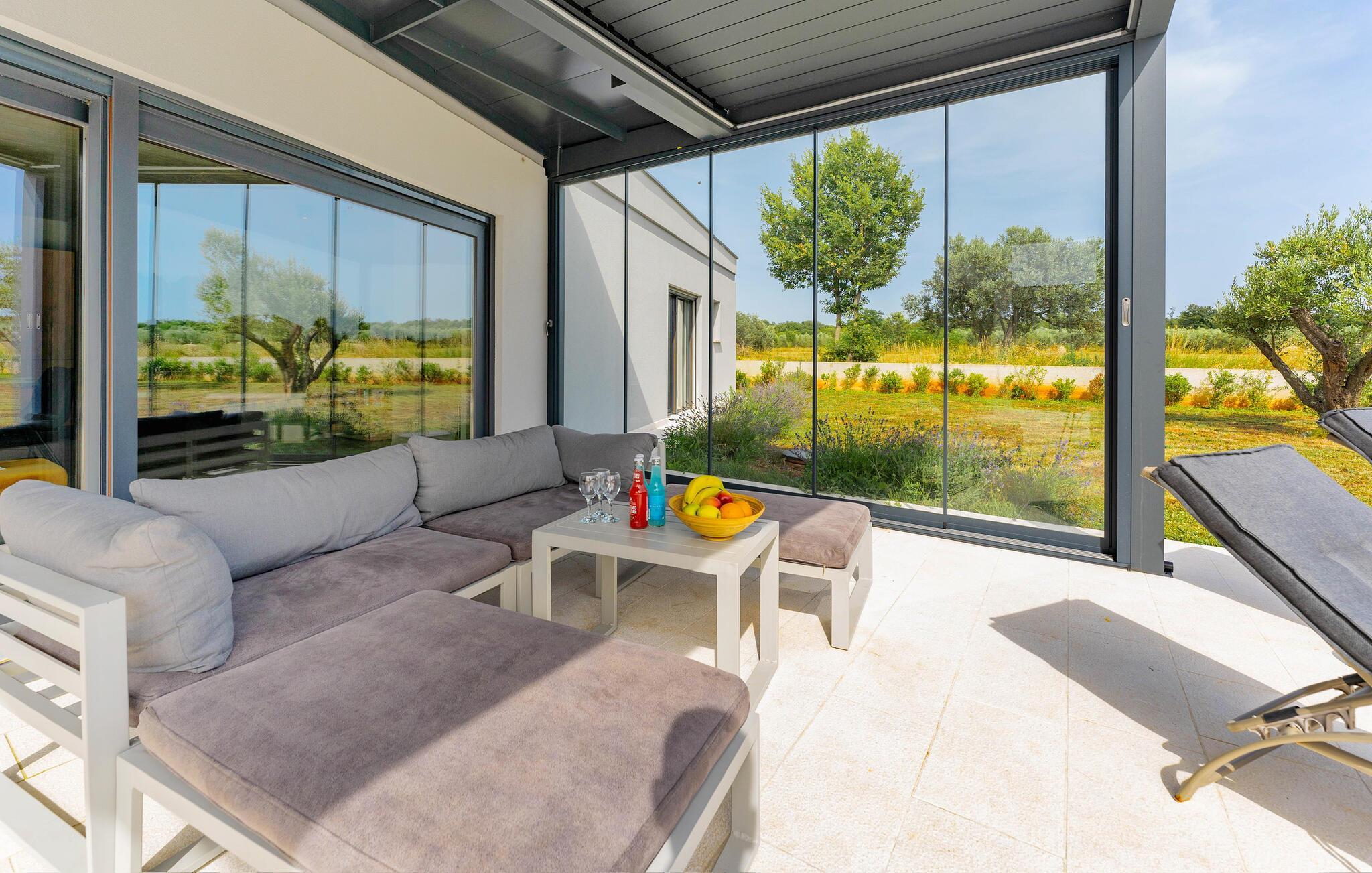 Buchen Sie die Villa Fran in Istrien und verbringen Sie einen ruhigen Familienurlaub abseits des stressigen Alltags der Großstädte!Die Villa Fran befindet sich im kleinen istrischen Ort Golubovo zwischen Rovinj und Pula. Die Villa liegt nur 3 km von der Küste entfernt, sodass Sie Ihren Urlaub nicht nur am Pool, sondern auch am nächsten Strand in Peroj oder Barbariga verbringen können. In Istrien gibt es eine Handvoll Wander- und Radwege, wo Sie die Umgebung und die atemberaubende Natur erkunden können. Wir empfehlen auf jeden Fall einen Besuch in nahe gelegenen Städten wie Fazana, Galizana und Vodnjan, wo Sie die istrische Atmosphäre genießen können und in lokalen Restaurants und Tavernen die Möglichkeit haben, traditionelle Spezialitäten der istrischen Küche zu probieren. Nicht weit von der Villa entfernt befinden sich die größeren Städte Rovinj und Pula, die ein reichhaltiges kulturelles Angebot, ein reiches Unterhaltungsprogramm und zahlreiche historische Sehenswürdigkeiten wie das Stadtzentrum von Rovinj oder das römische Amphitheater in Pula bieten. Besuchen Sie während Ihres Urlaubs in Istrien unbedingt den Nationalpark Brijuni mit einem Safaripark, der Sie begeistern wird.