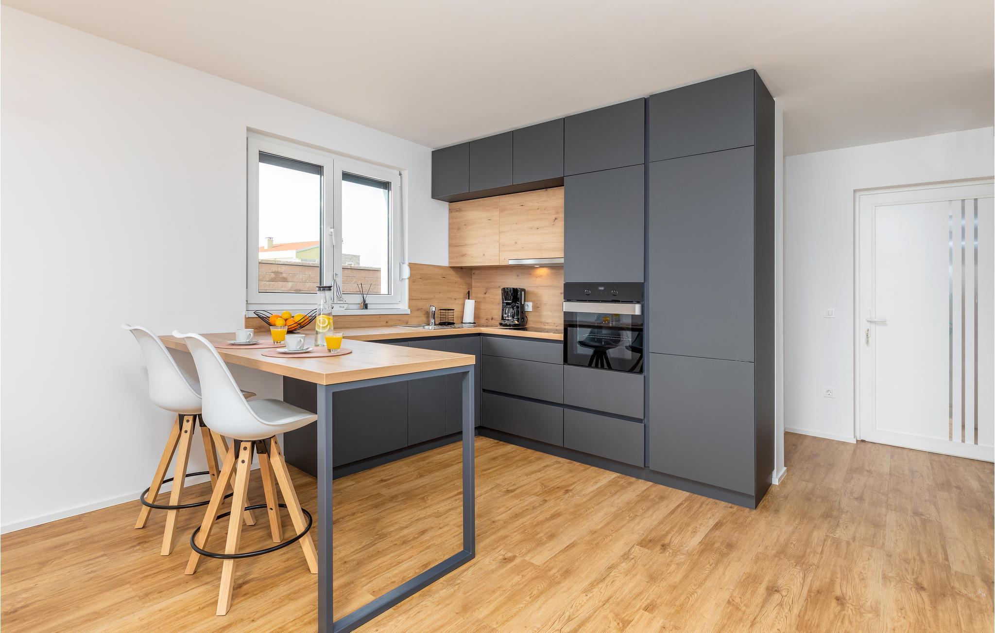 Das Haus erstreckt sich über zwei Etagen und ist modern und hochwertig eingerichtet. Im Obergeschoss befinden sich die 2 Schlafzimmer und Badezimmer und von hier haben Sie auch Meerblick. Der Mittelpunkt des Hauses ist die offene Küche mit Ess- und Wohnbereich, wo Sie zusammen leckere Mahlzeiten zubereiten und gesellige Abende verbringen können.