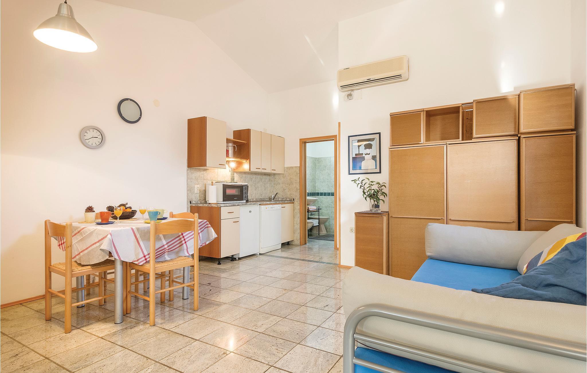 In der schönen Stadt Fazana befindet sich diese kleine moderne Ferienwohnung, die Ihnen eine herrliche Panoramaaussicht auf die Umgebung von Brijuni bietet. Hier wohnen Sie auch nicht weit von dem schönen Kiesstrand der Stadt. Das Grundstück ist mit anderen Gästen des Hauses zu teilen. Besuchen Sie aber nicht nur den Strand, sondern auch den lebendigen Hafen der Stadt und gehen Sie durch die alten Straßen.